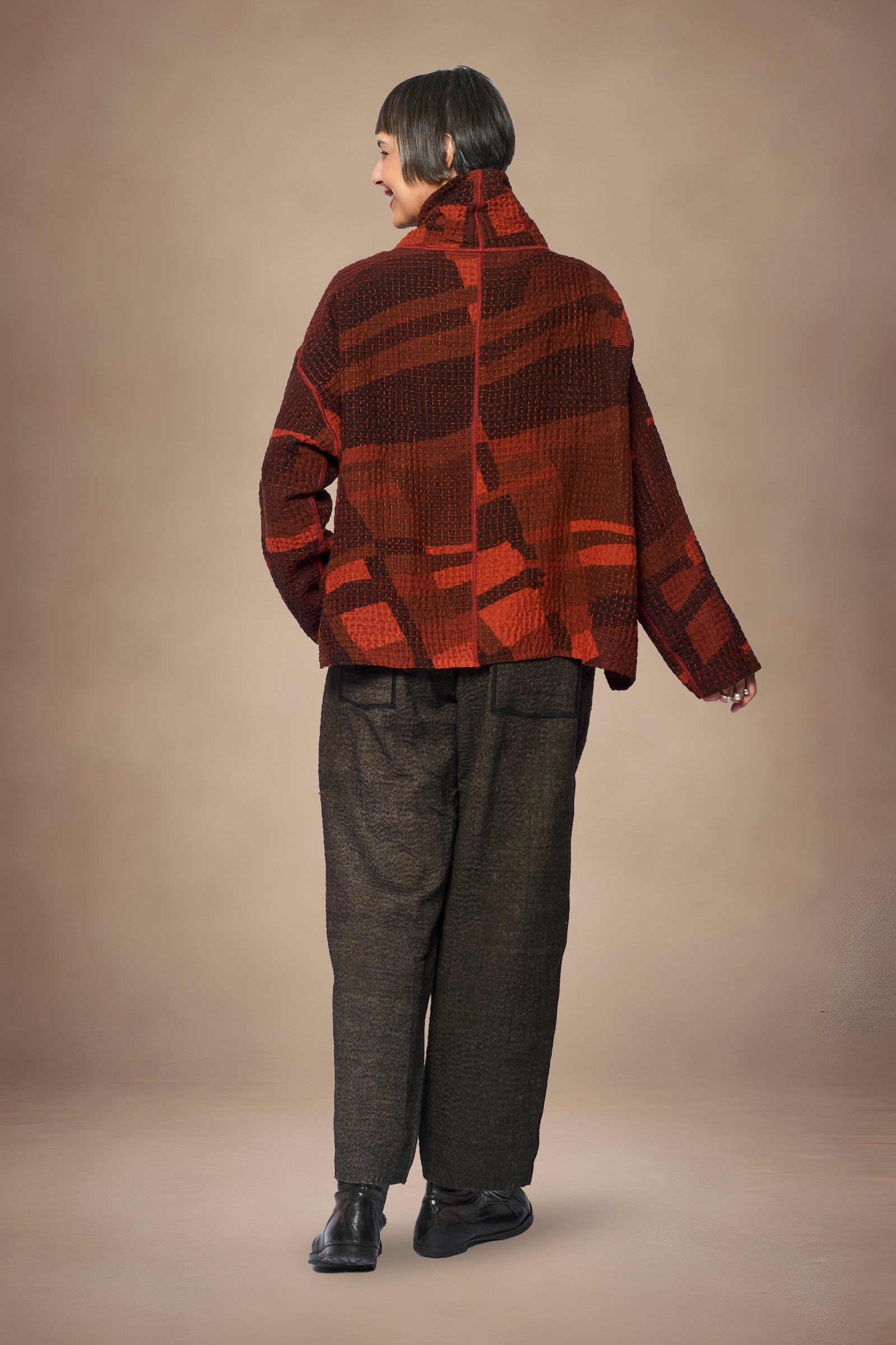 ABSTRACT WAFFLE KANTHA FUNNEL NECK PULLOVER - bw3t106-org -
