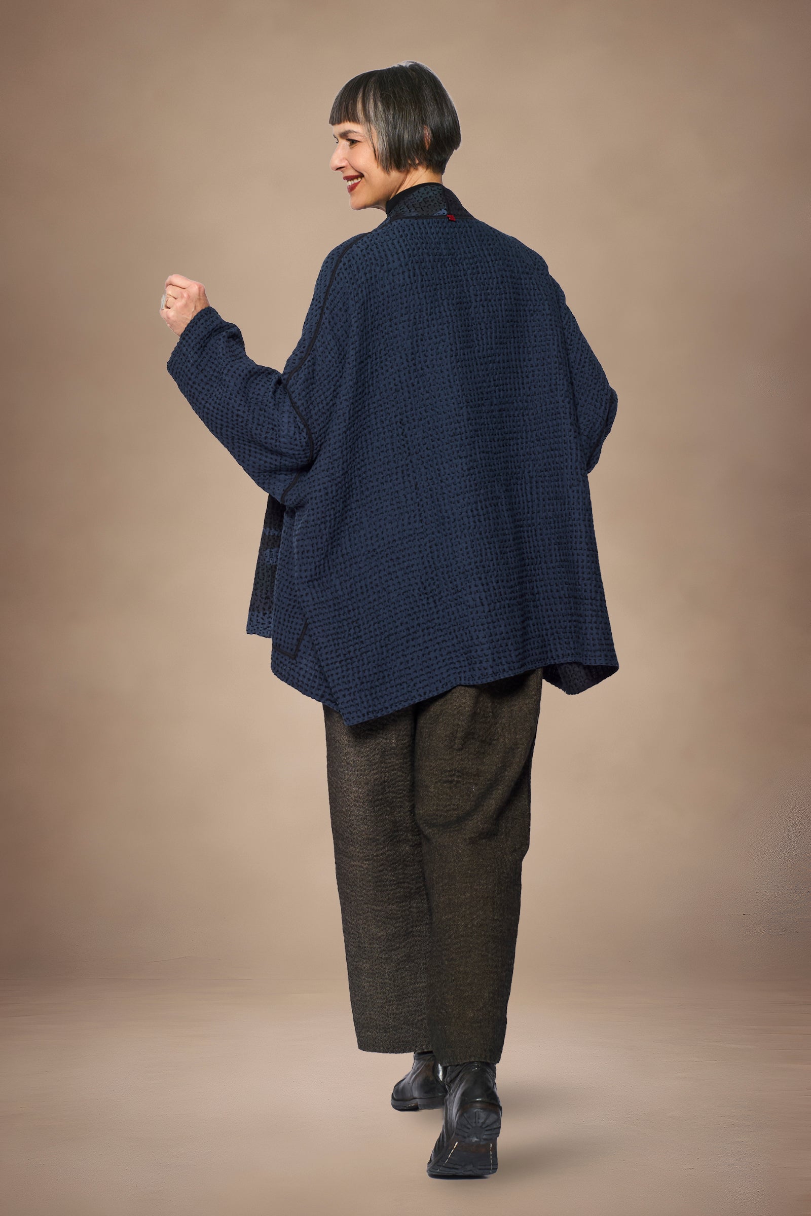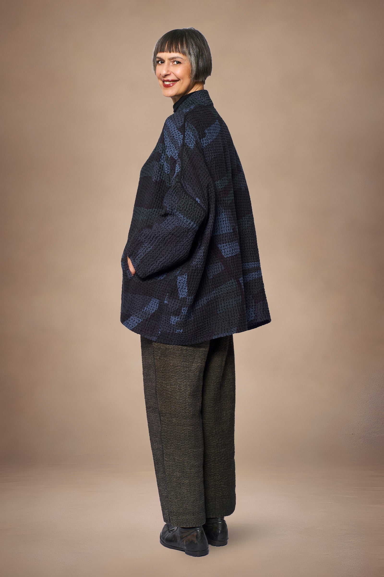 ABSTRACT WAFFLE KANTHA KIMONO WRAP SHORT - bw3358-nvy -