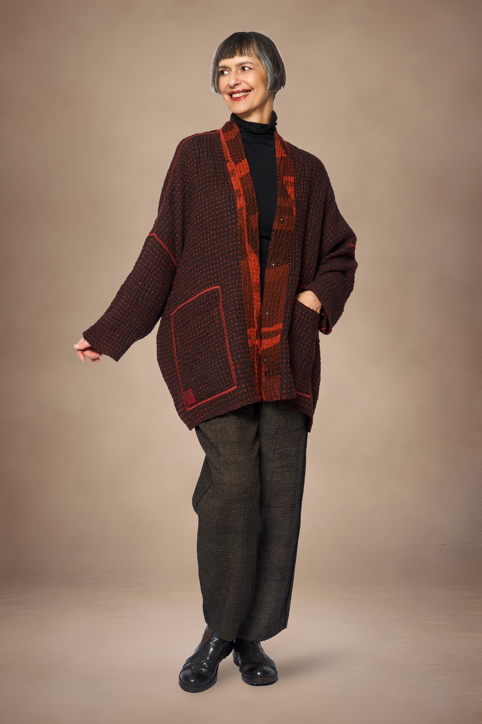 ABSTRACT WAFFLE KANTHA KIMONO WRAP SHORT - bw3358-org -