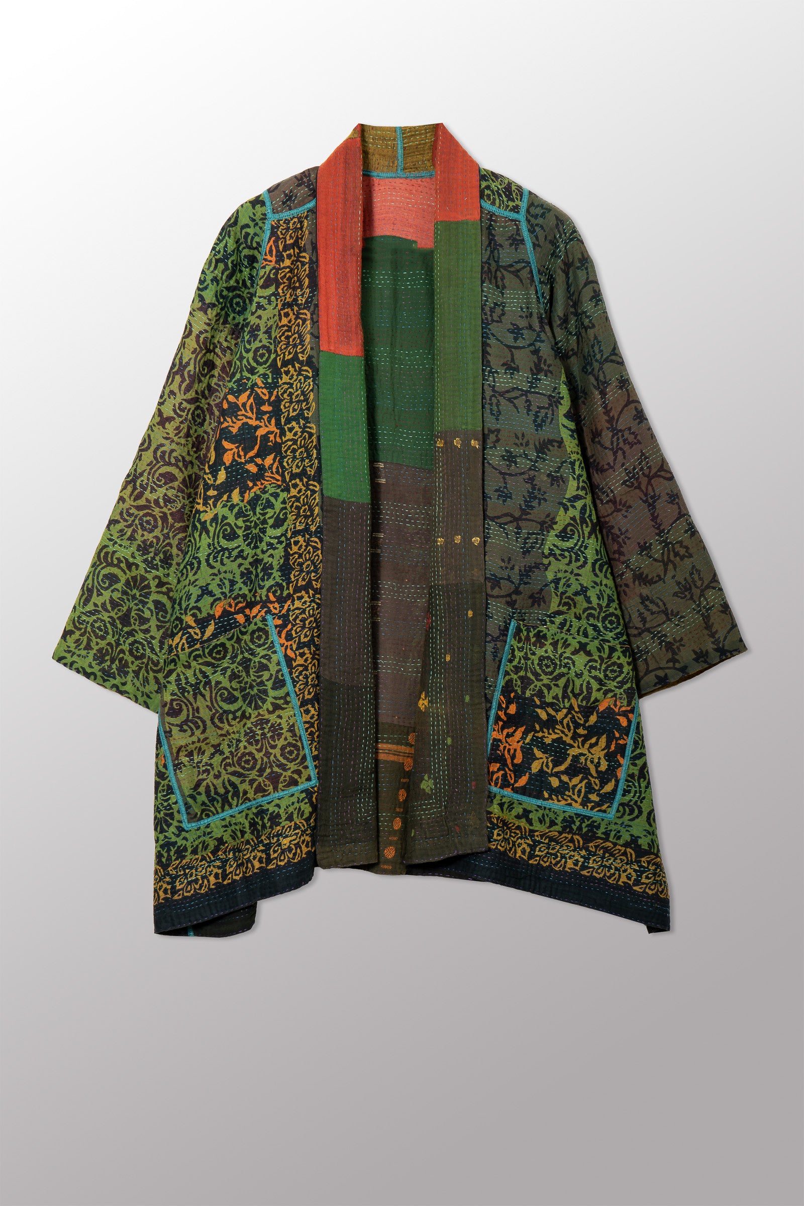 BAGH PRINT KANTHA A-LINE JKT - bg2003-grn -