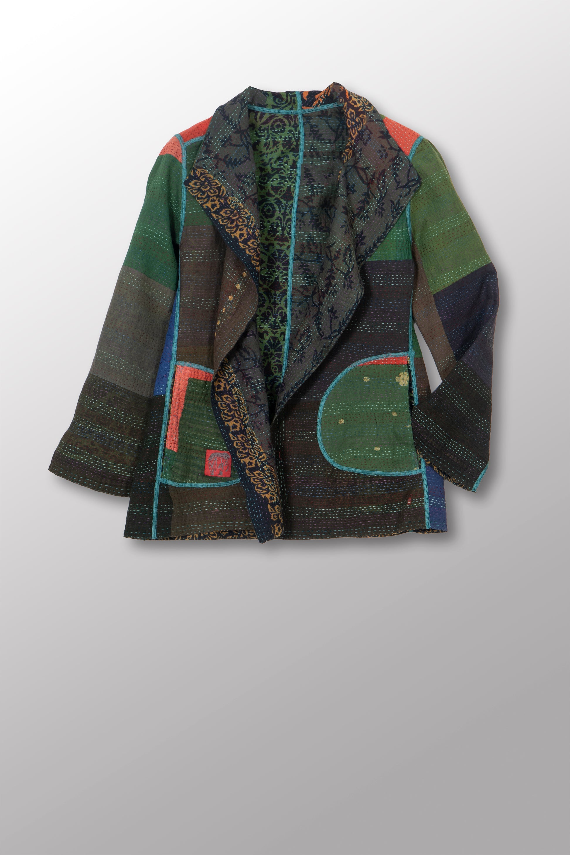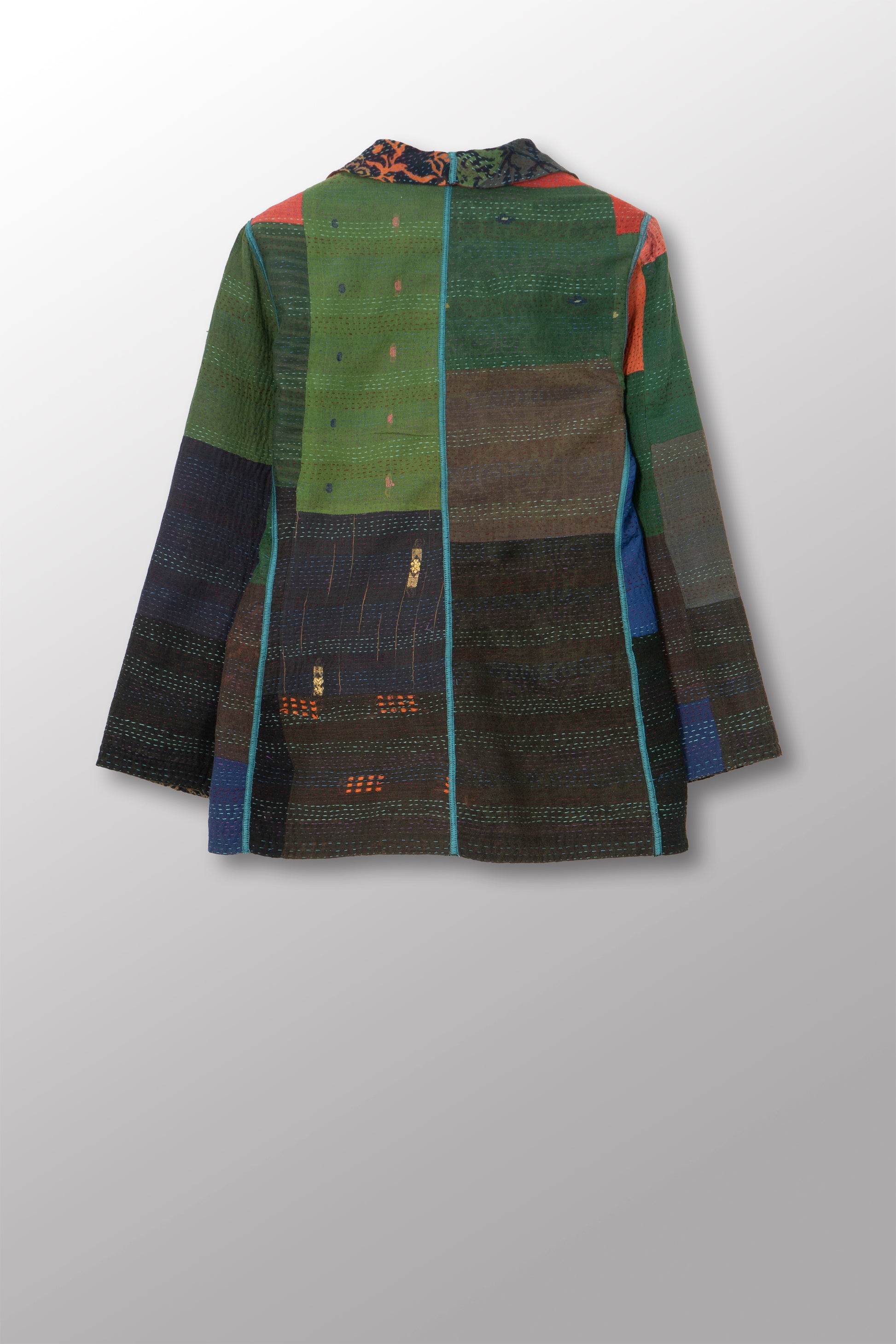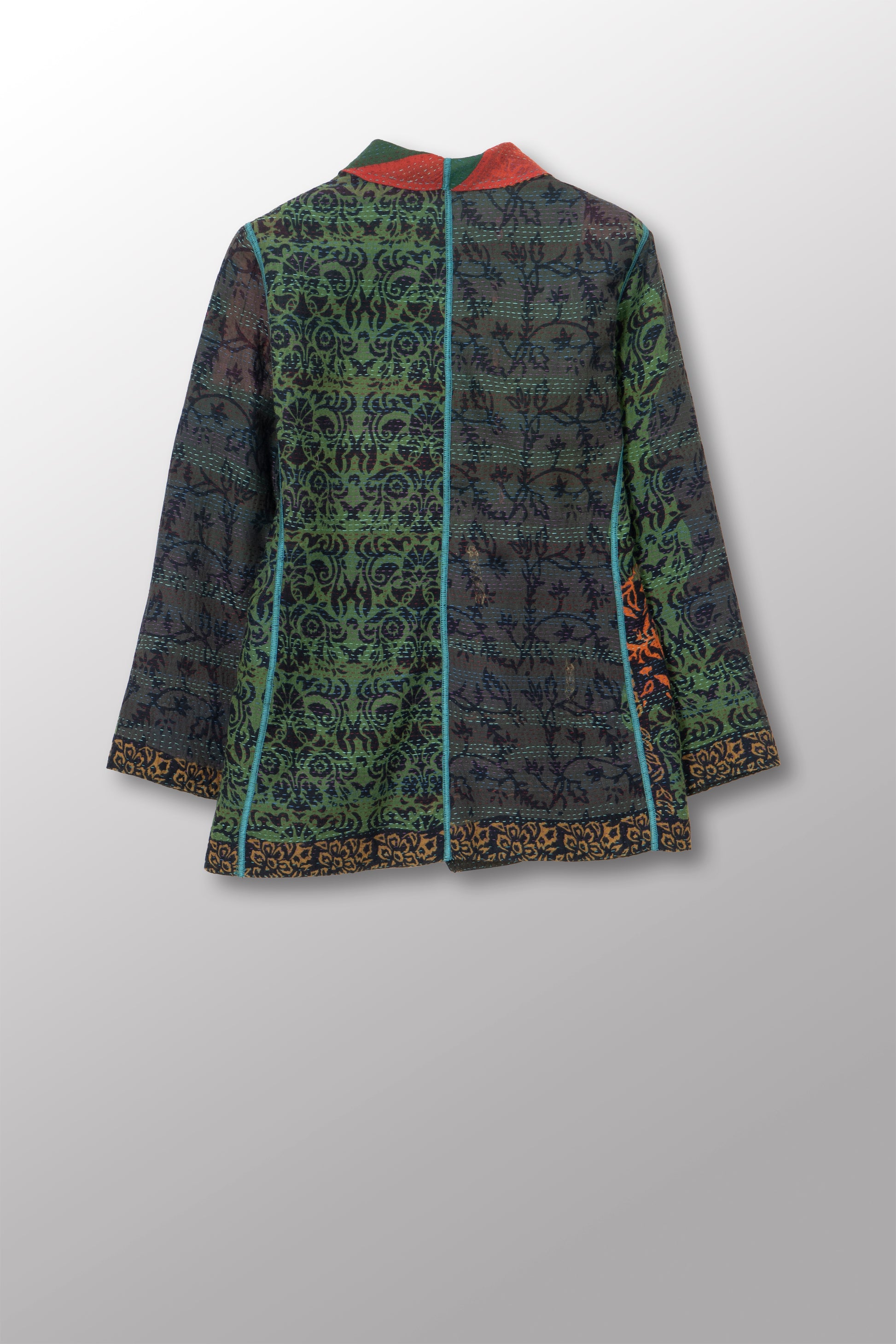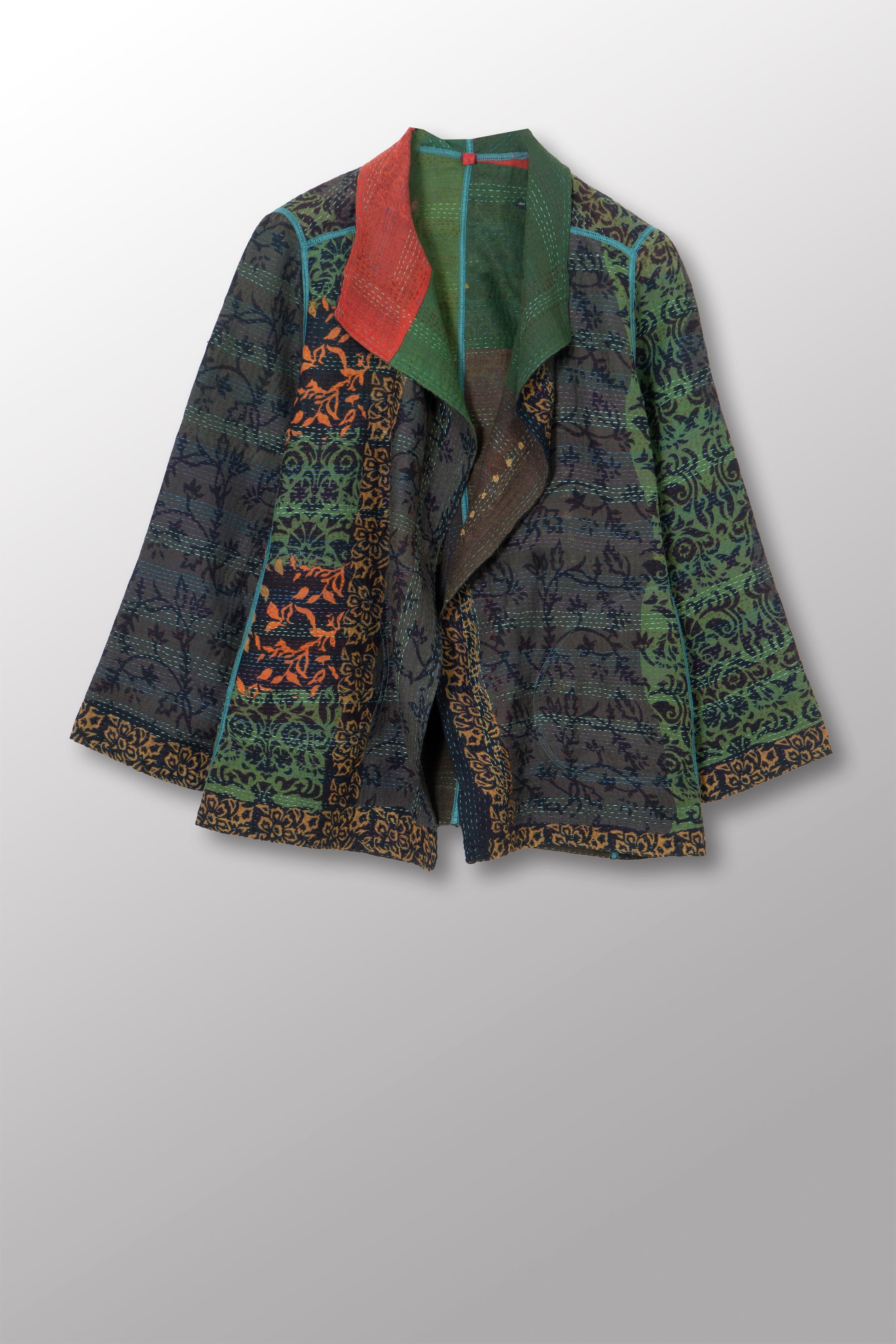 BAGH PRINT KANTHA SHORT JACKET - bg2007-grn -