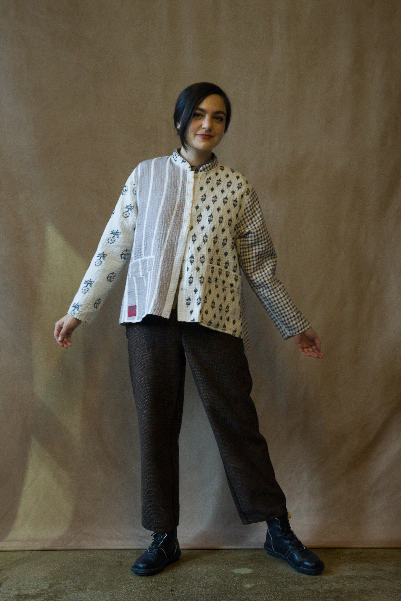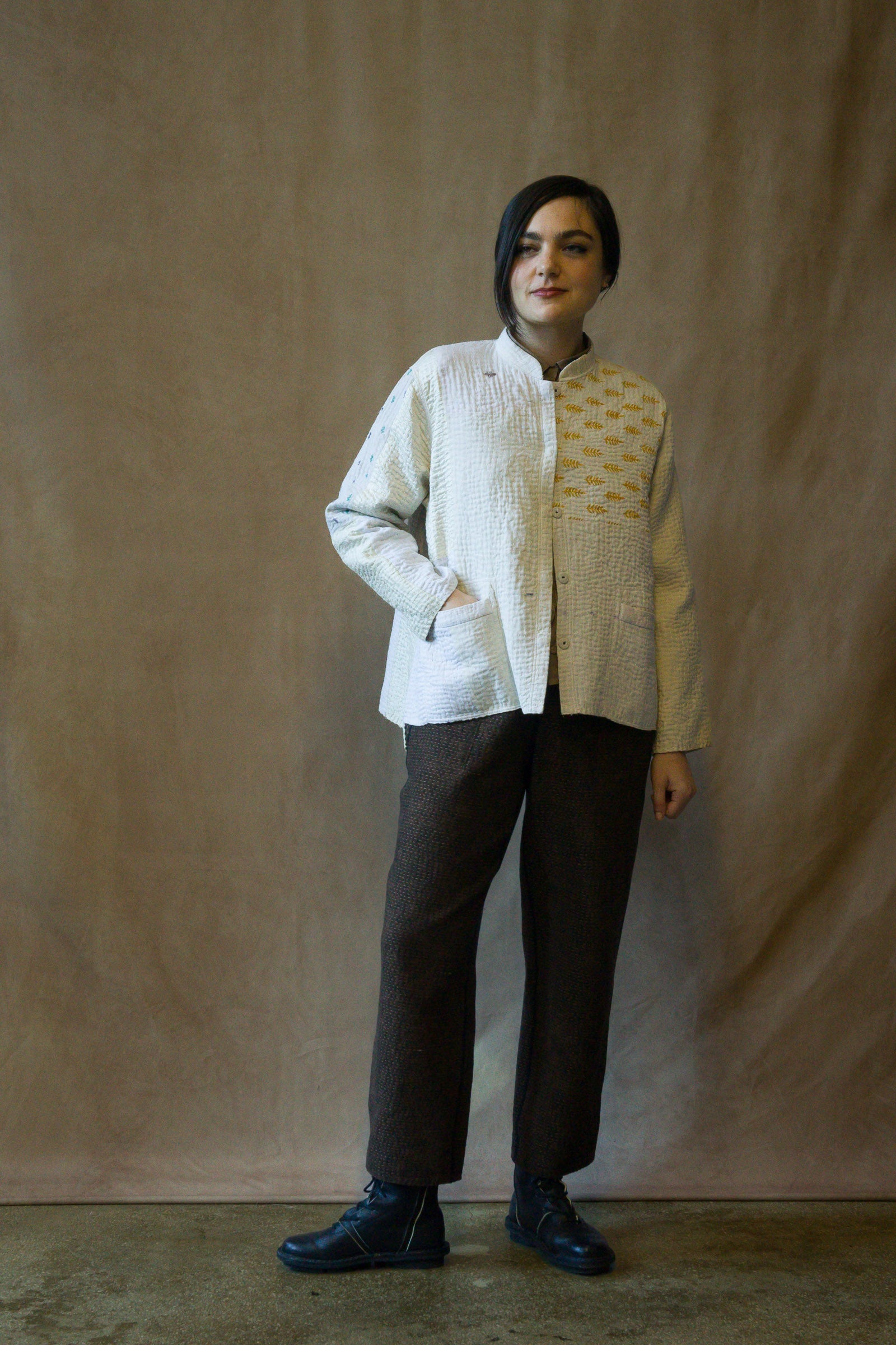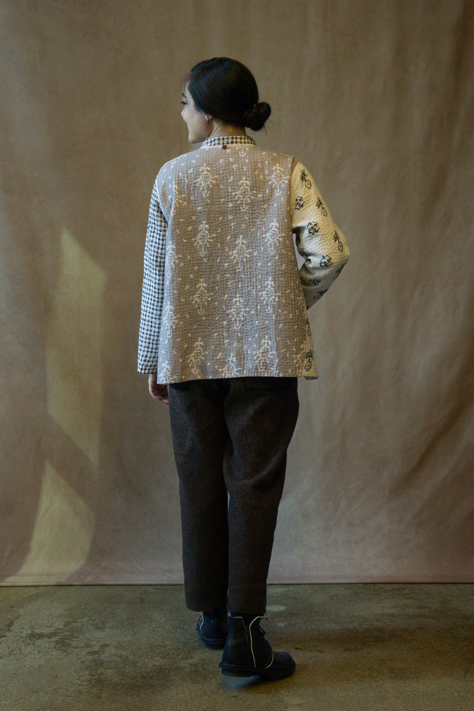 BBB PATCH KANTHA KAFTAN JACKET SHORT - bl-bbb4088-ivy -
