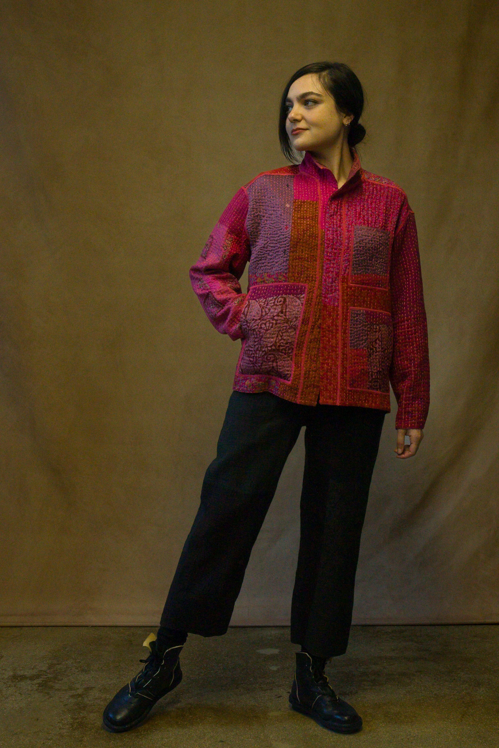 4 Layer Vintage Saris with Hand Stitches on Entire Garment - Reversible