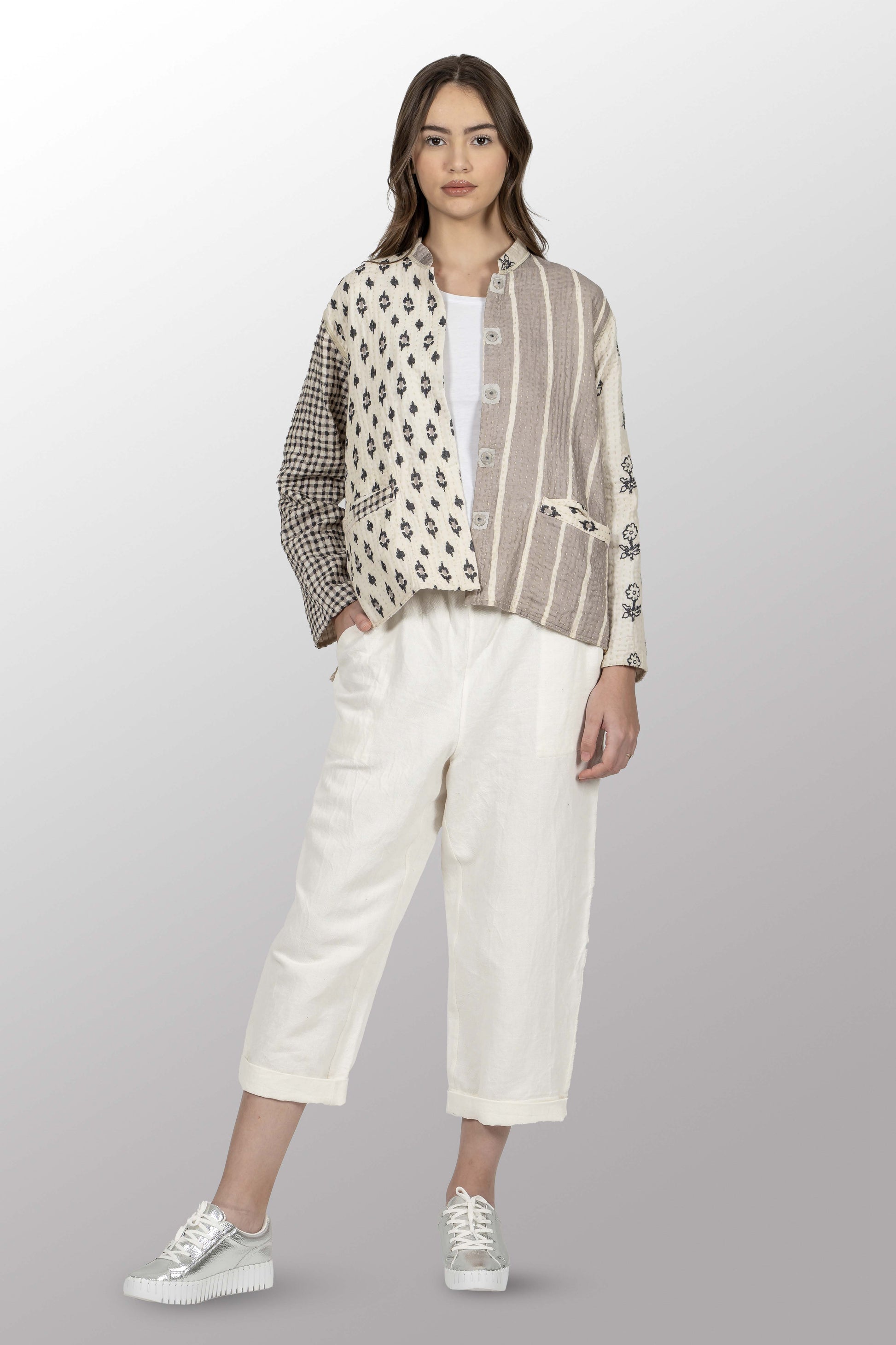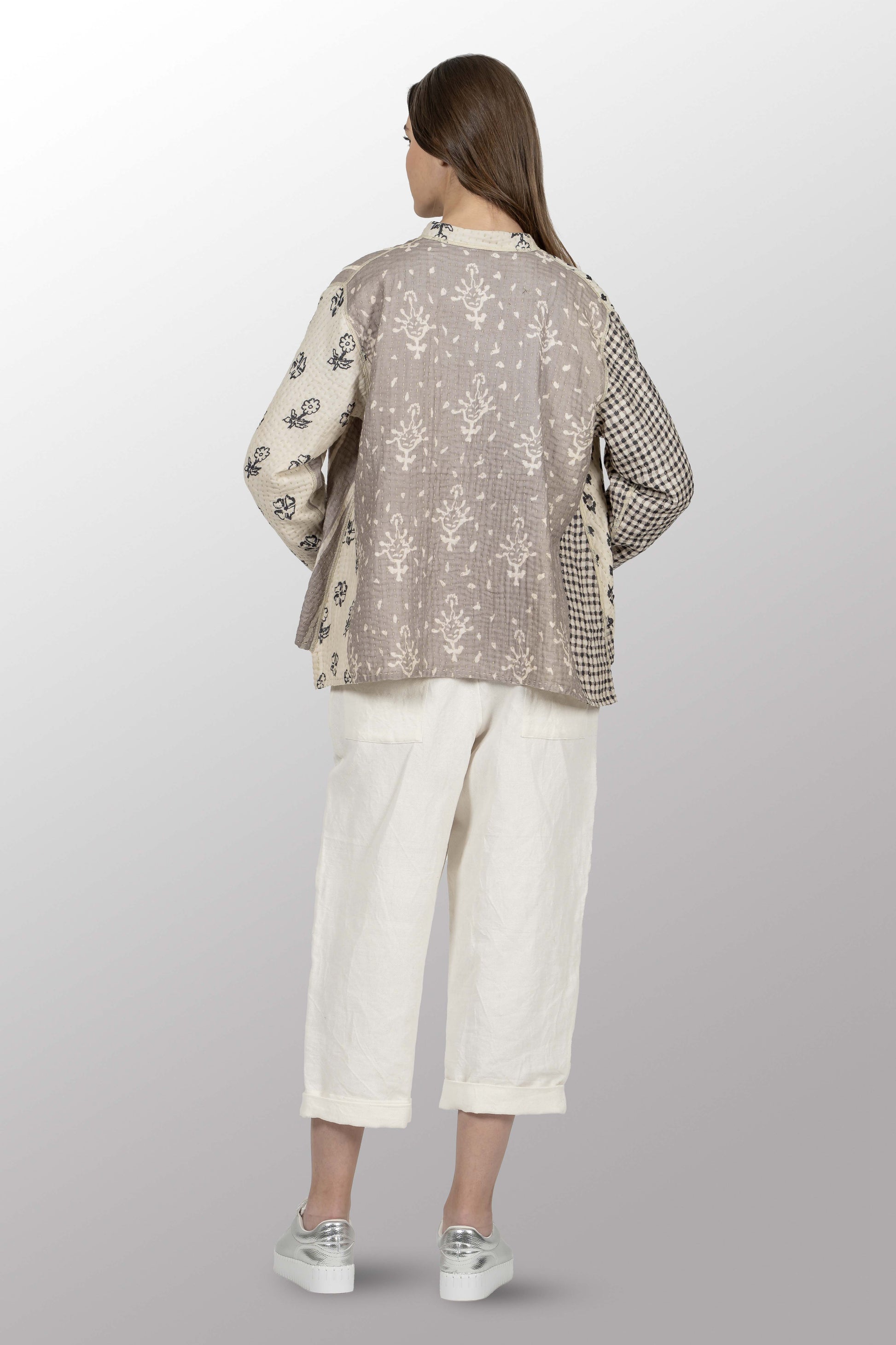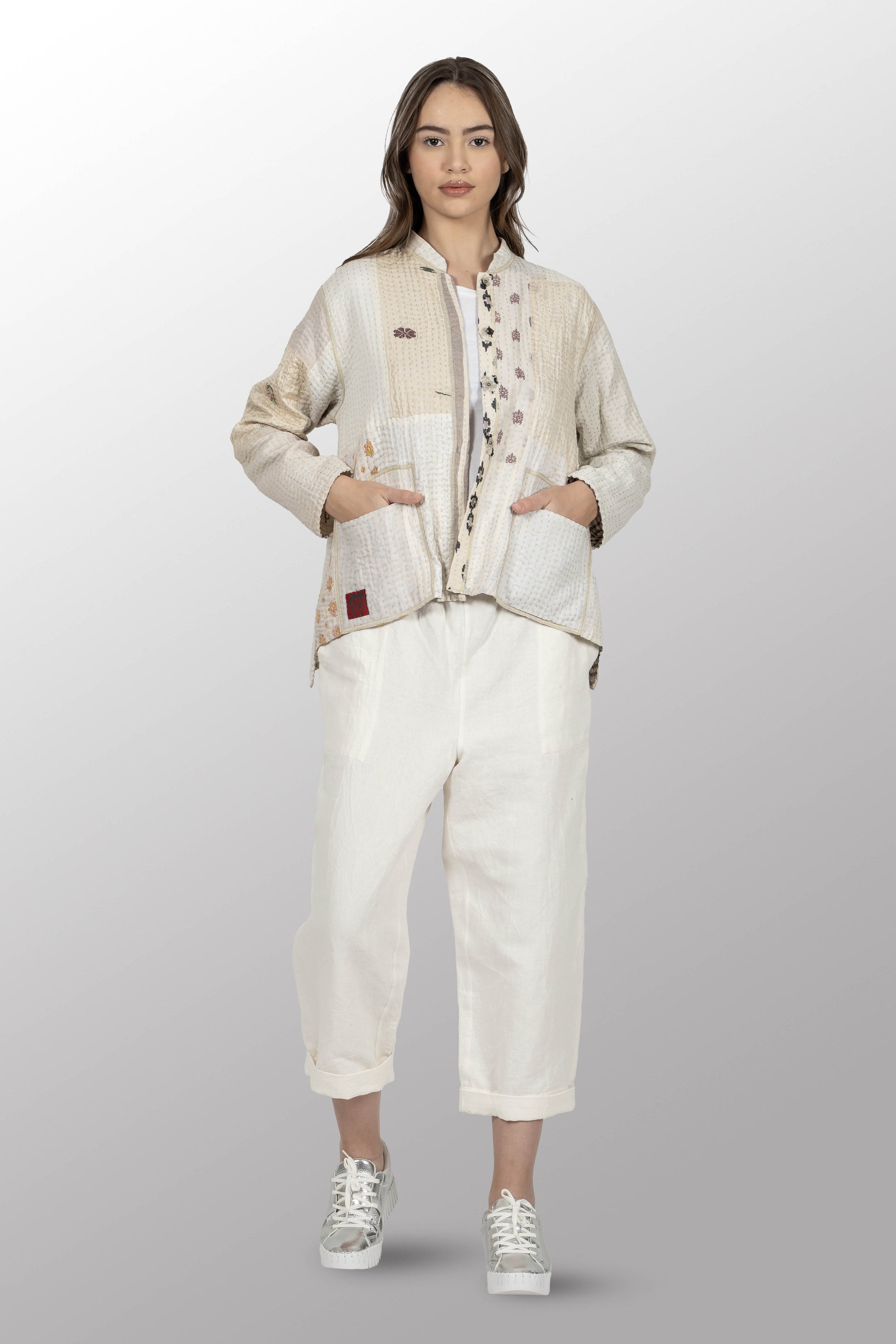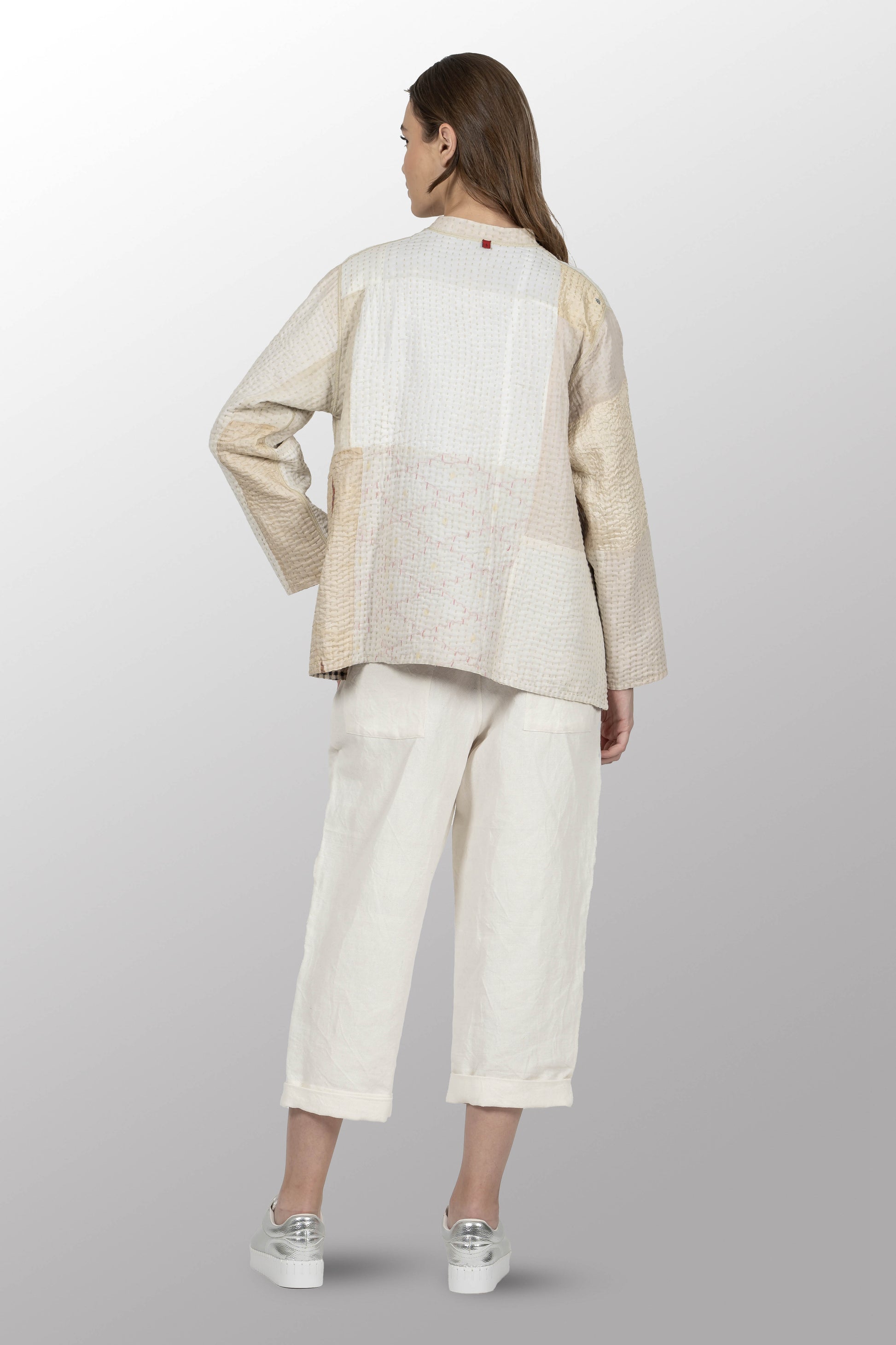 BBK PATCH KANTHA KAFTAN JACKET SHORT - bl-bbp4088-ivy -