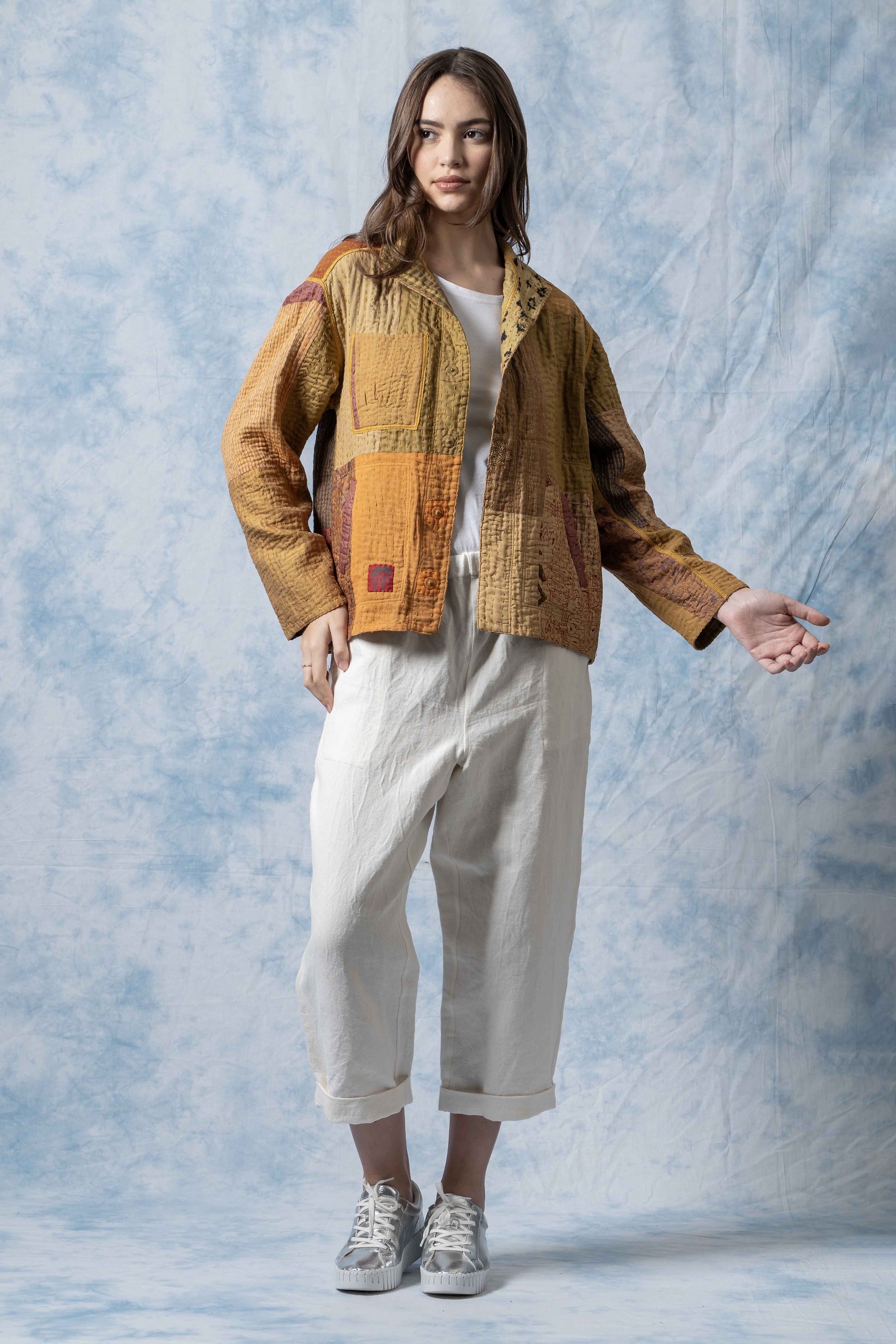 4 Layer Vintage Saris with Hand Stitches on Entire Garment - Reversible