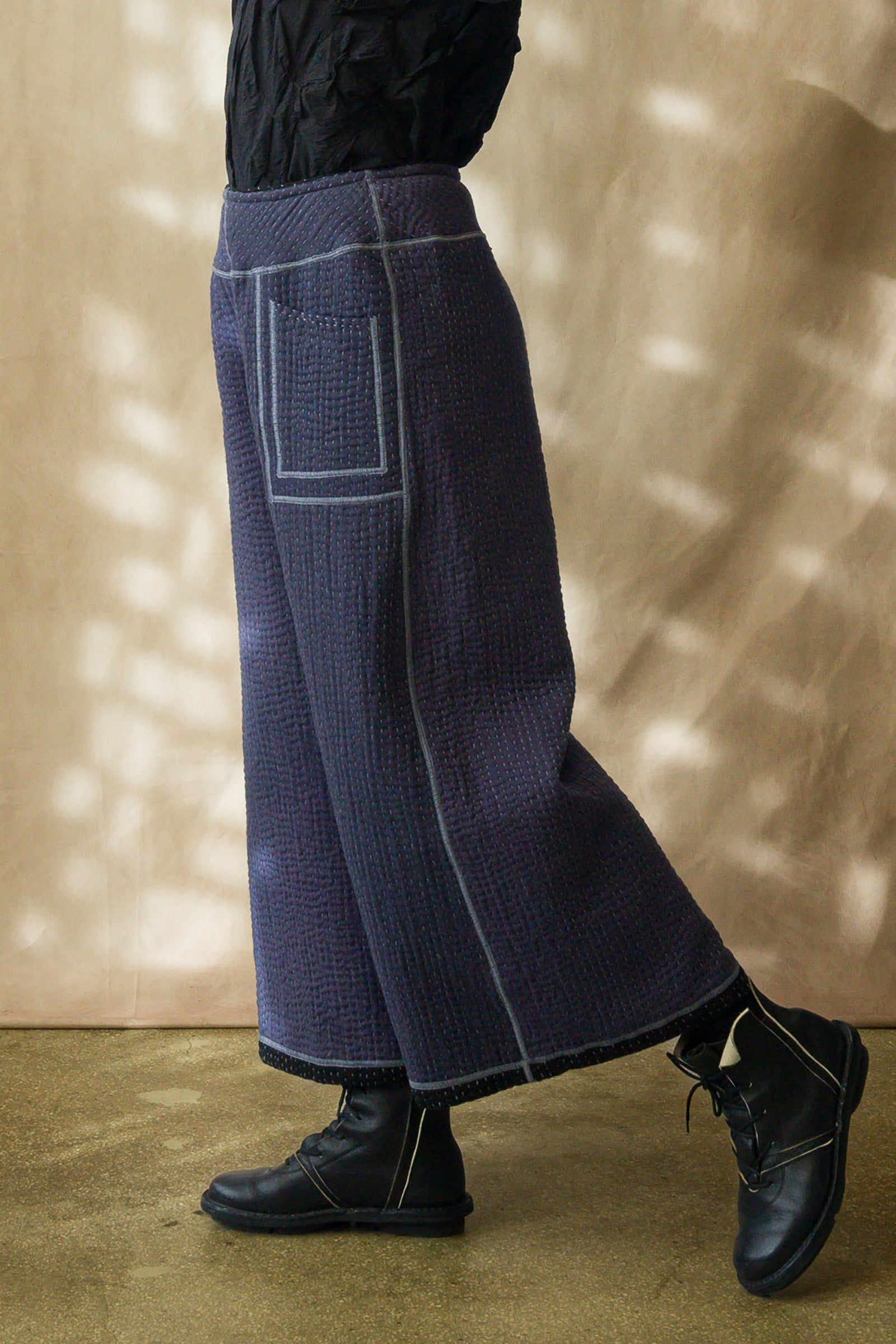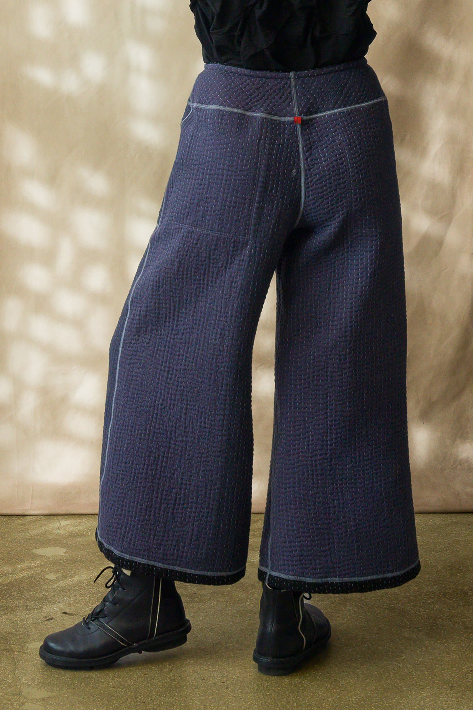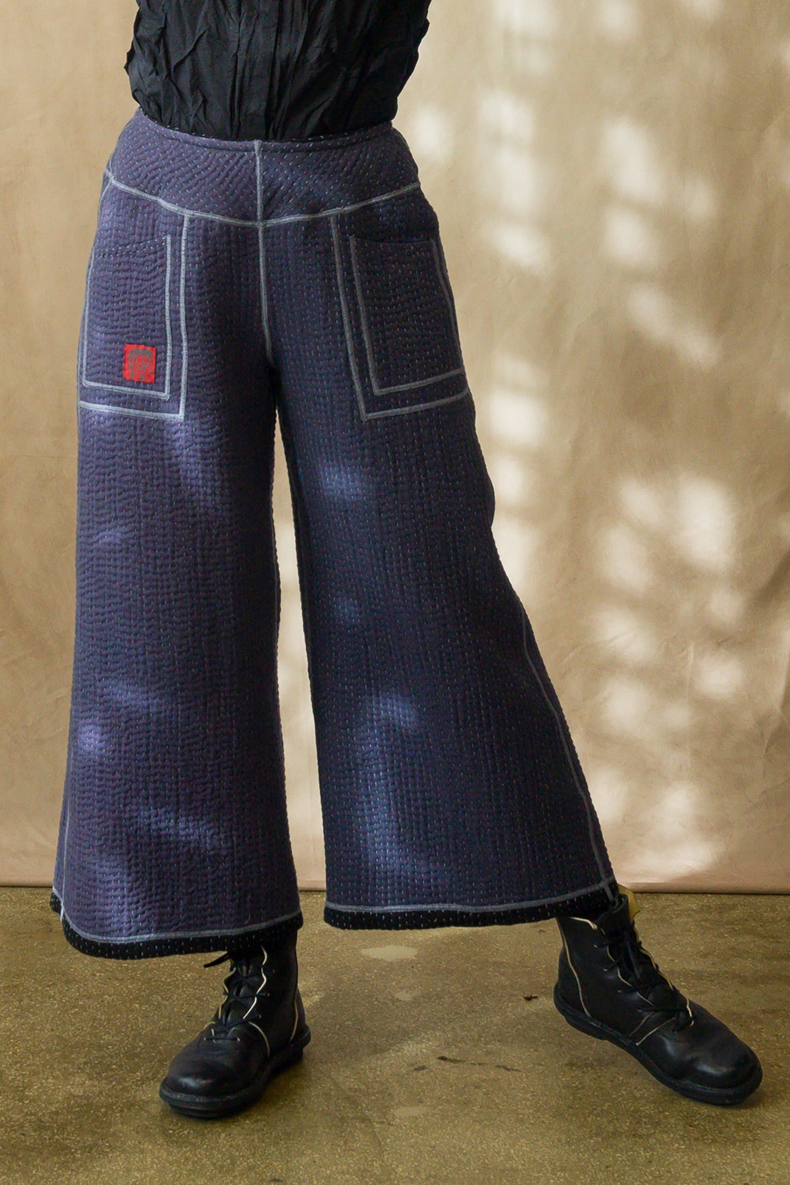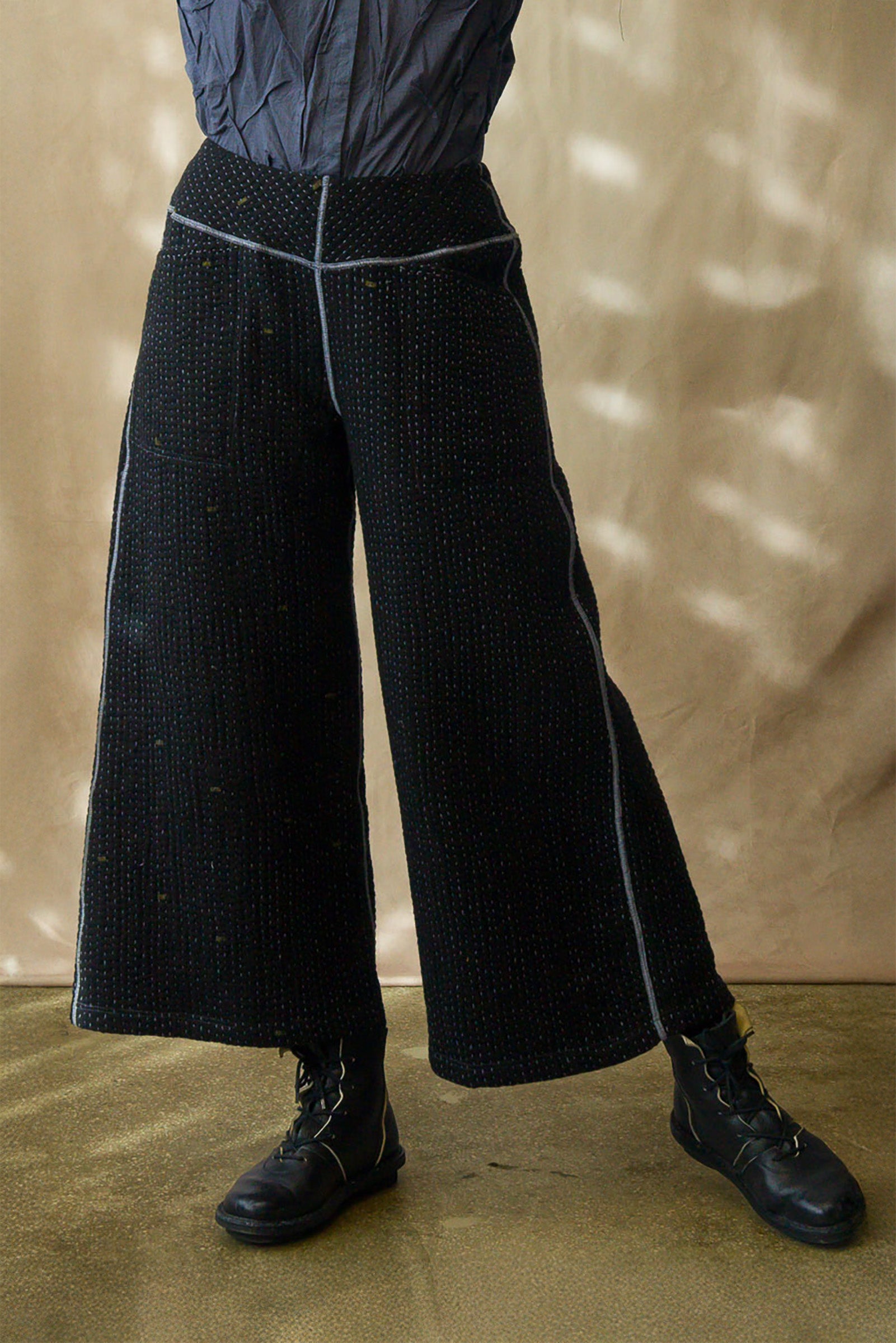 BBK SOLID KANTHA MID RISE WIDE LEG PANTS - bl-bbs6665-blk -