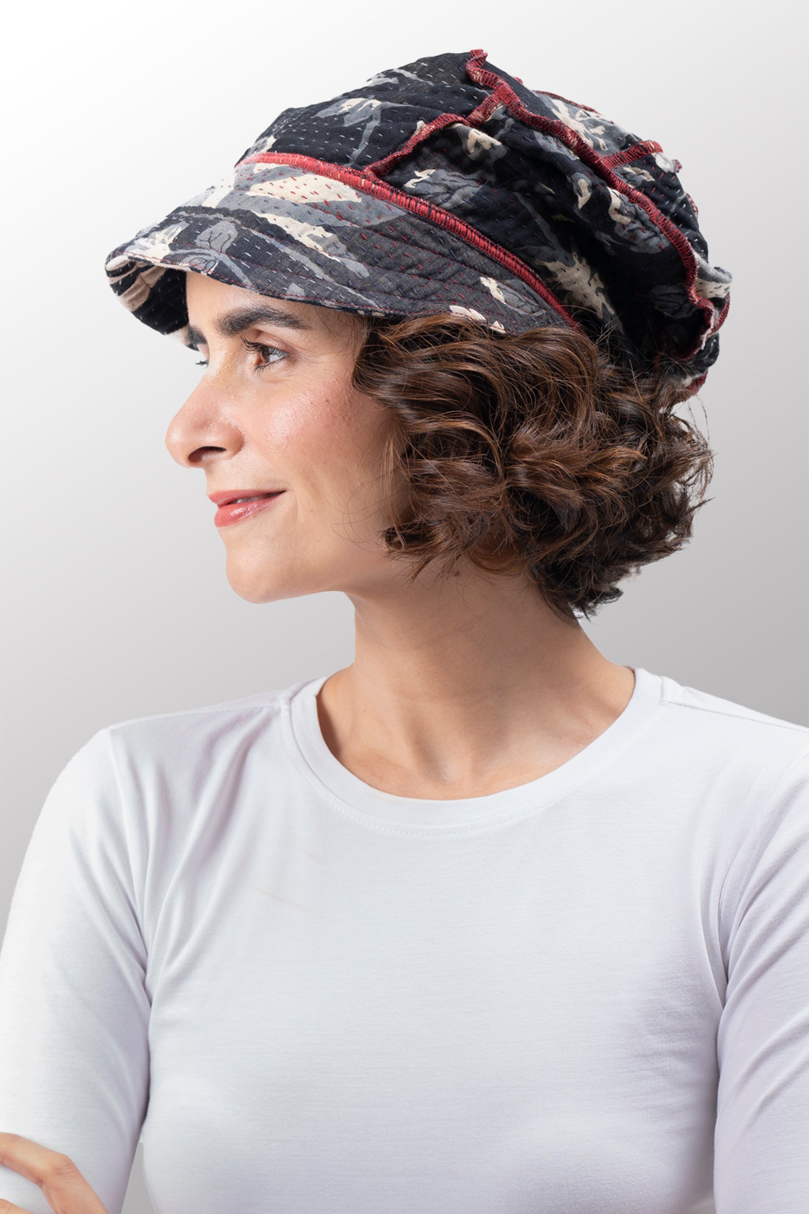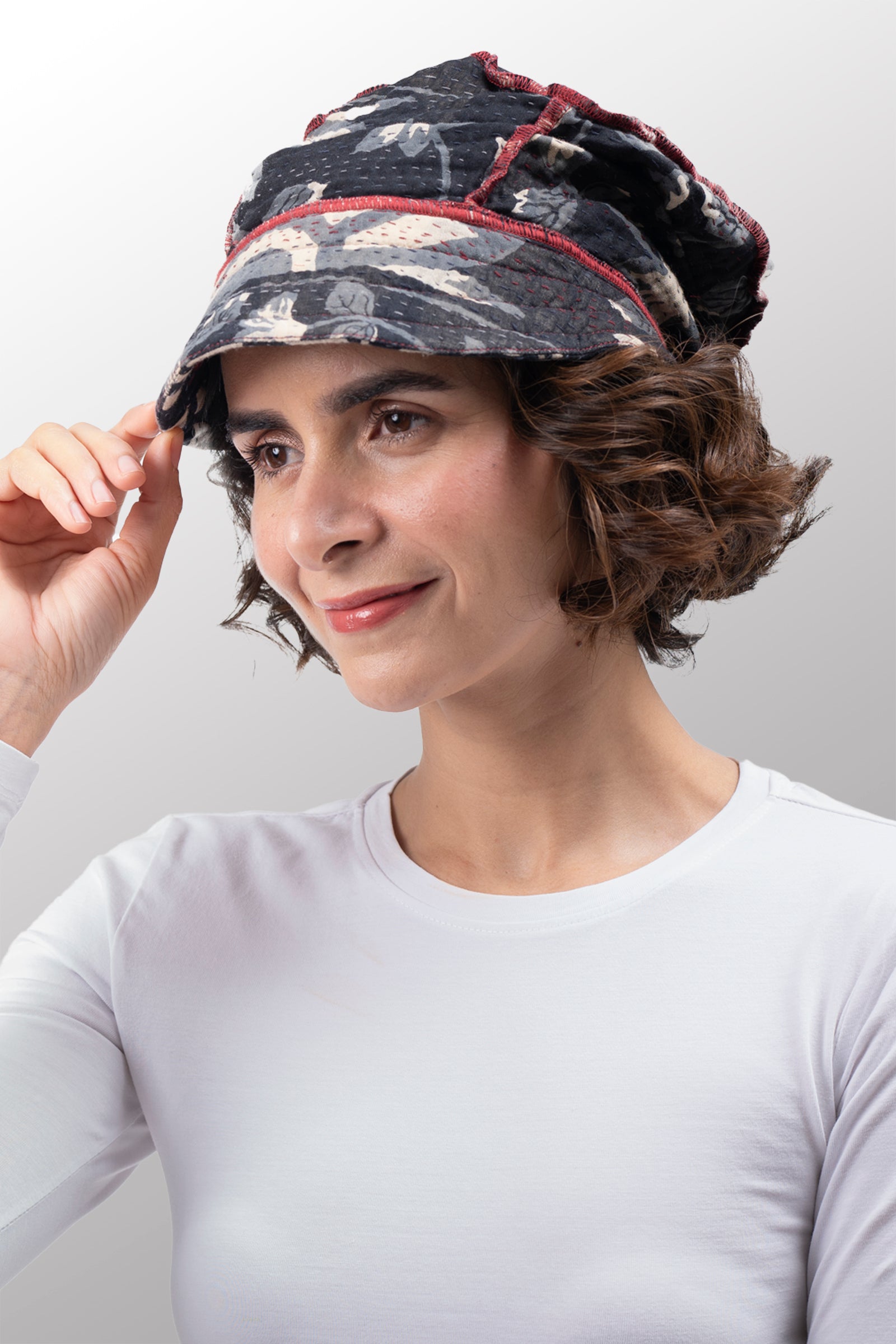 BLACK AND WHITE PRINT PATCH KANTHA HALF BRIM HAT - pn4881-blk -
