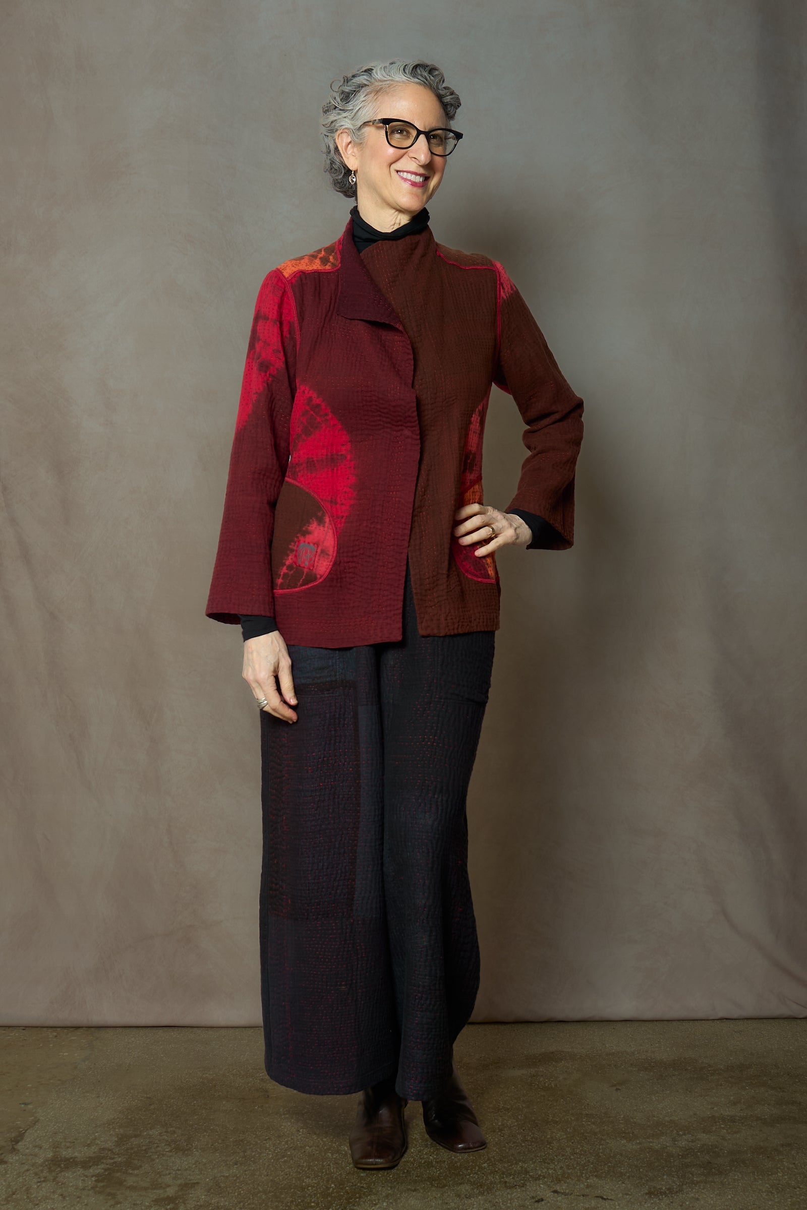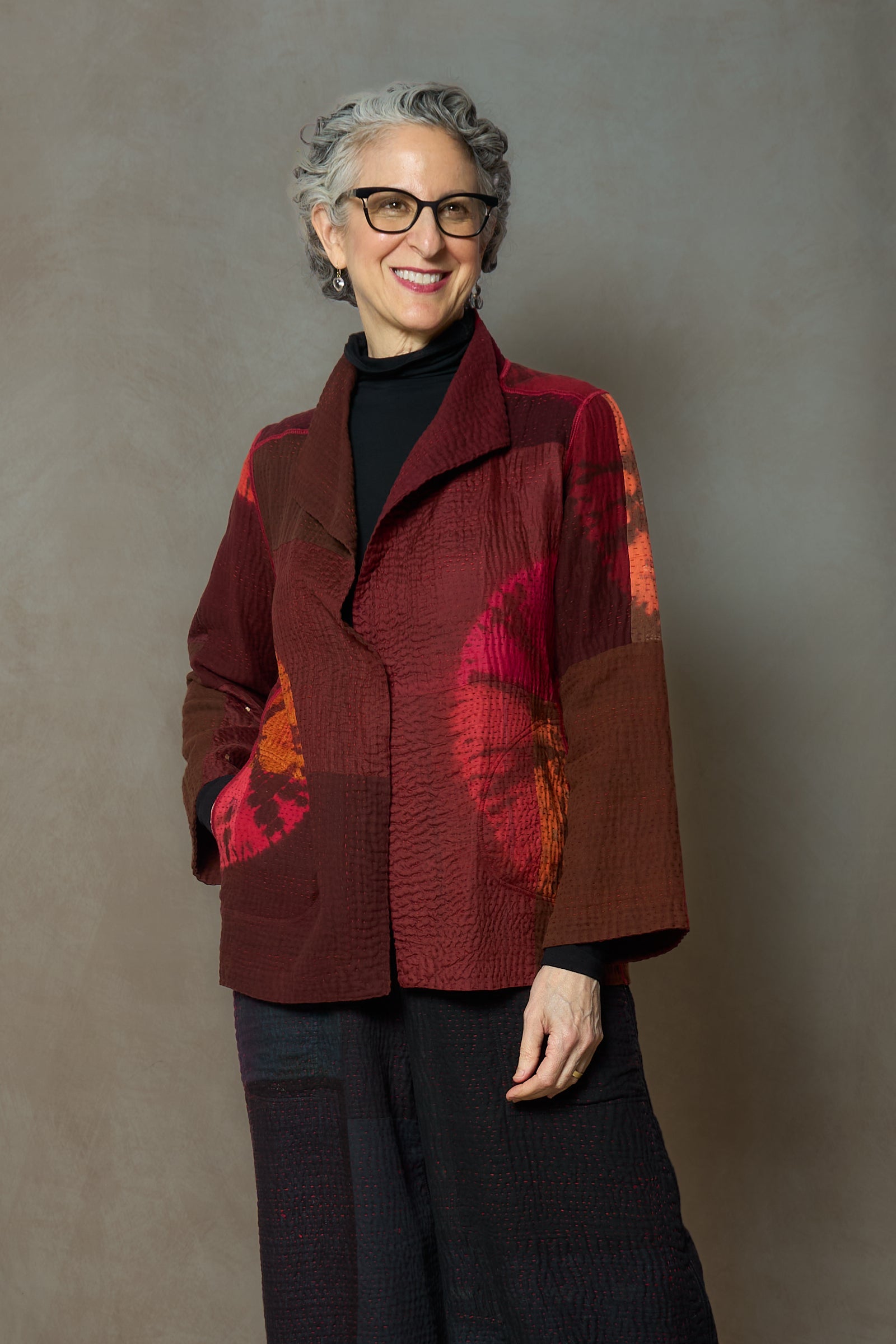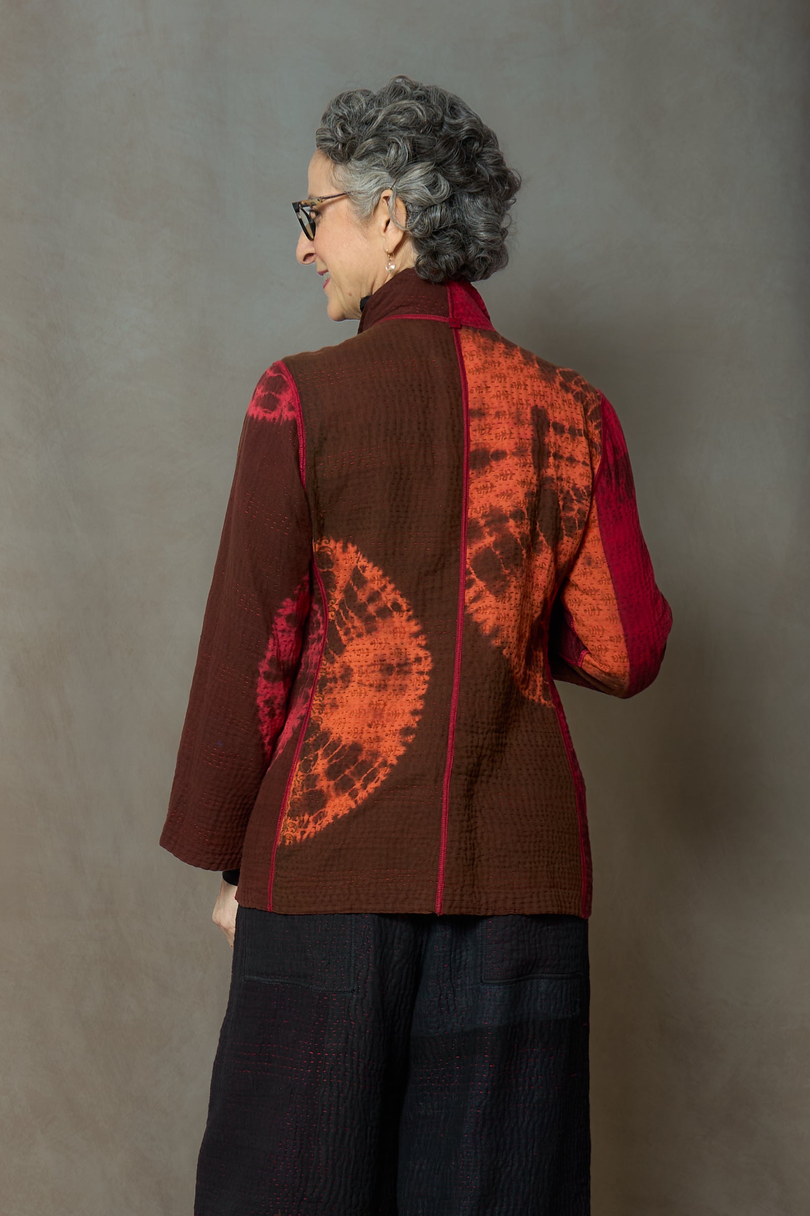 CIRCLE SHIBORI TIE DYE WOVEN PATCH KANTH SHORT JACKET - tc4007-red -