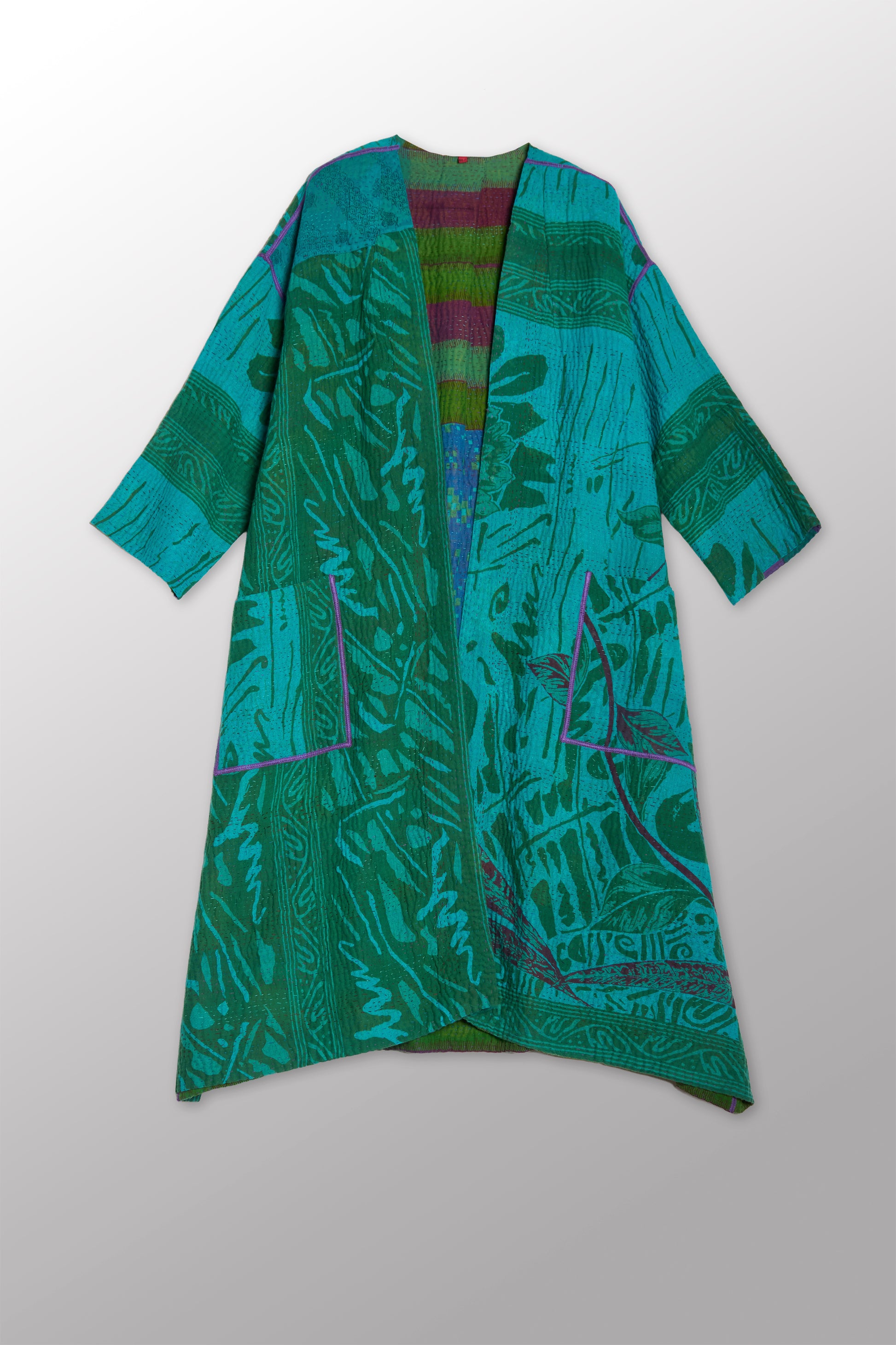 4 Layer Vintage Saris with Hand Stitches on Entire Garment - Reversible