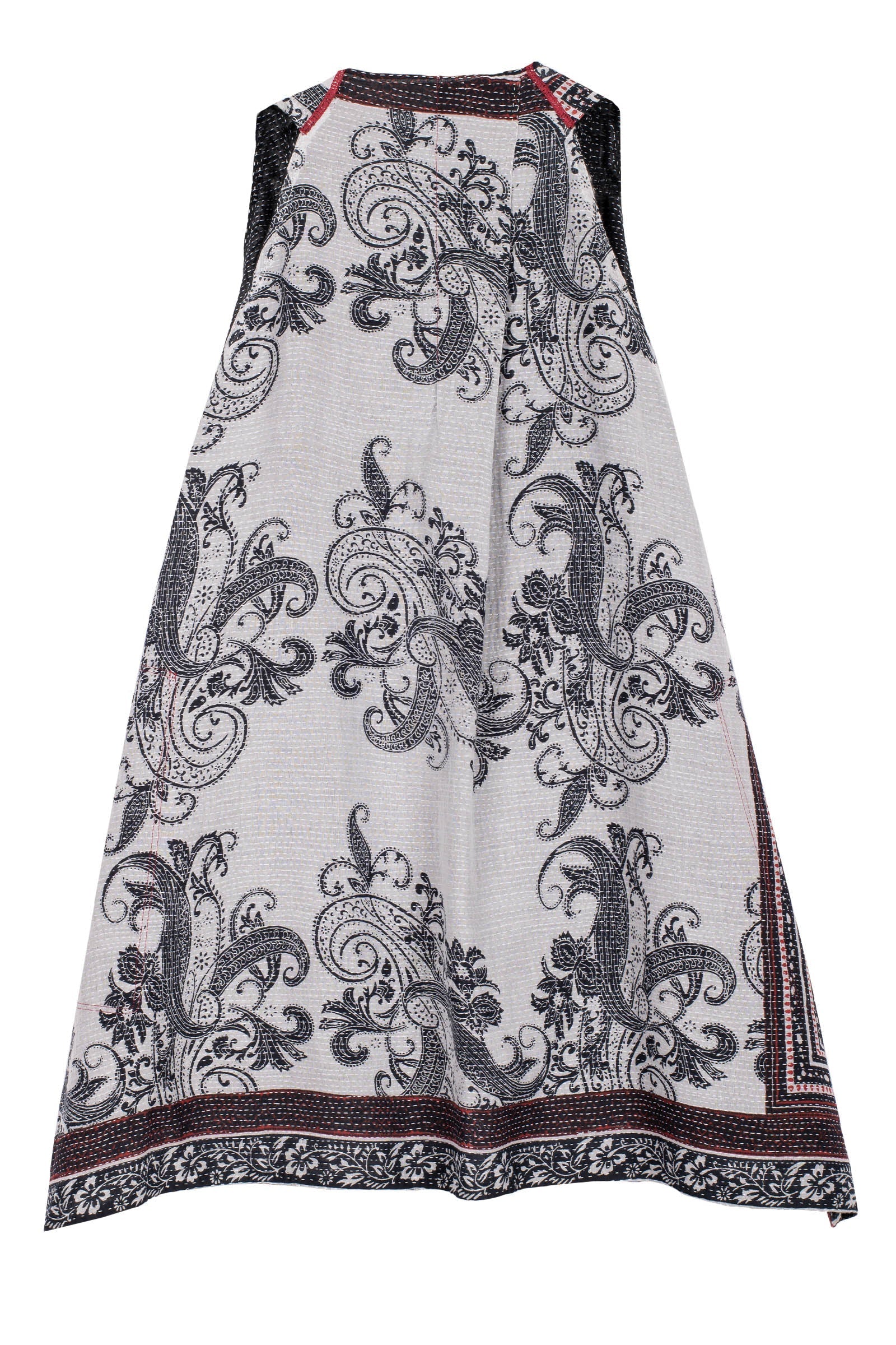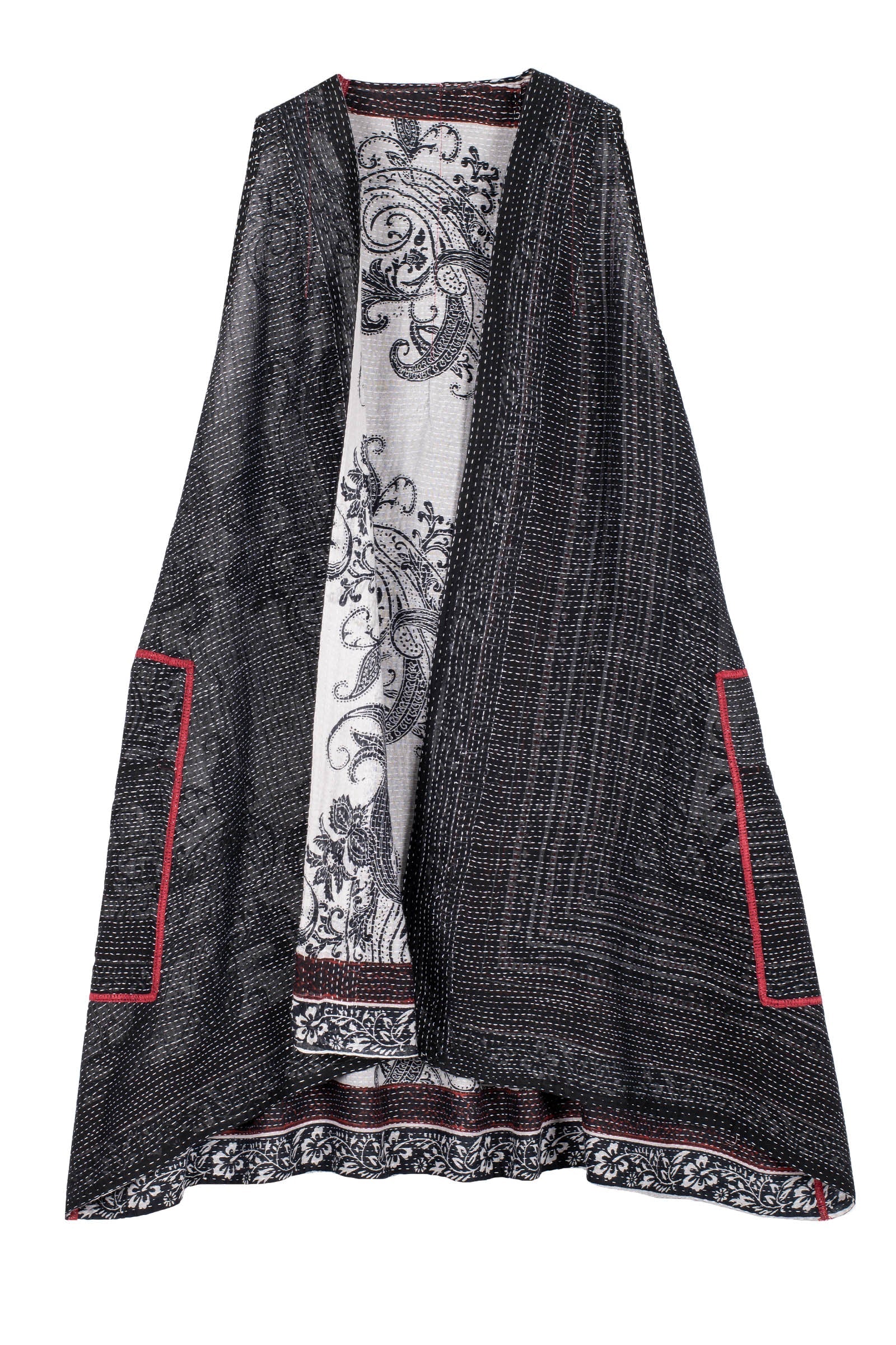 COTTON PAISLEY KANTHA BACK PLEATED VEST - cp2221-wht -