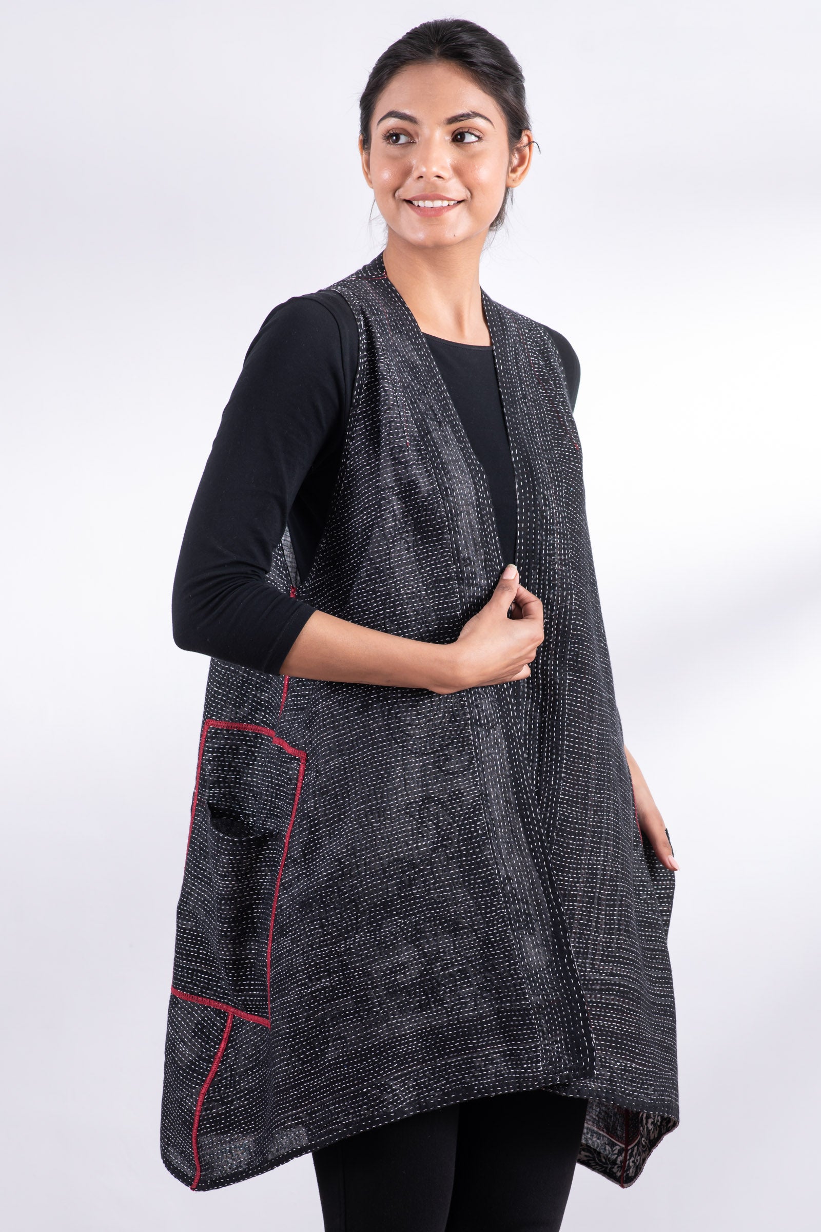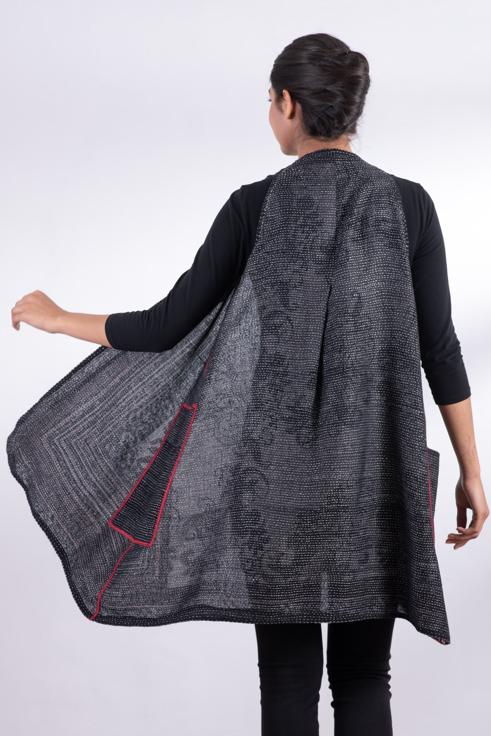 2 Layer Vintage Saris with Hand Stitches on Entire Garment - Reversible