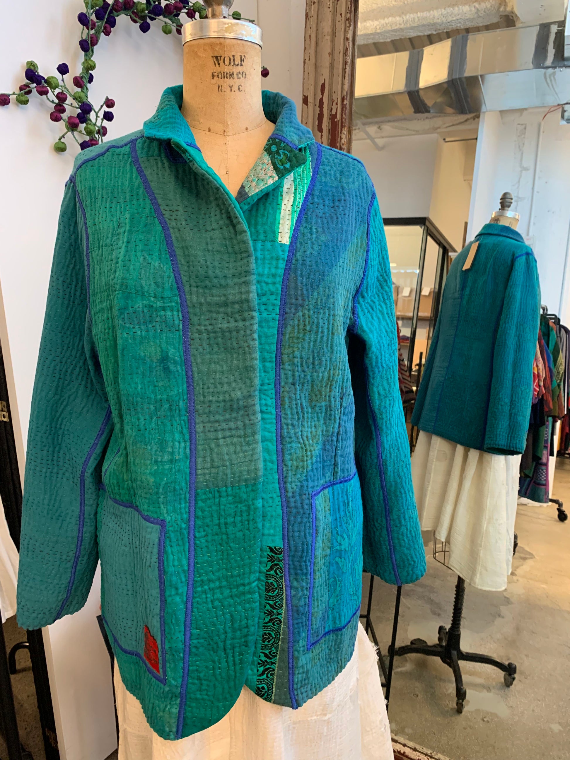 COTTON SILK SW PATCH KANTHA BASIC JACKET - ws4052-tel -