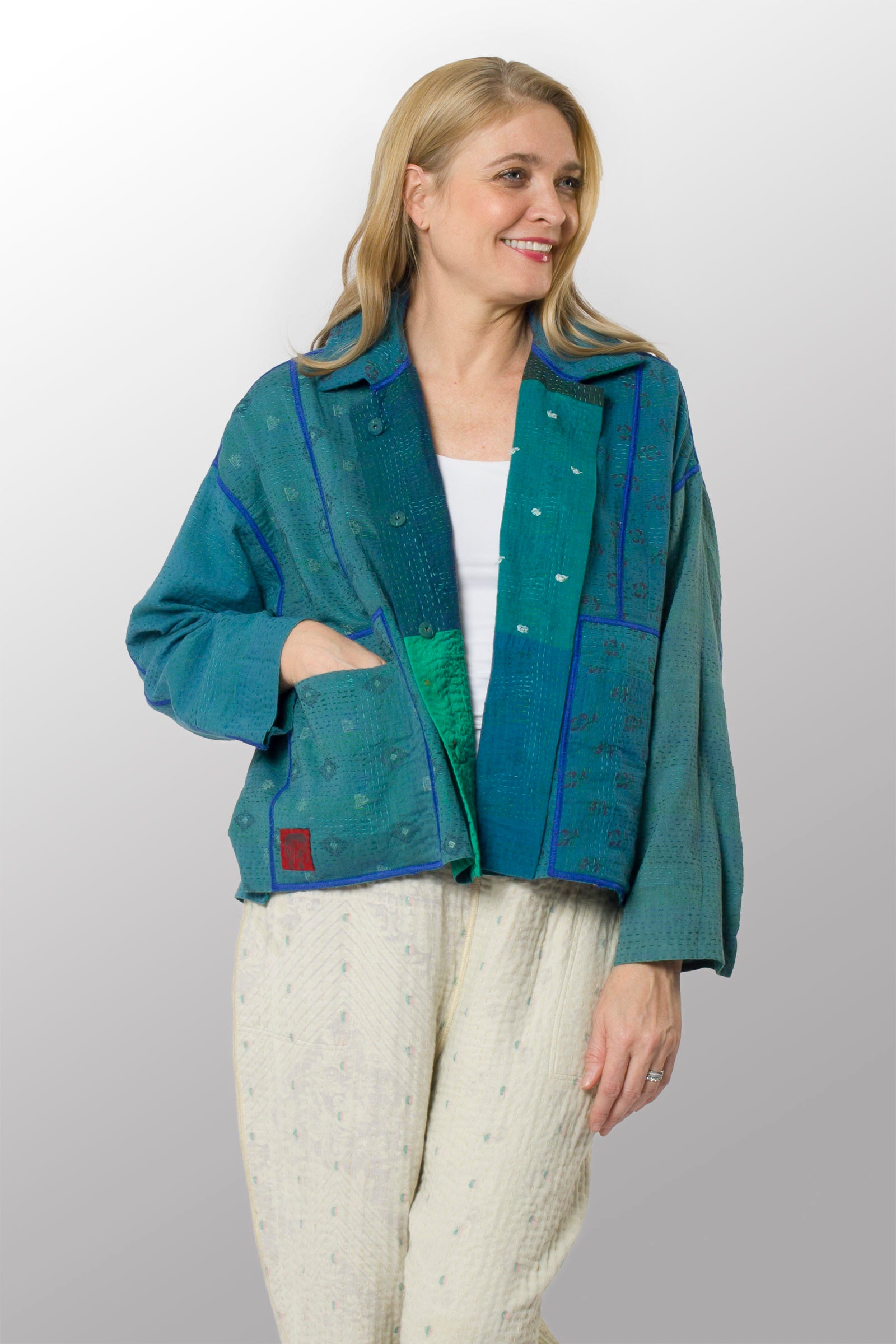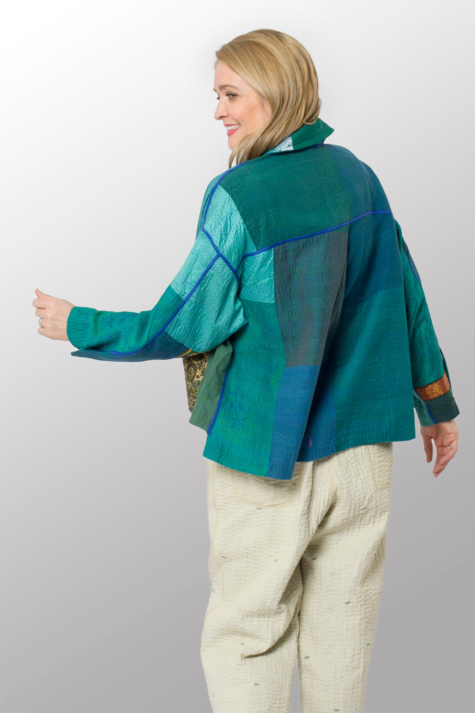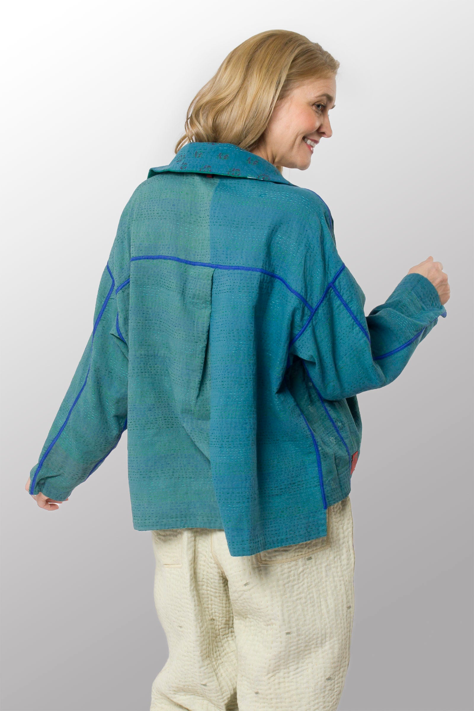 COTTON SILK SW PATCH KANTHA CROPPED SHIRT JACKET - ws2075-tel -