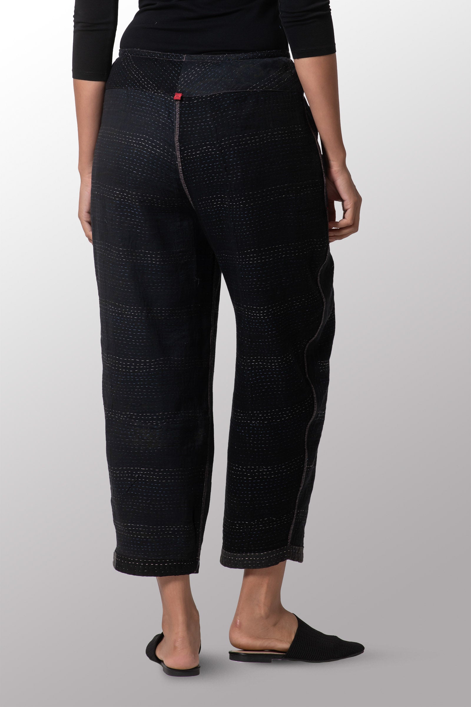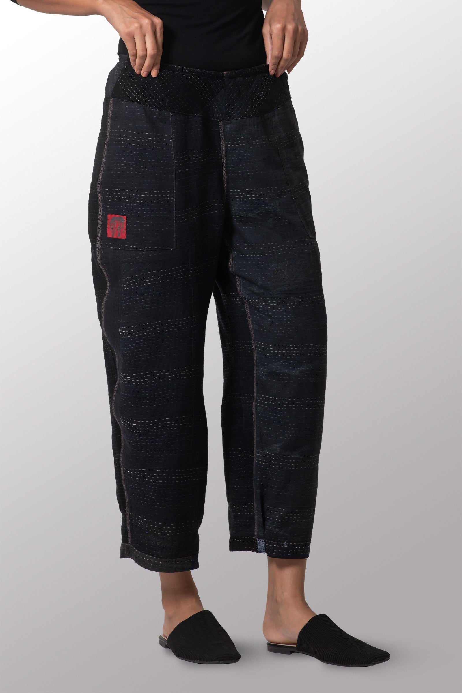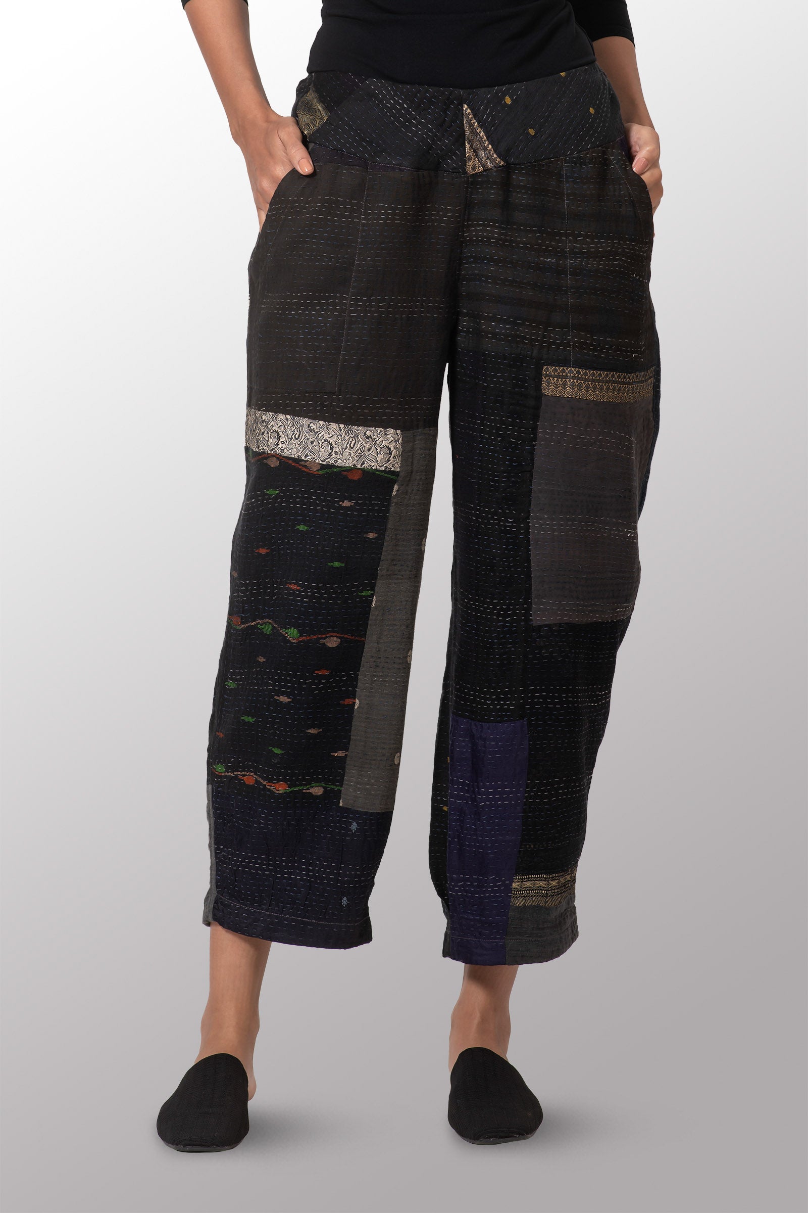 COTTON SILK SW PATCH KANTHA NEW LANTERN PANTS - ws2651-blk -