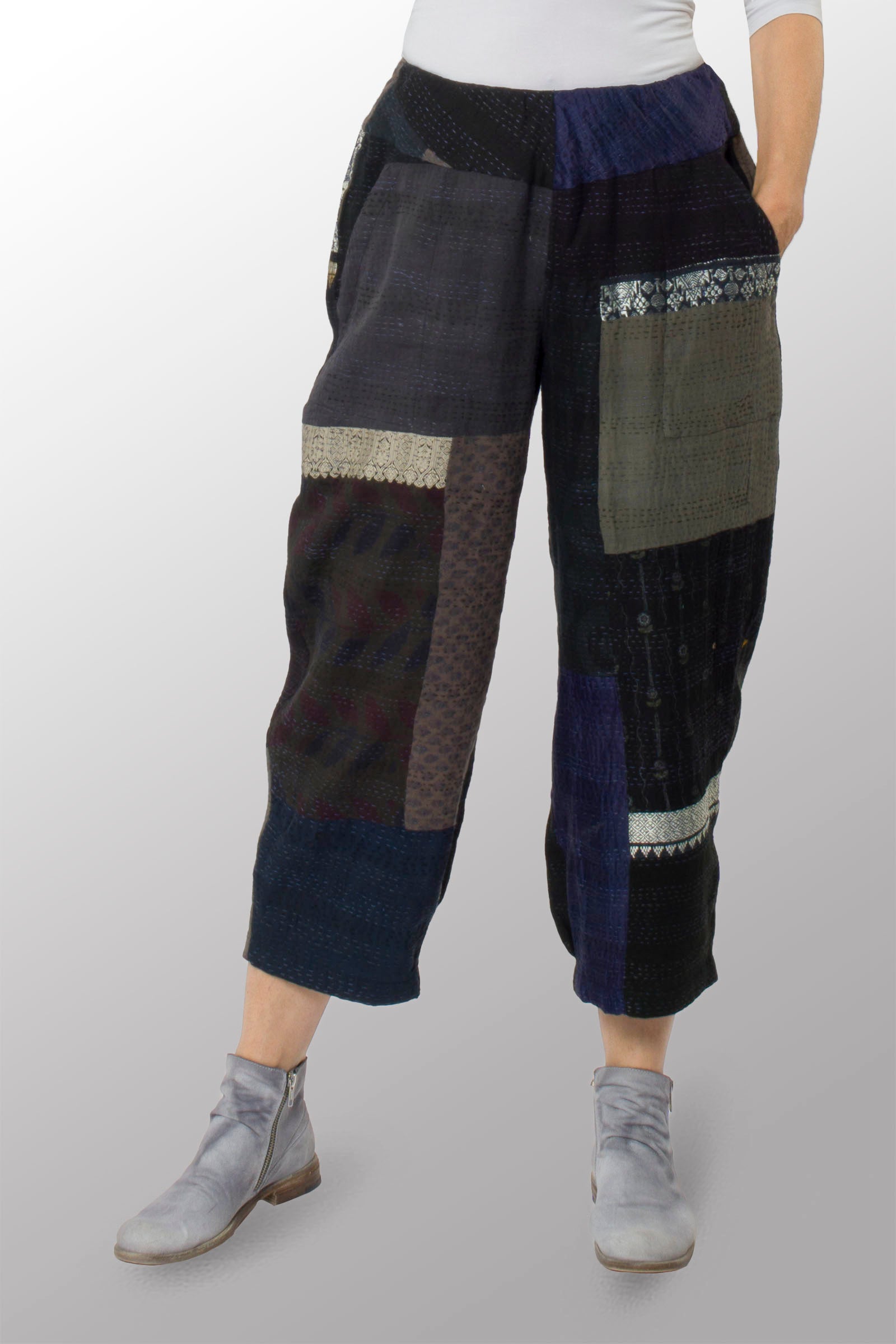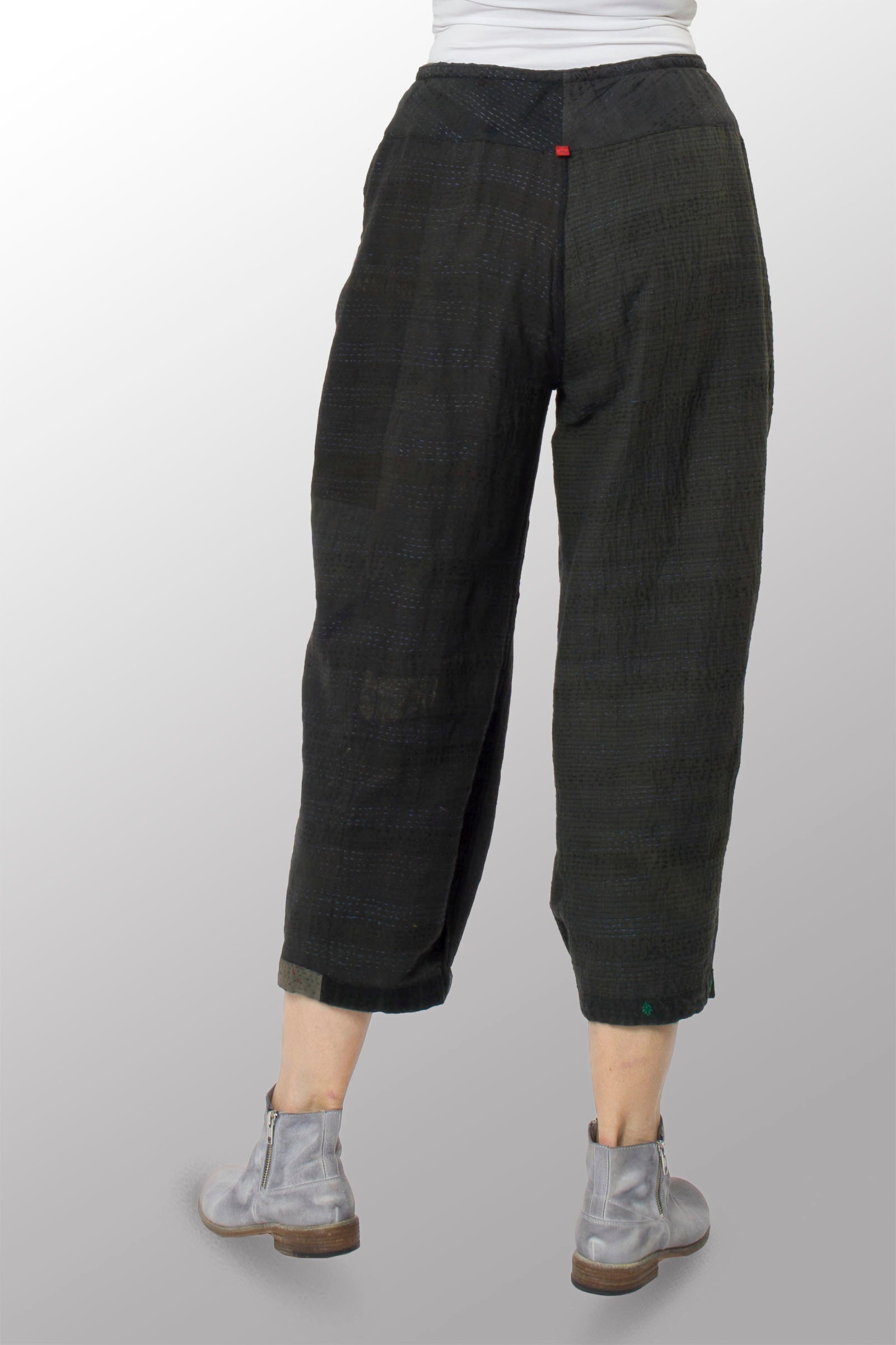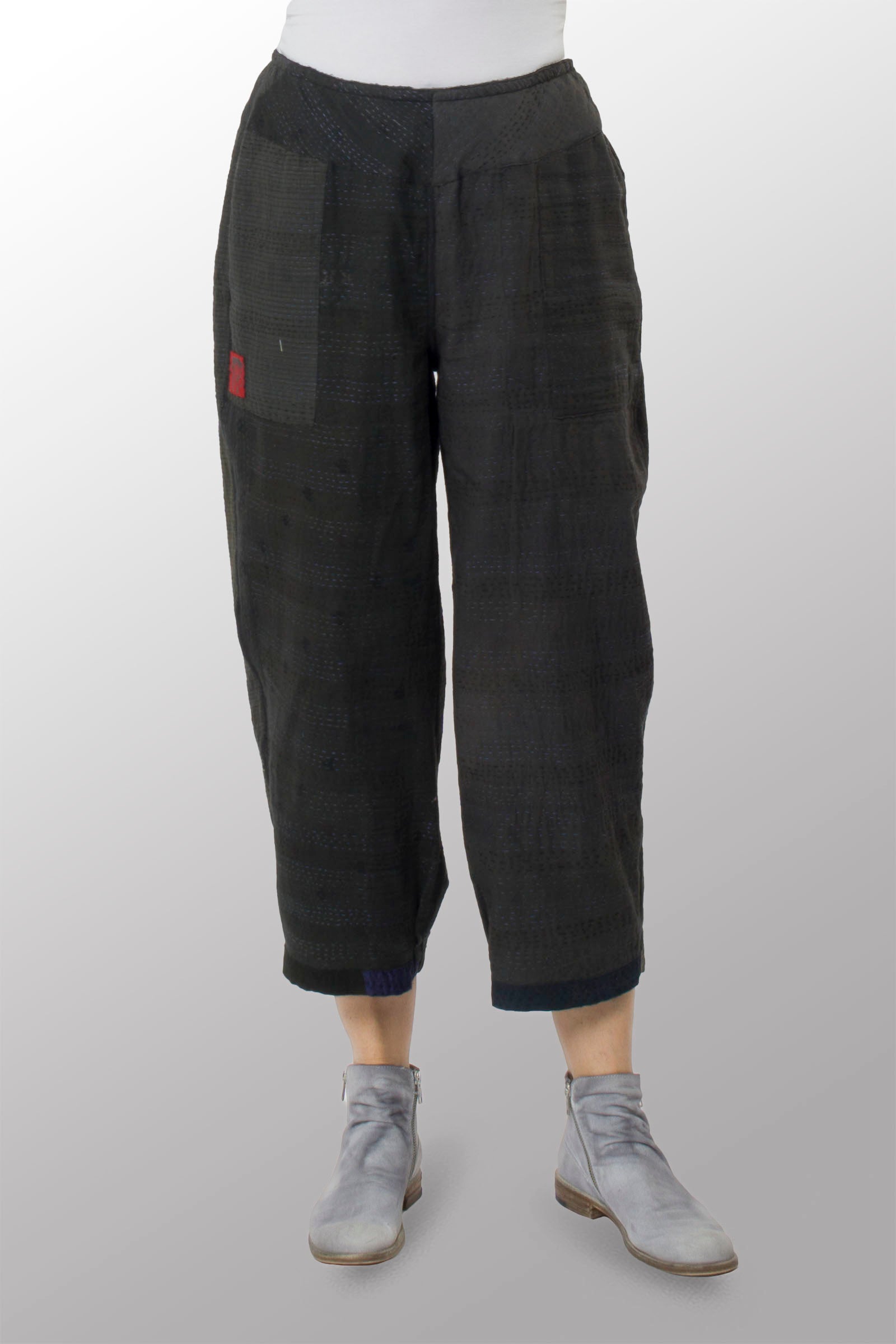 COTTON SILK SW PATCH KANTHA NEW LANTERN PANTS - ws2651-blk -
