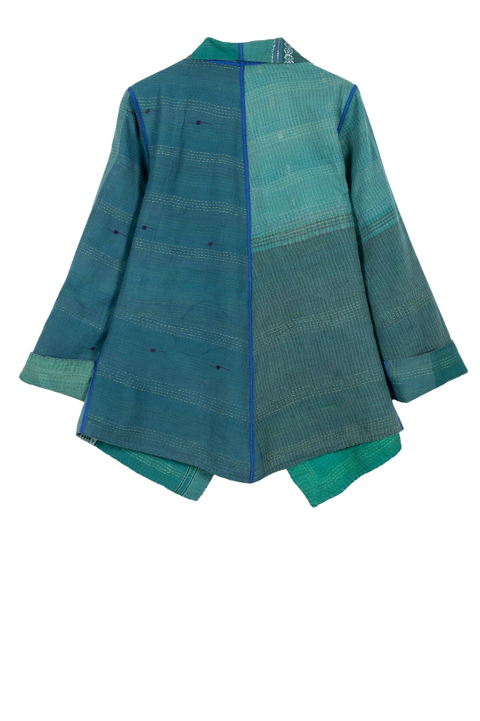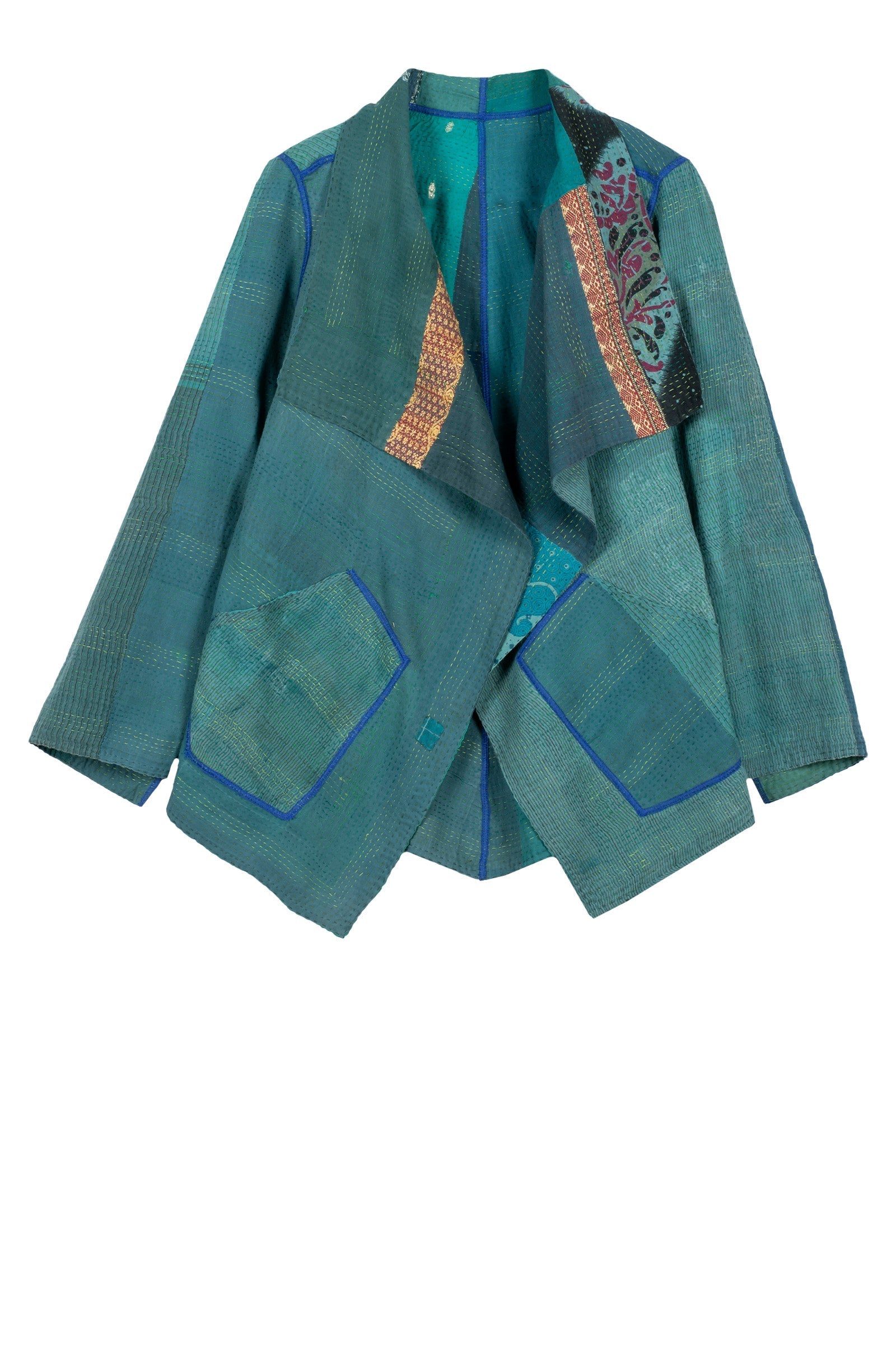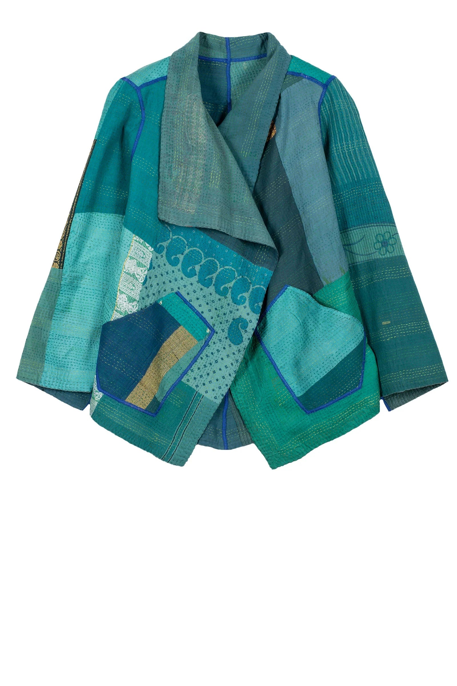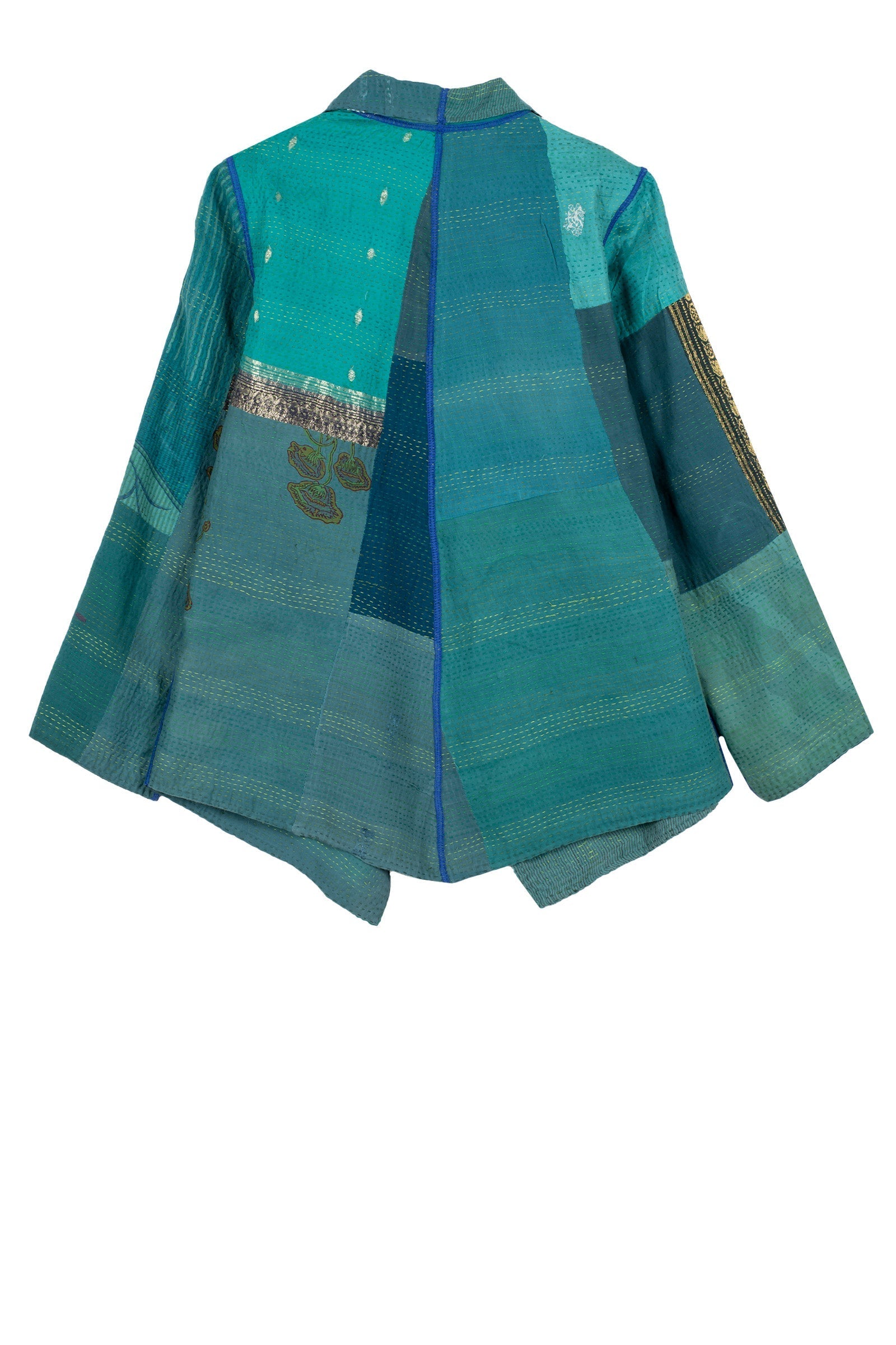 COTTON SILK SW PATCH KANTHA WING COLLAR JACKET - ws2013-tel -