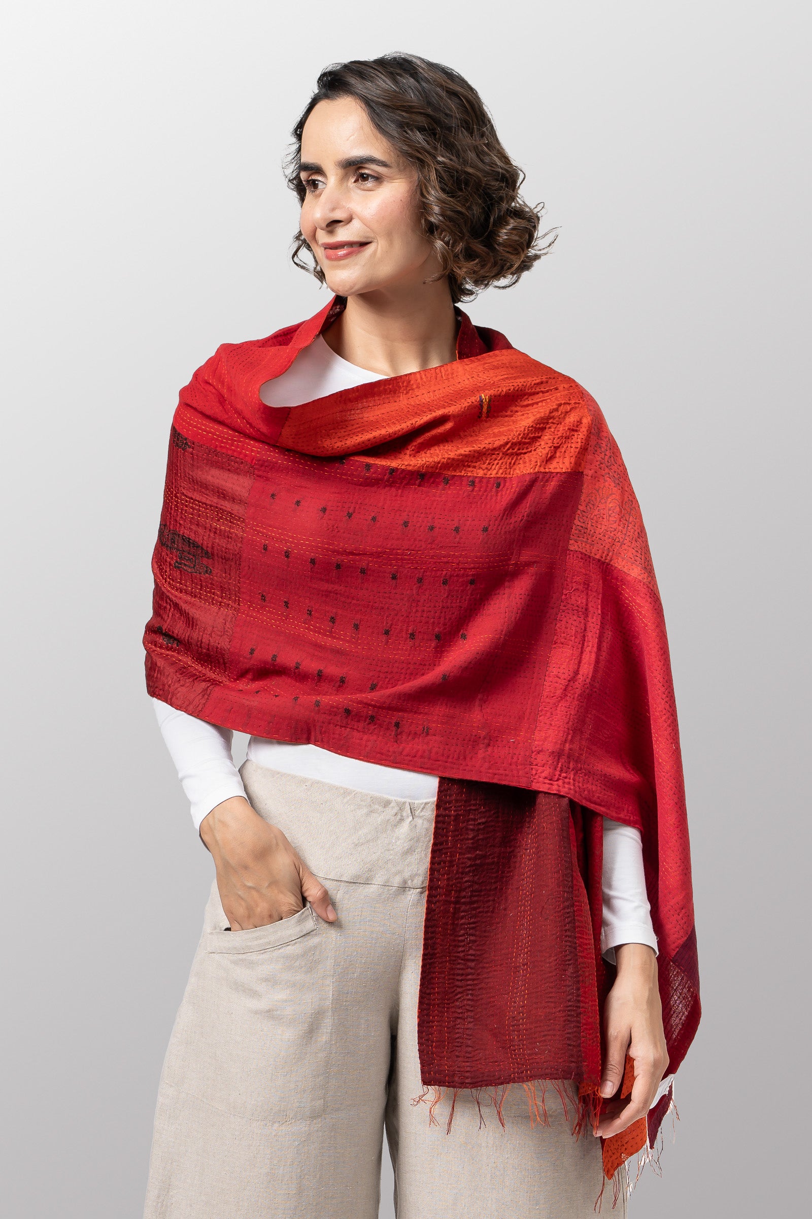 COTTON SILK SW PATCH OMBRE KANTHA SCARF STANDARD - wo2801-org -