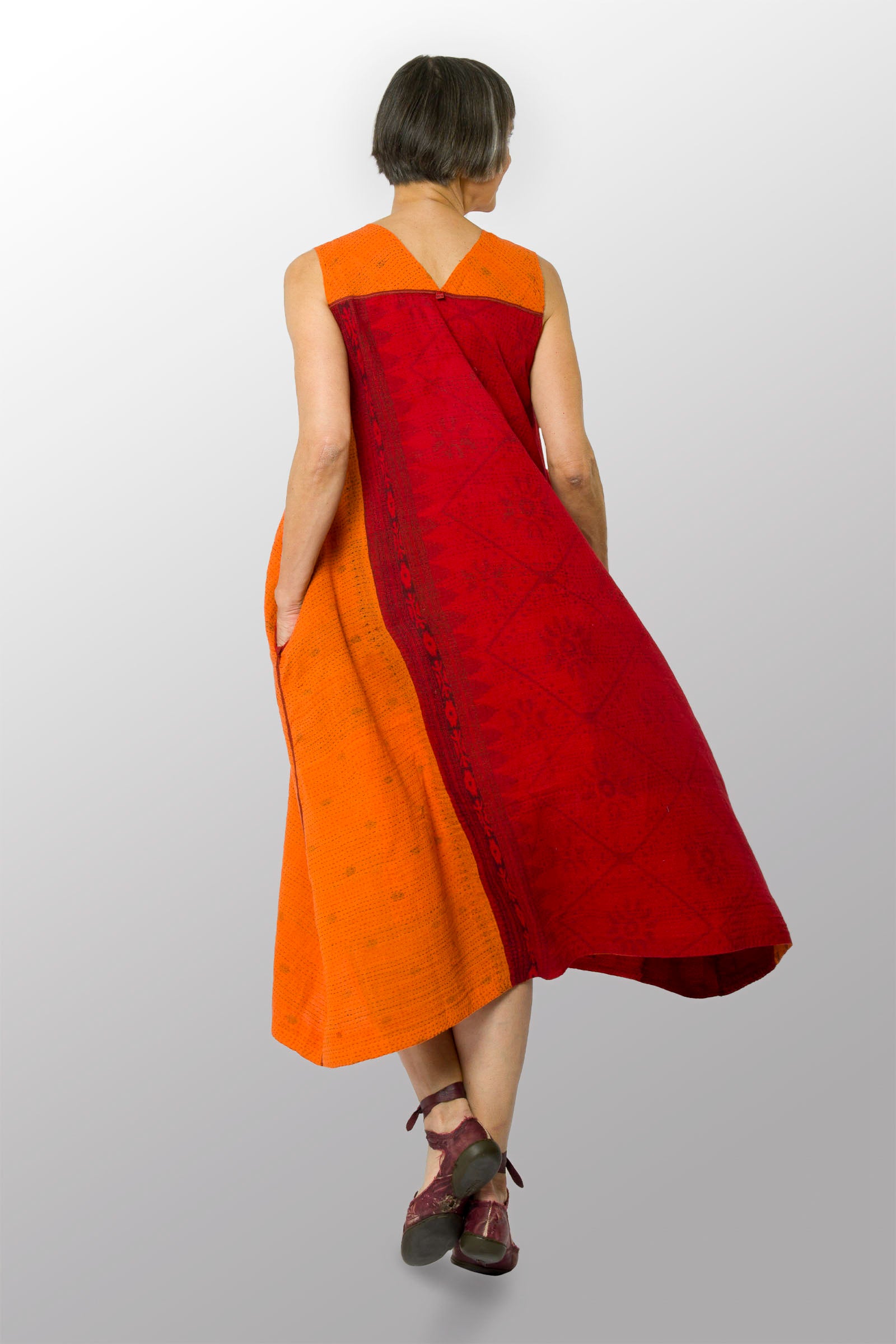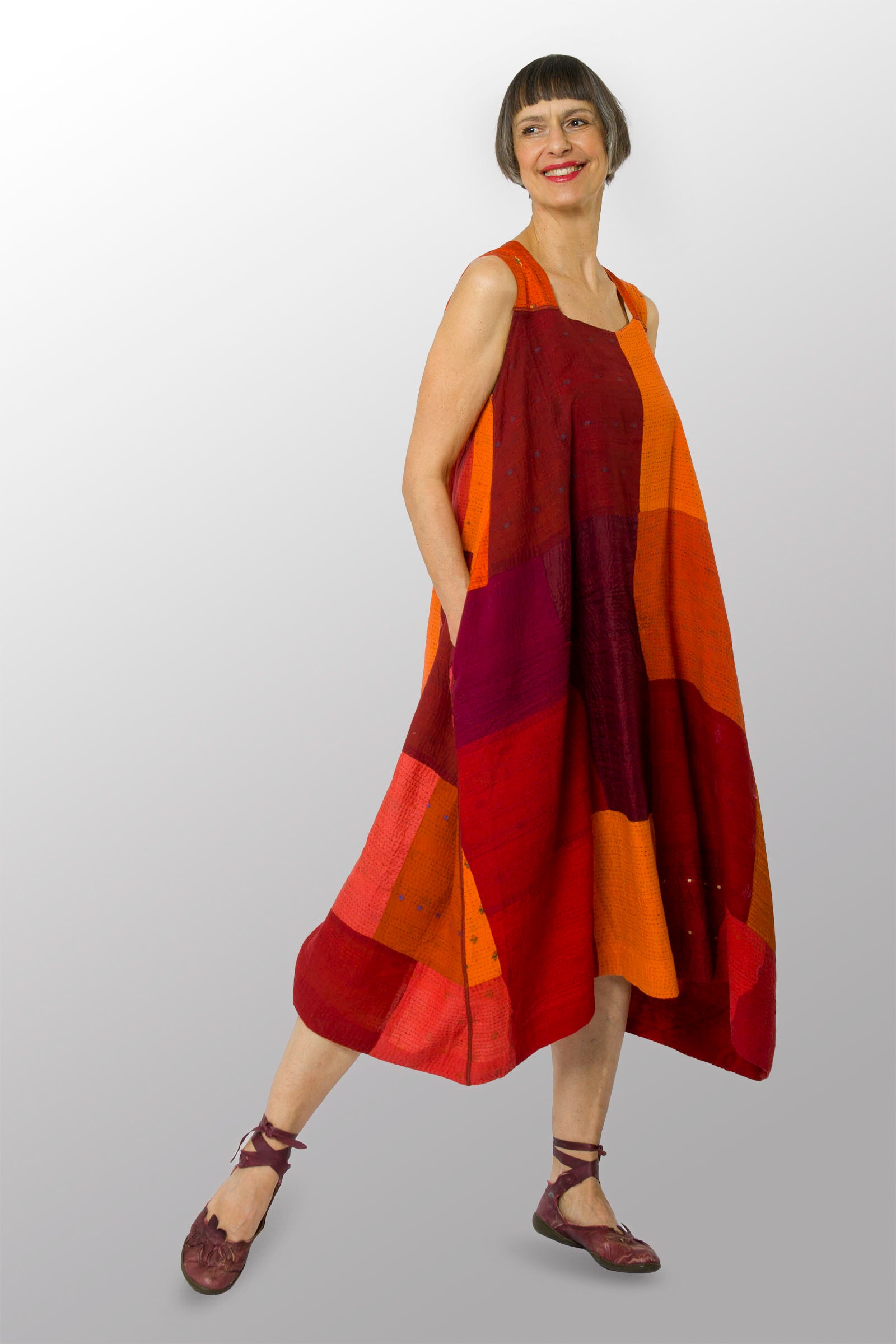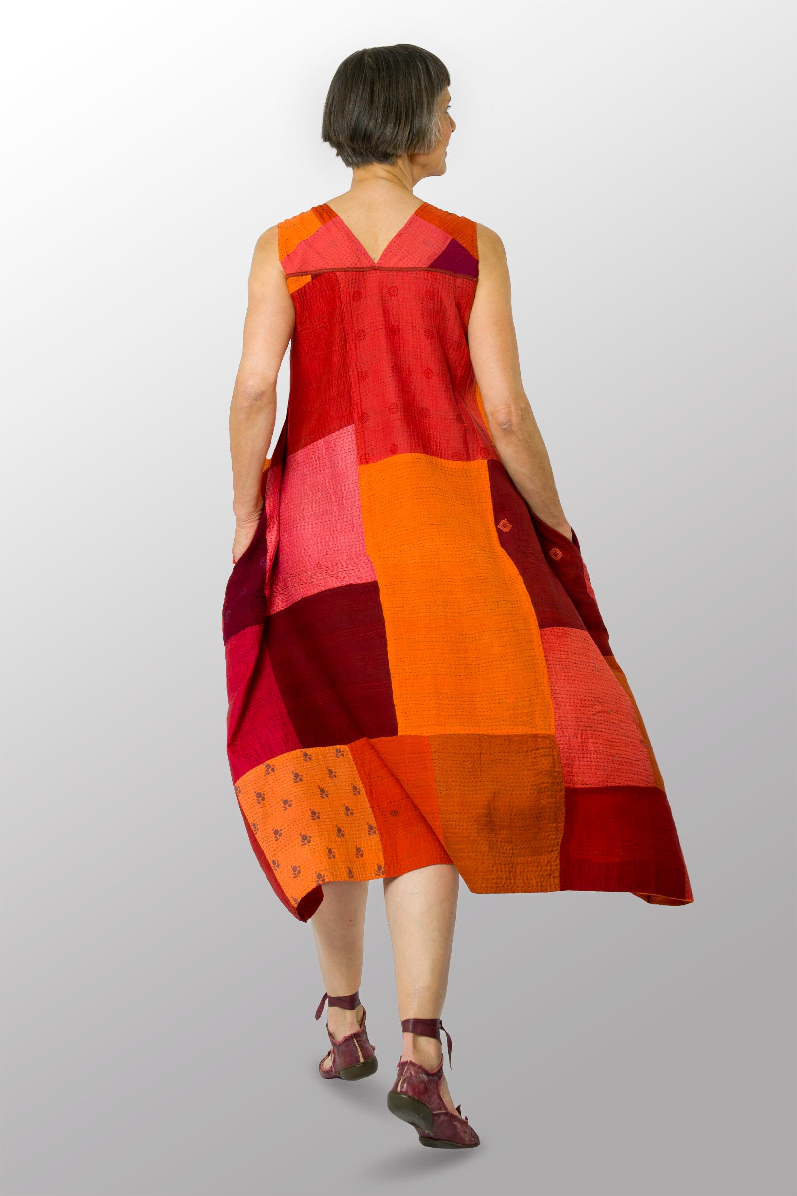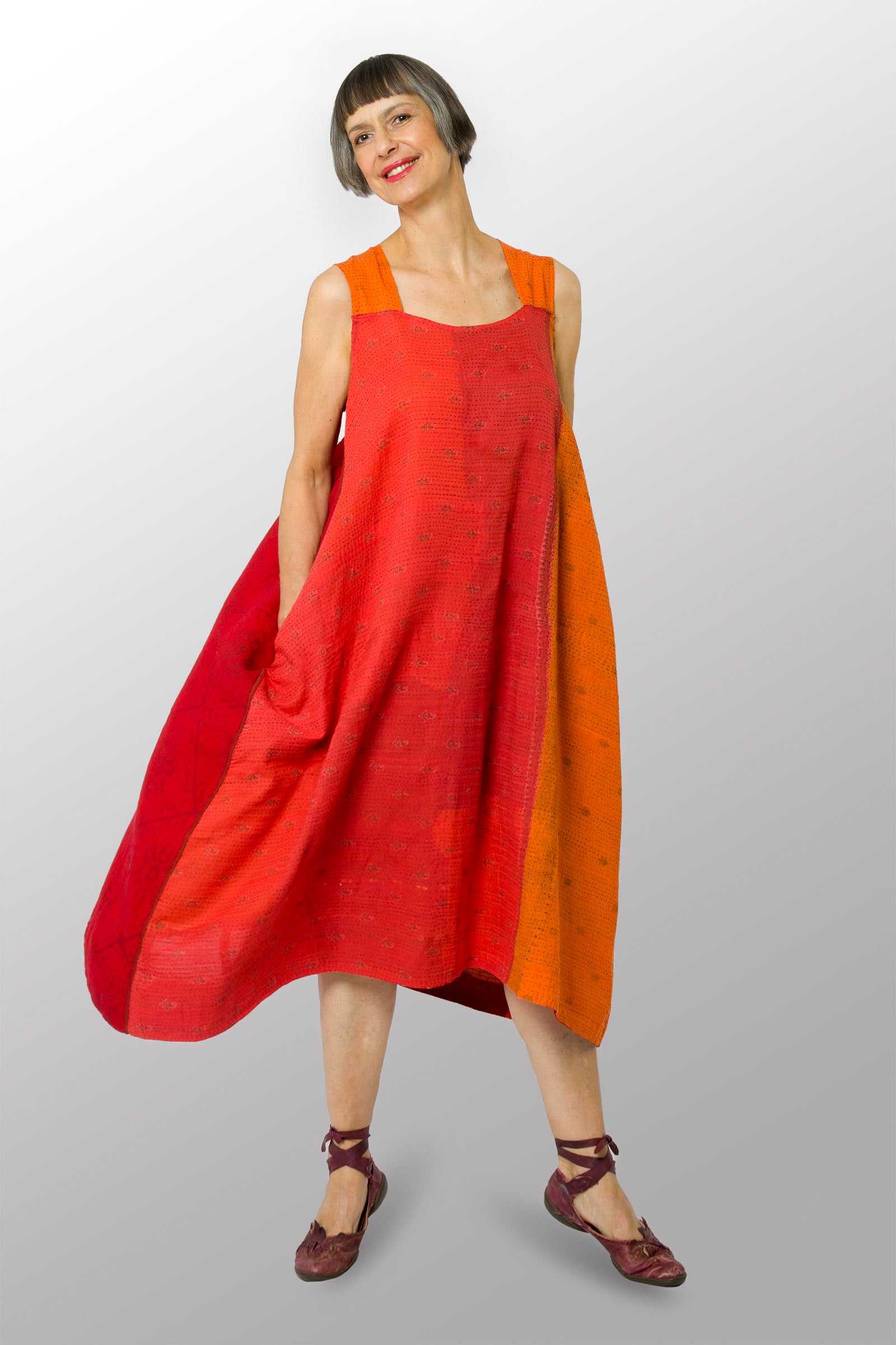 COTTON SILK SW PATCH OMBRE KANTHA TENT DRESS - wo2413-org -