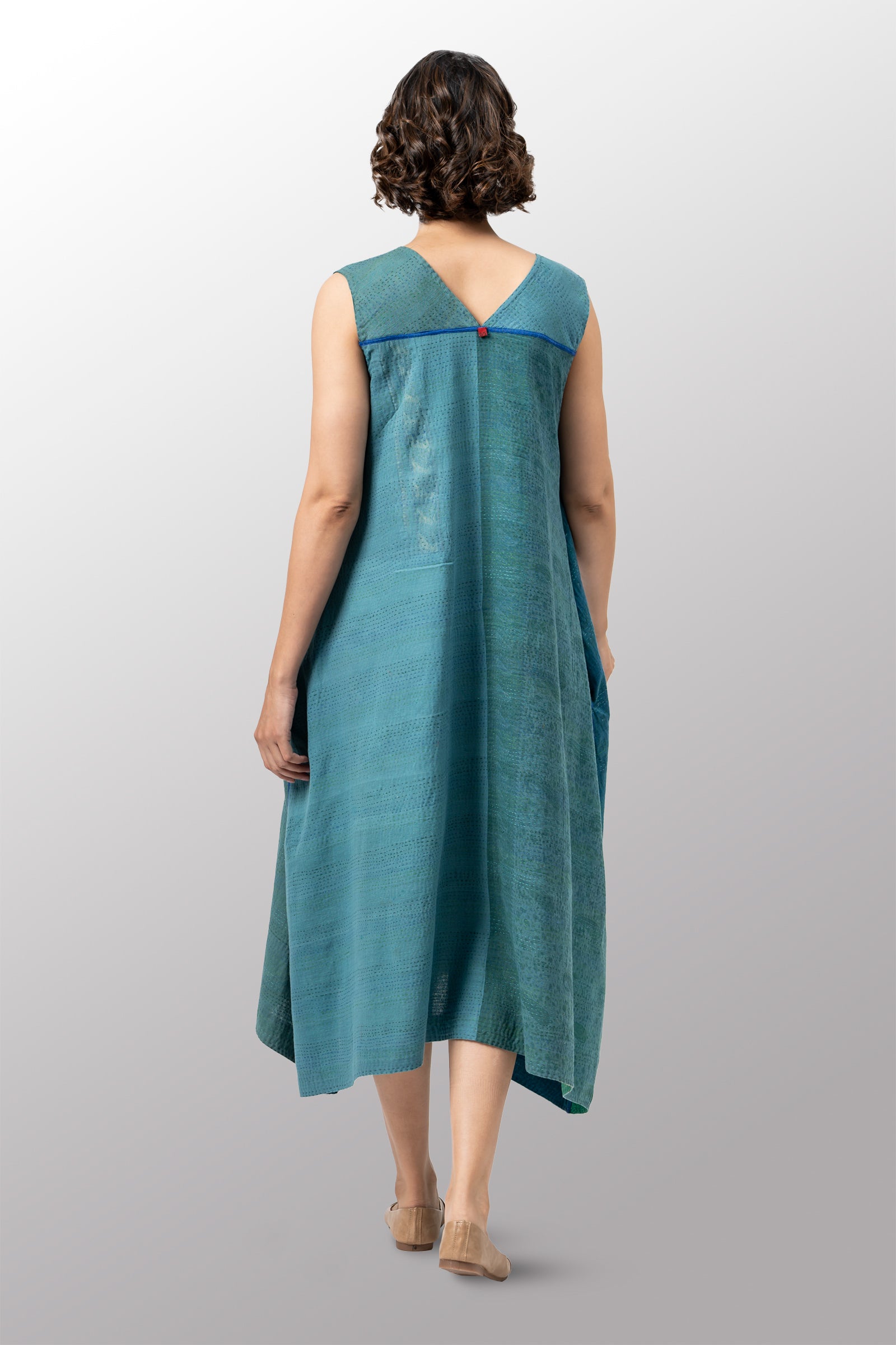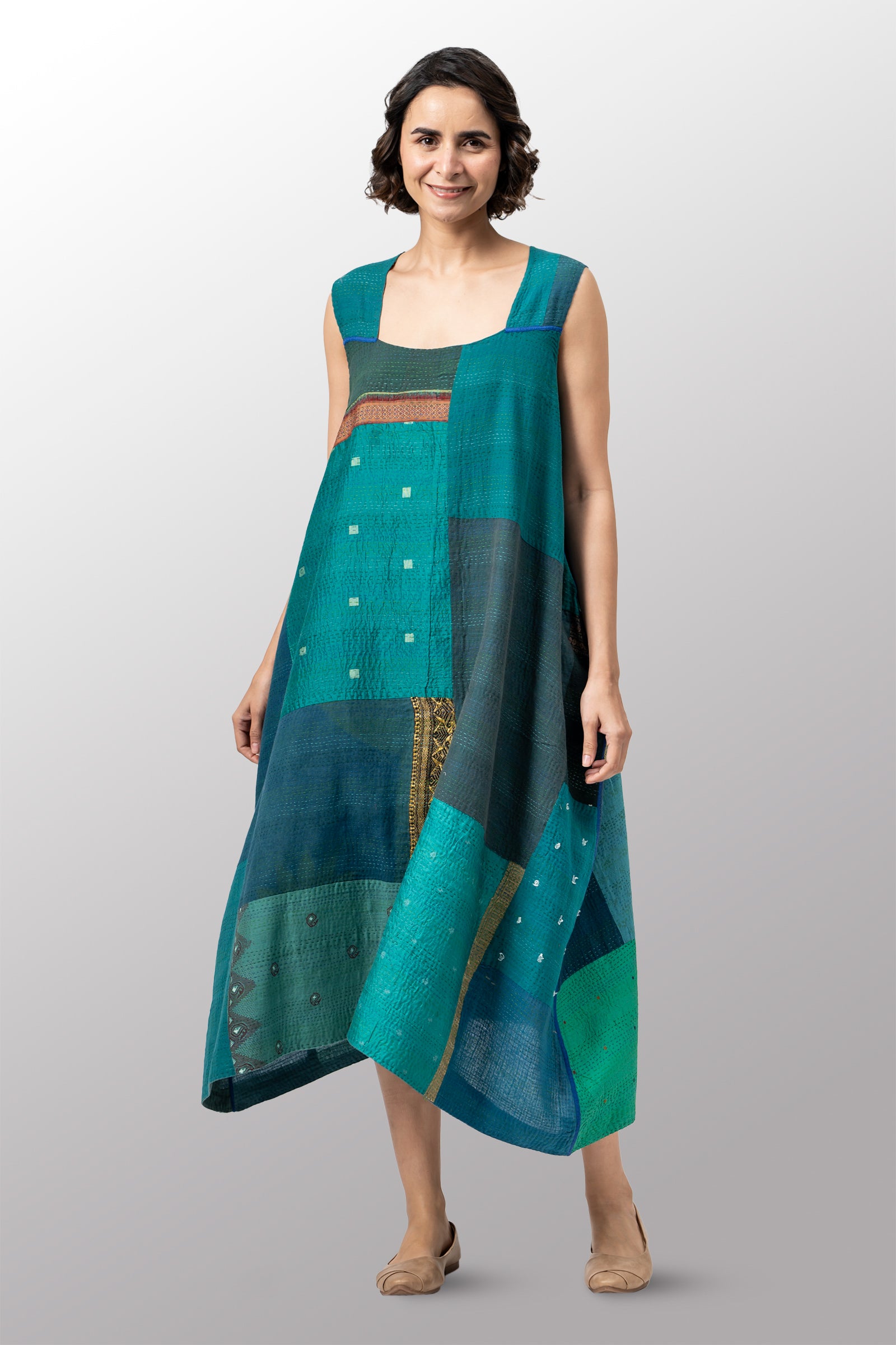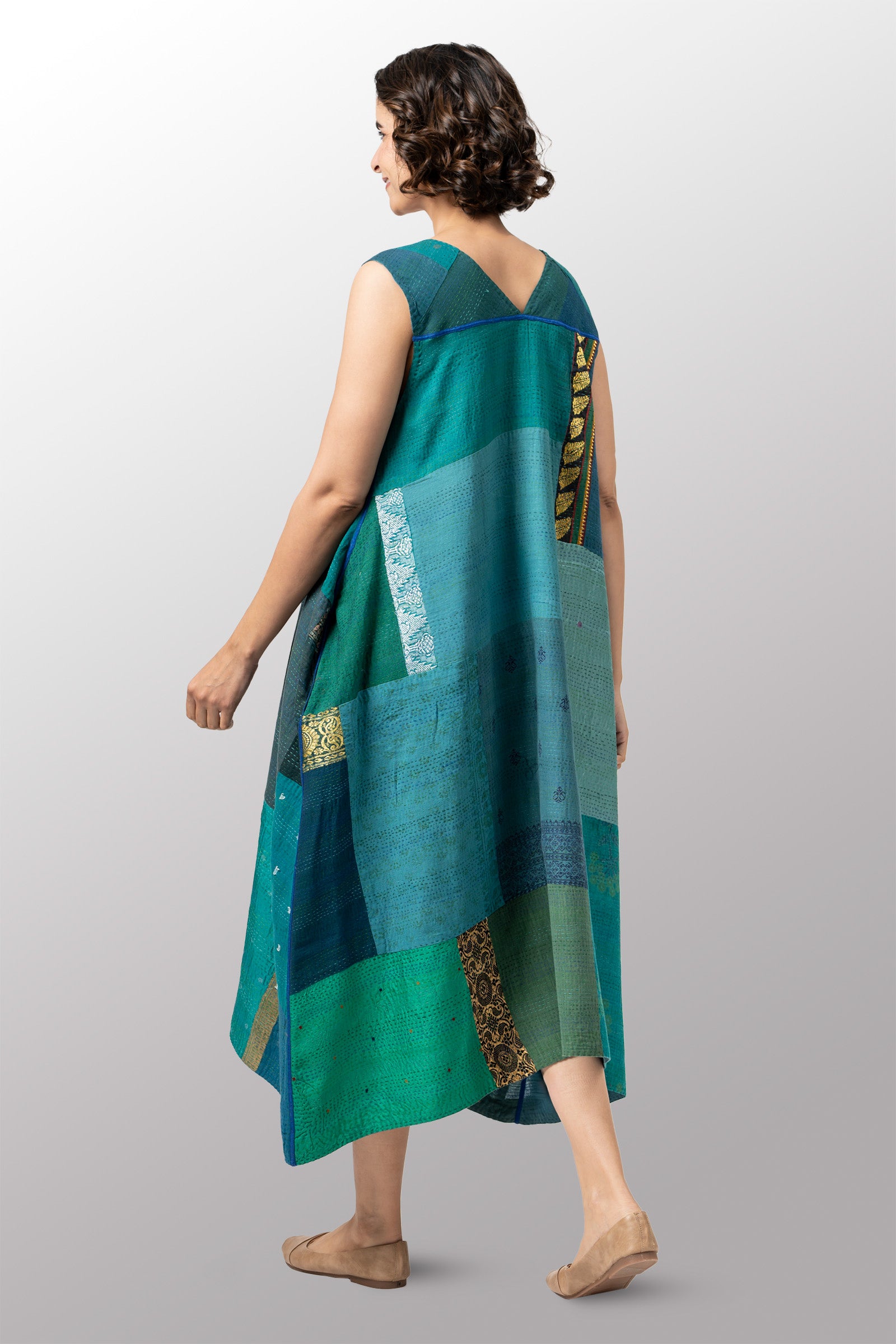 COTTON SILK SW PATCH OMBRE KANTHA TENT DRESS - ws2413-tel -