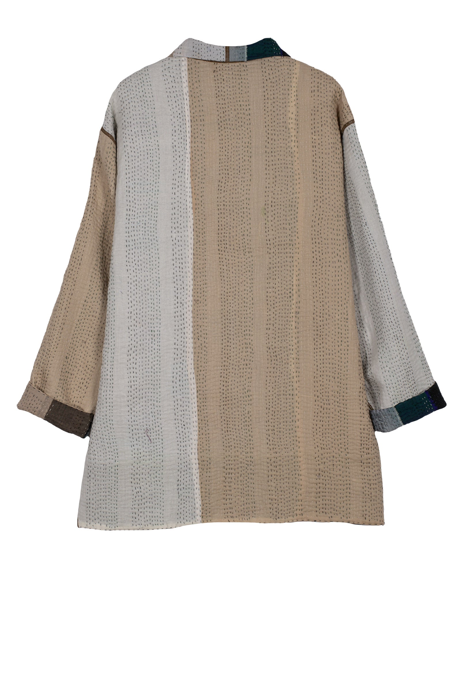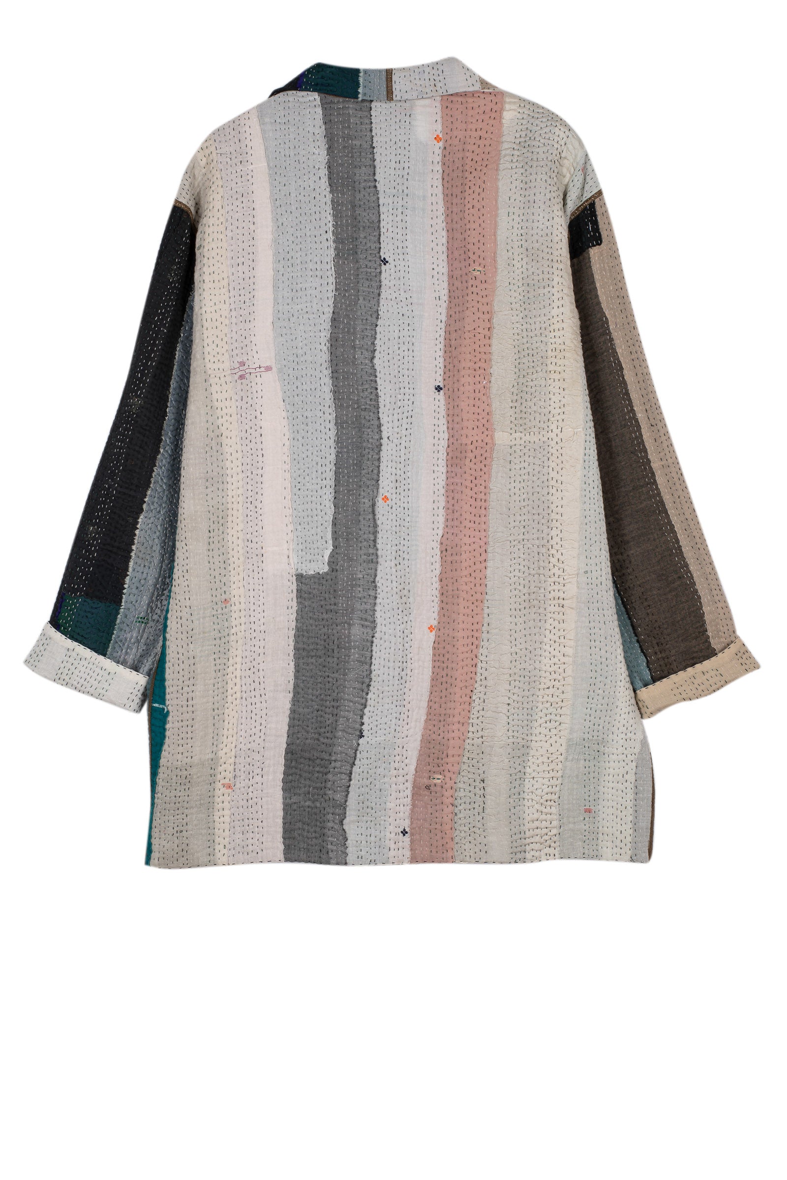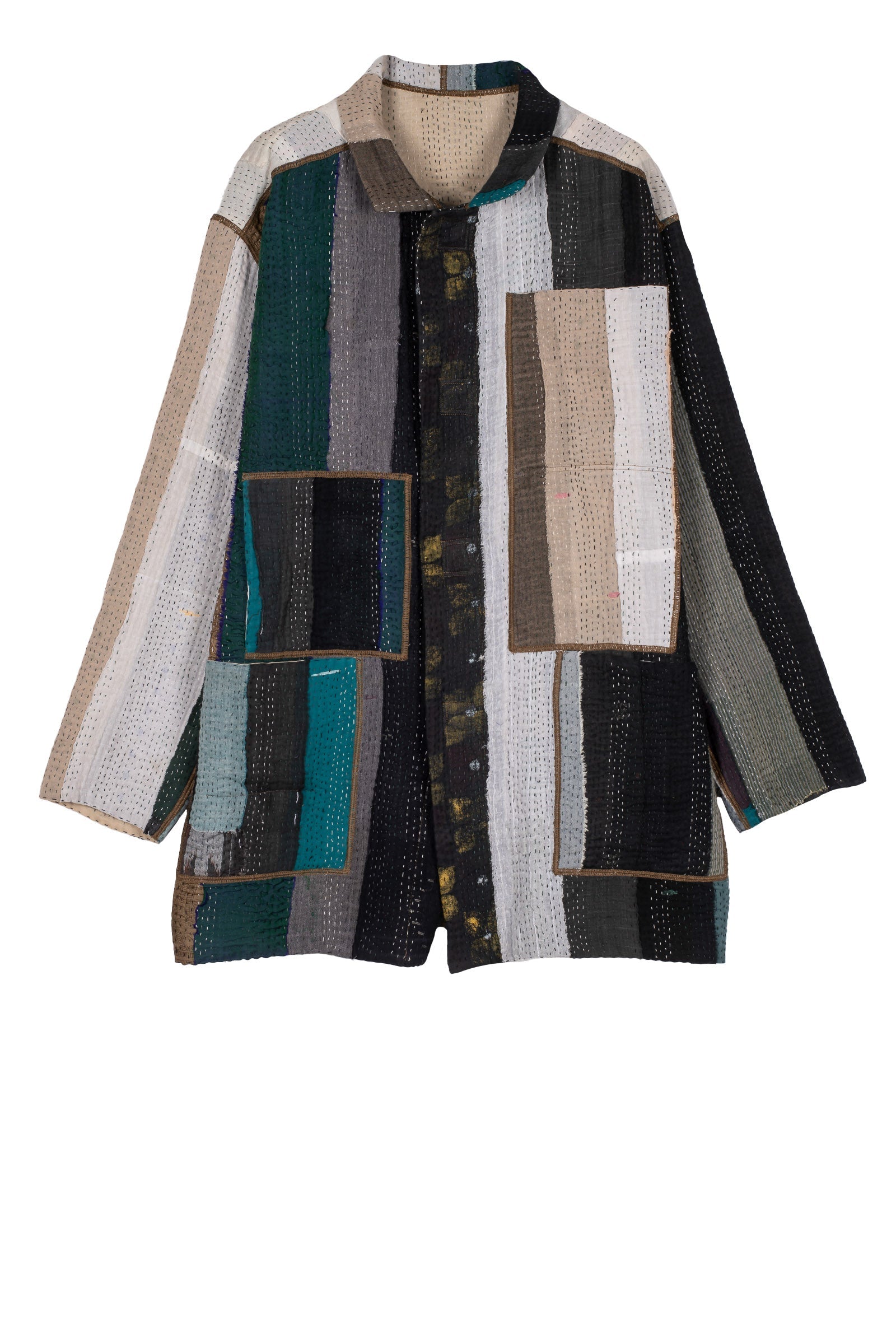 COTTON STRIPE PATCH KANTHA OVERSIZED MINI COAT - cs4332-grn -