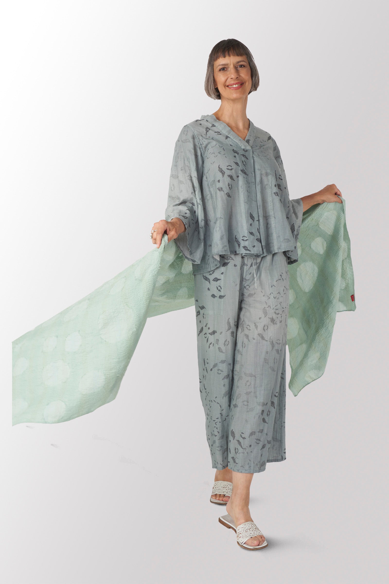 CUT THROUGH DOT AND HOLES KANTHA SHAWL MEDIUM - cd2802-grn -
