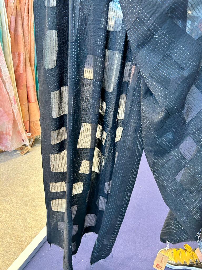 CUT THROUGH SQUARE AND HOLES KANTHA SHAWL MEDIUM - cu2802-blk -