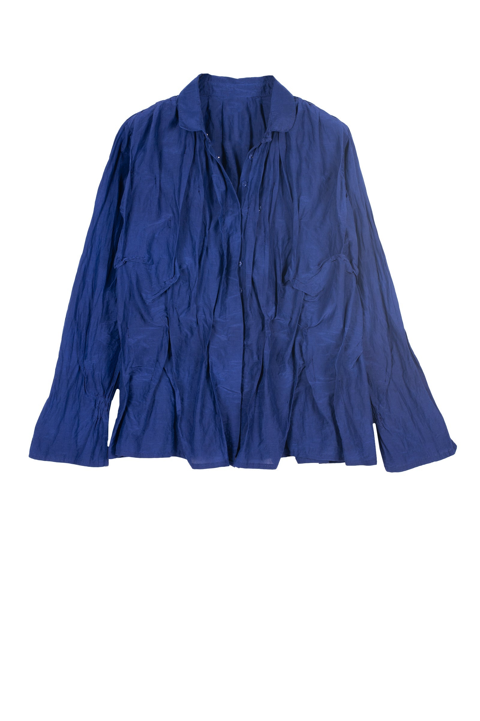 DYED COTTON SILK VOILE WAVY TUCKED SHIRT - dc1541-blu -