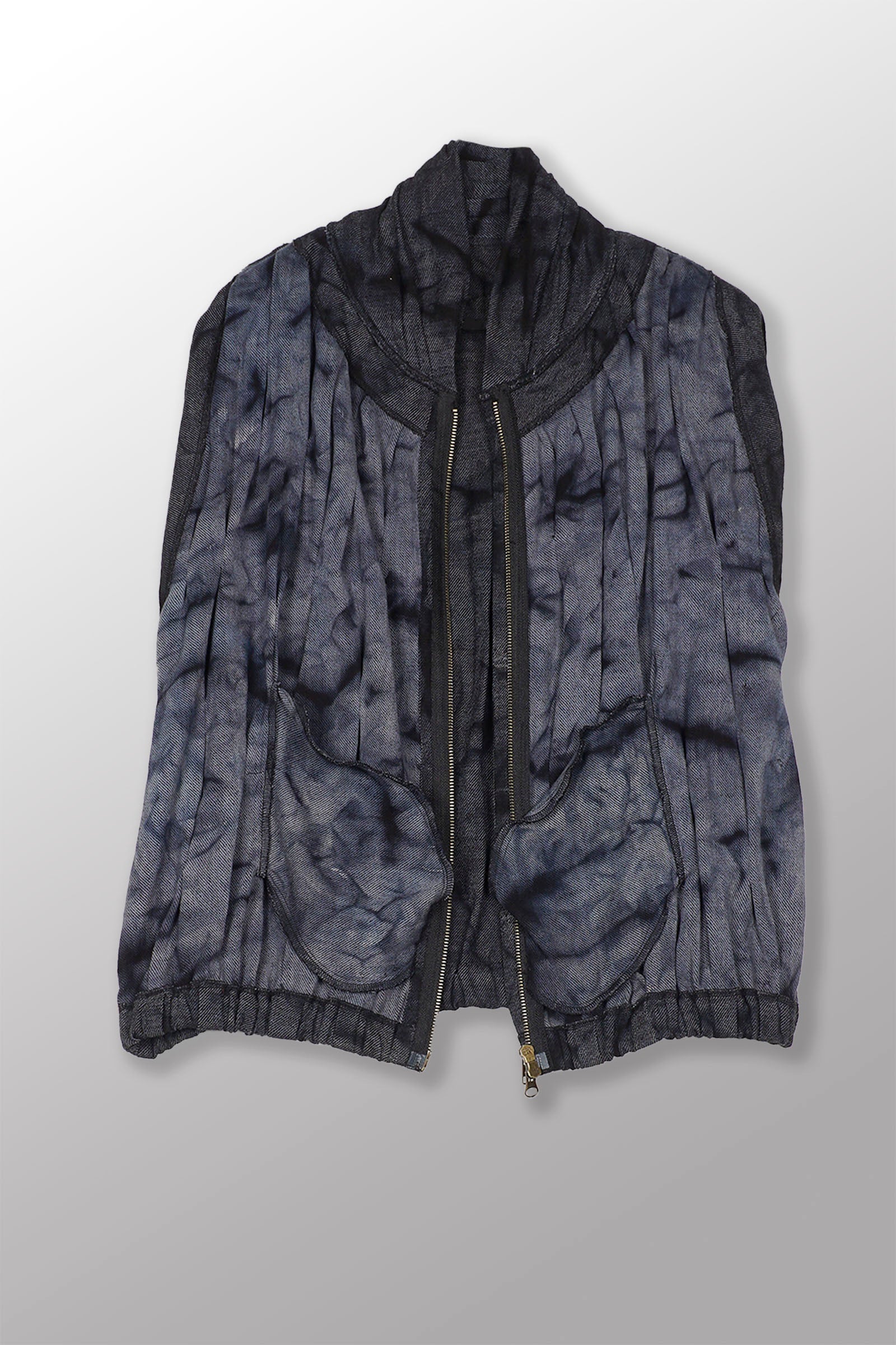 DENIM CRUMBLE SUN-DYE WAVY TUCK SCARF NECK VEST - cw1246-blk -