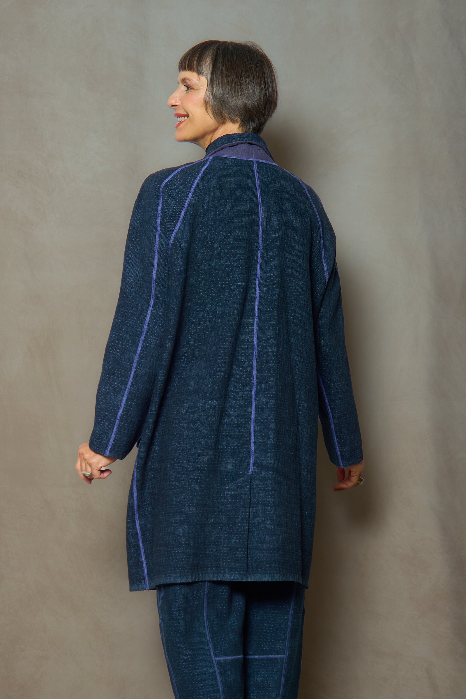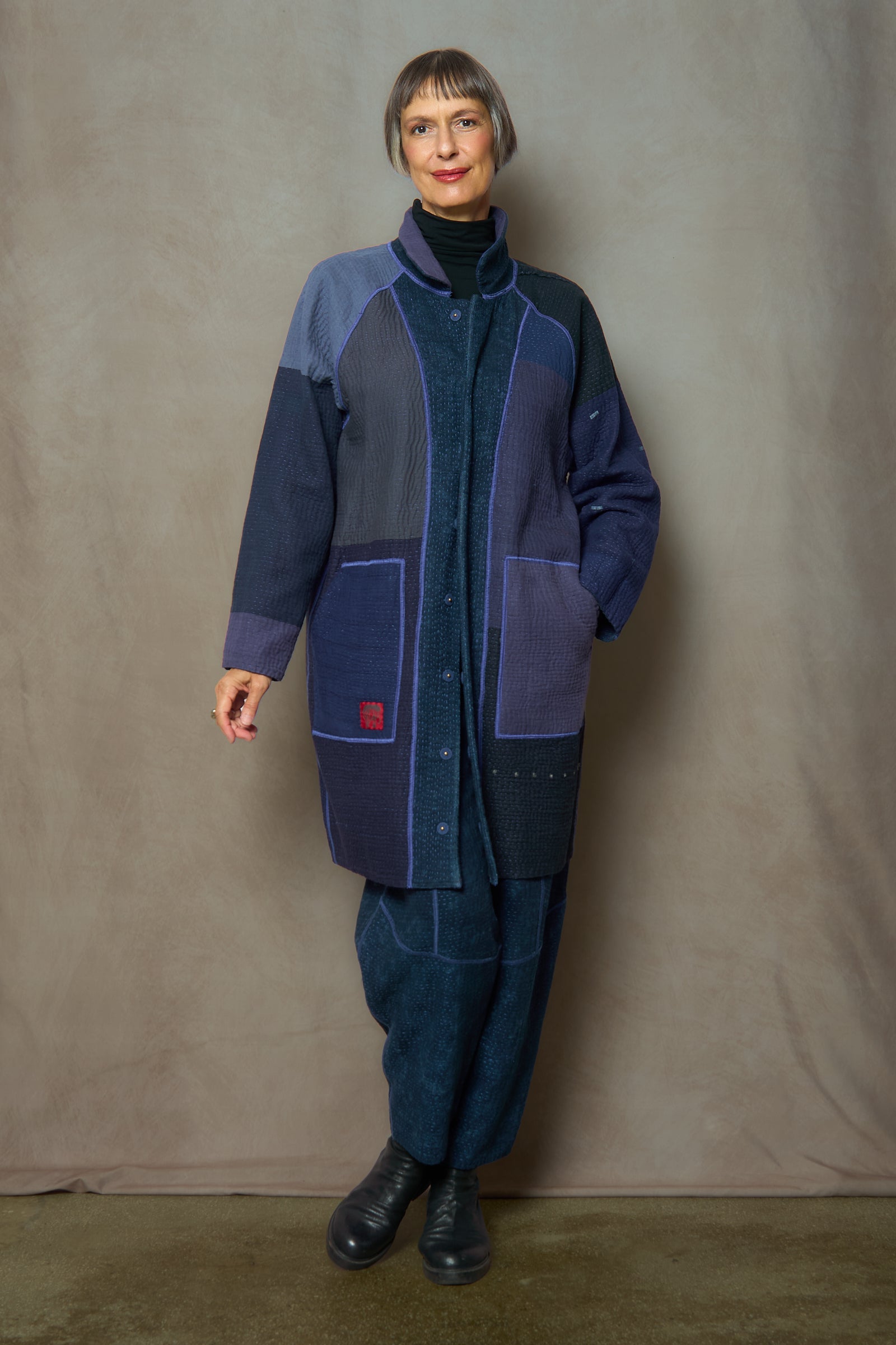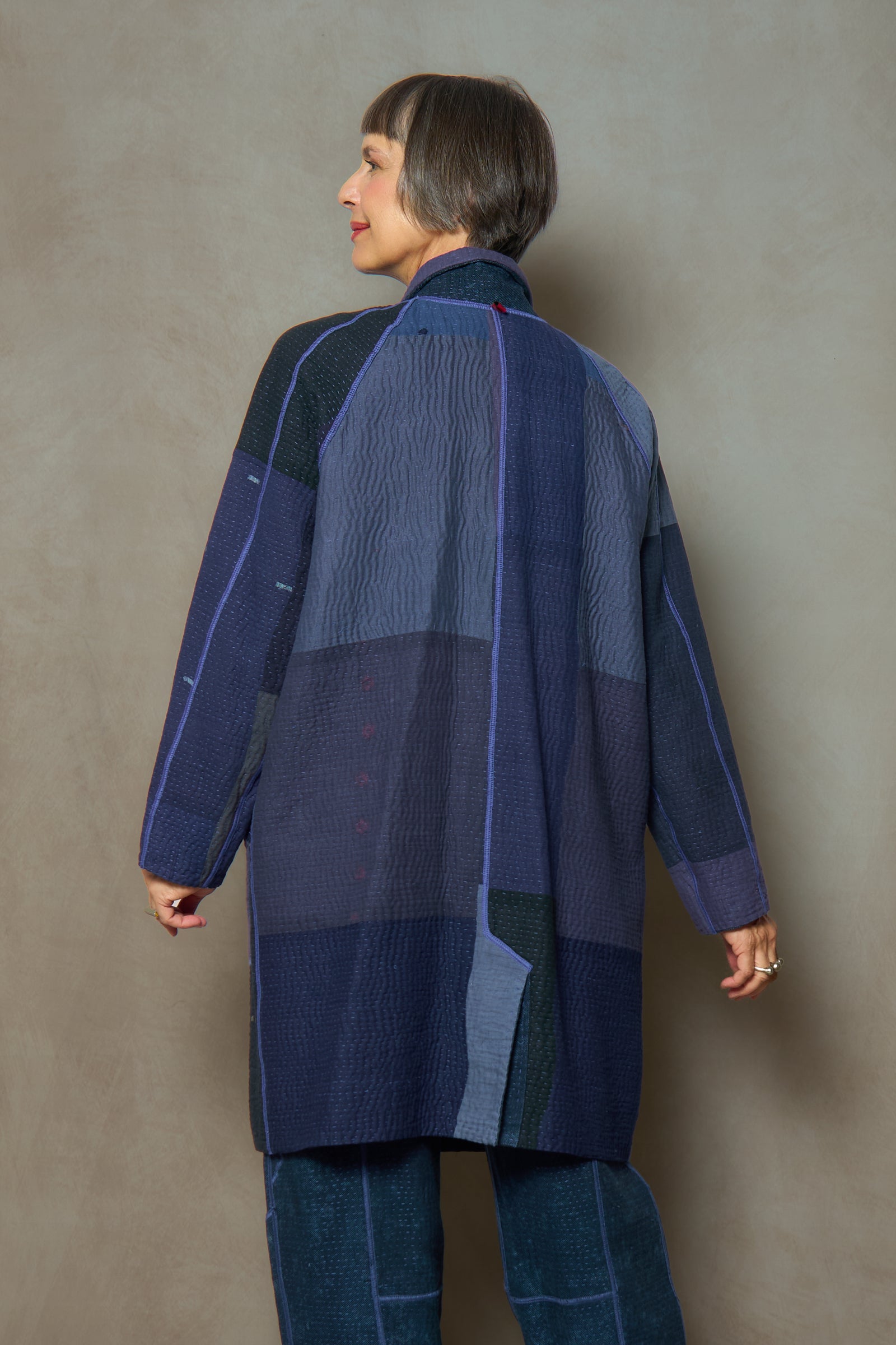 DENIM SUN-DYE KANTHA NEW RAGLAN SLEEVE COAT - ds3353-nvy -