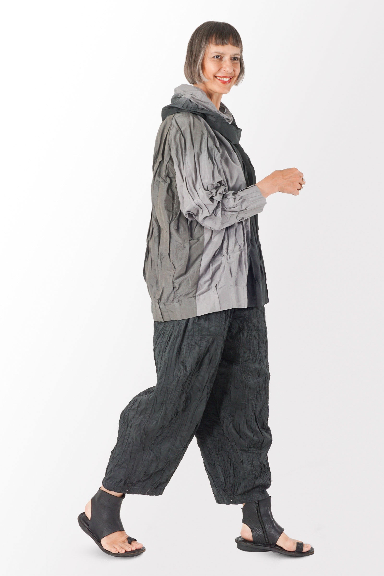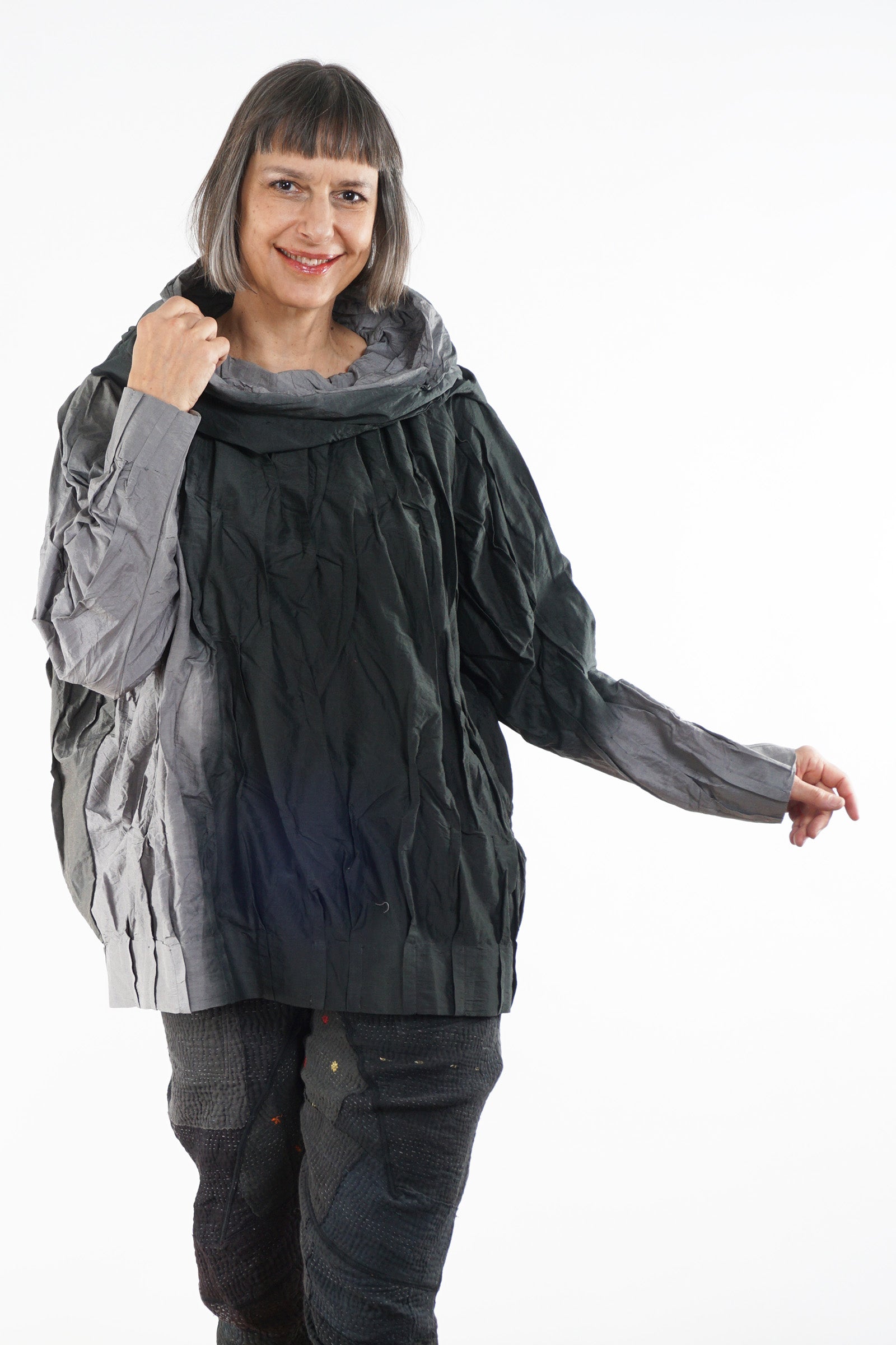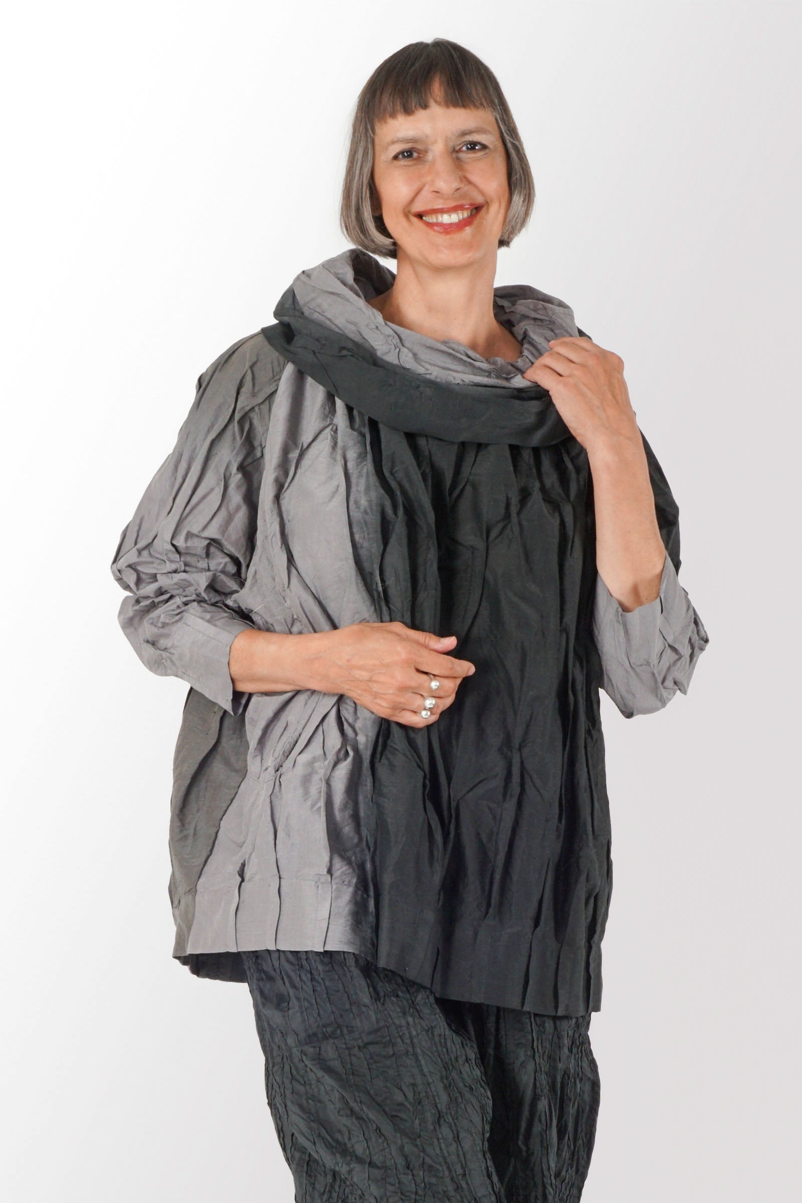DYED COTTON SILK HEAVY VOILE WAVY TUCK RAGLAN TOP - dh1560-obk -