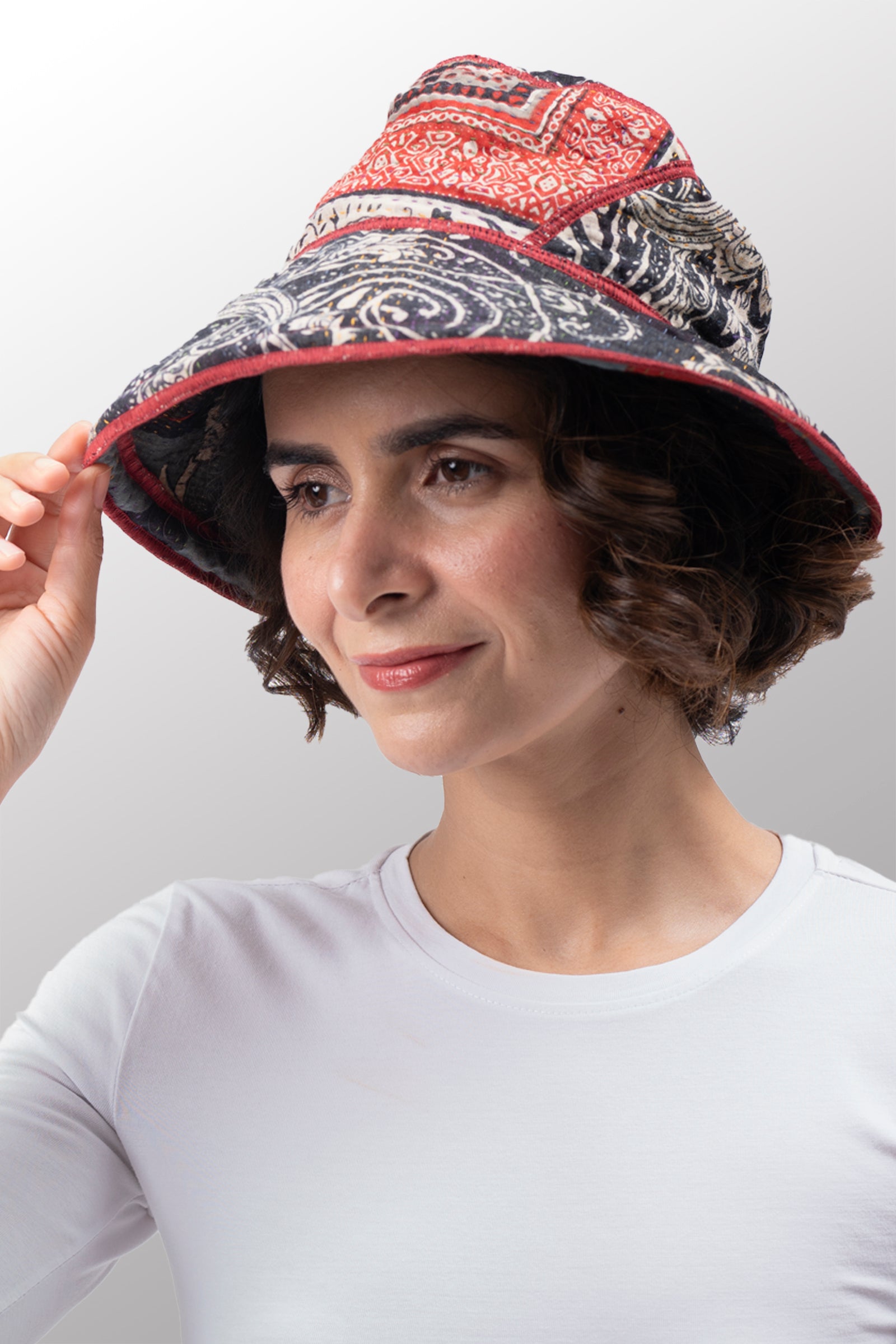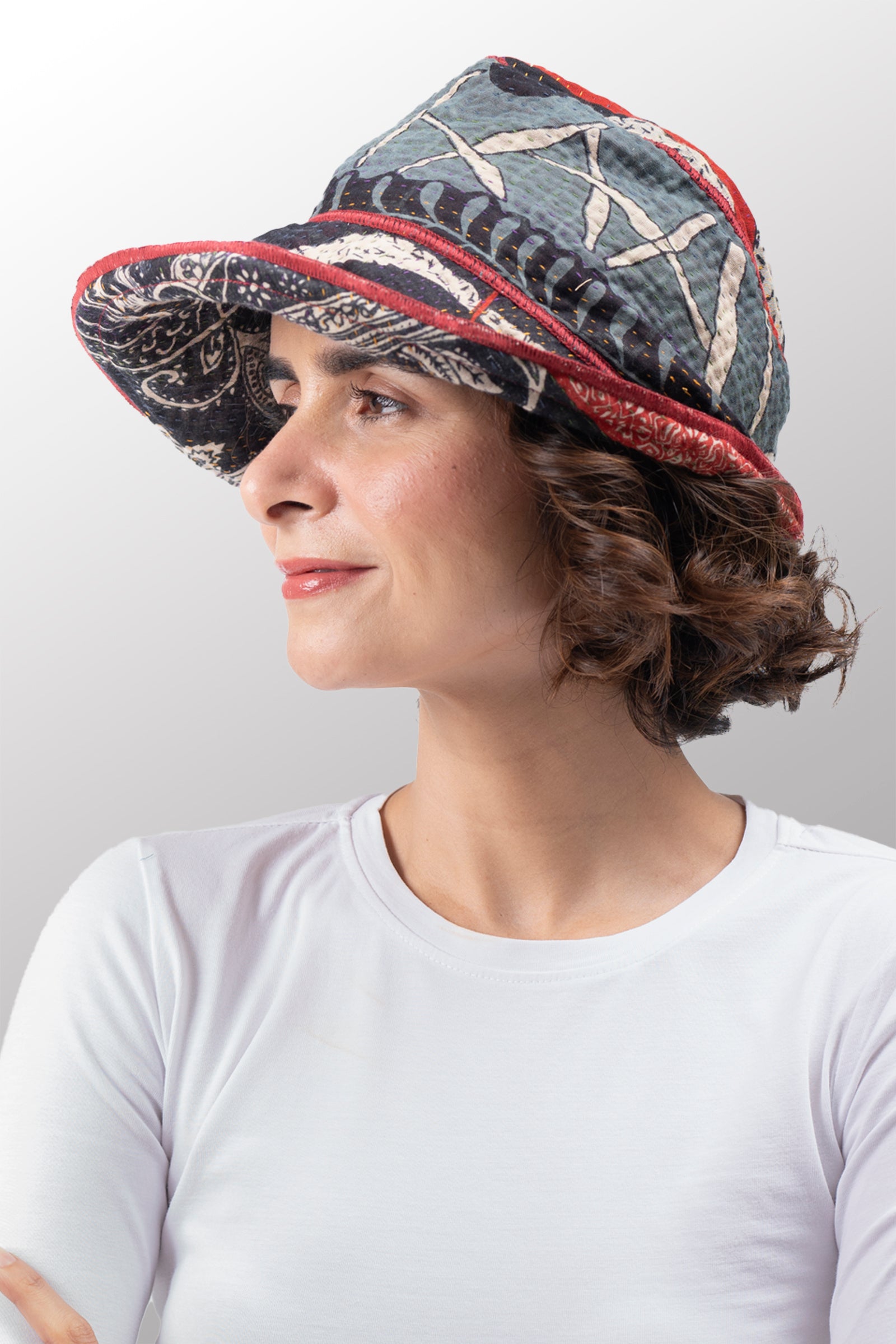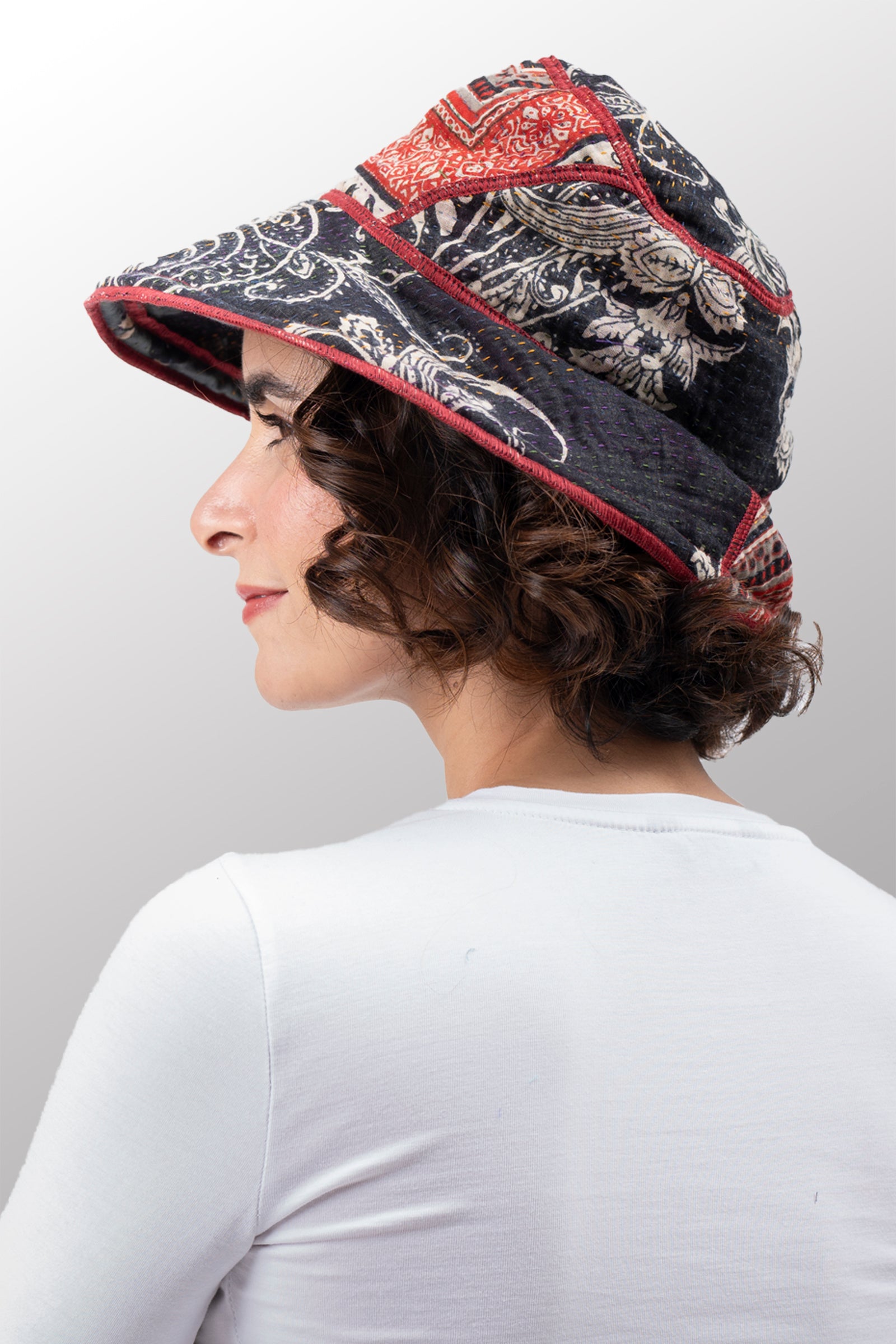 DOT & PAISLEY KANTHA CIRCULAR CUT BRIM HAT - dp4882-nvy -