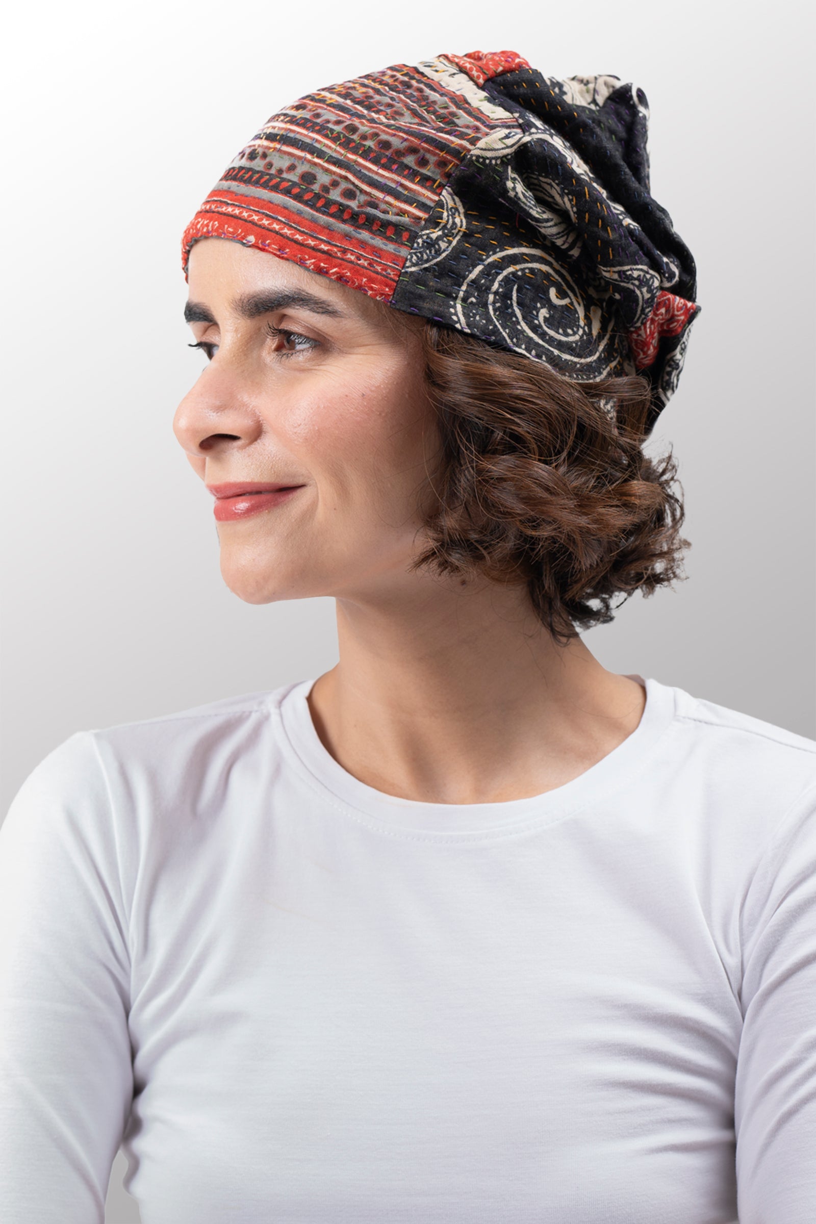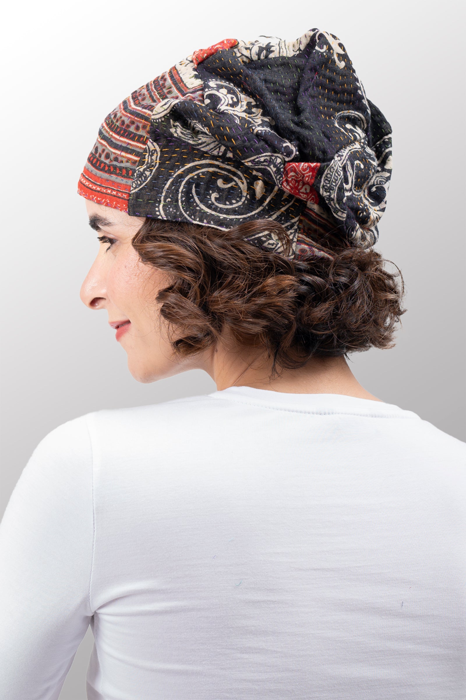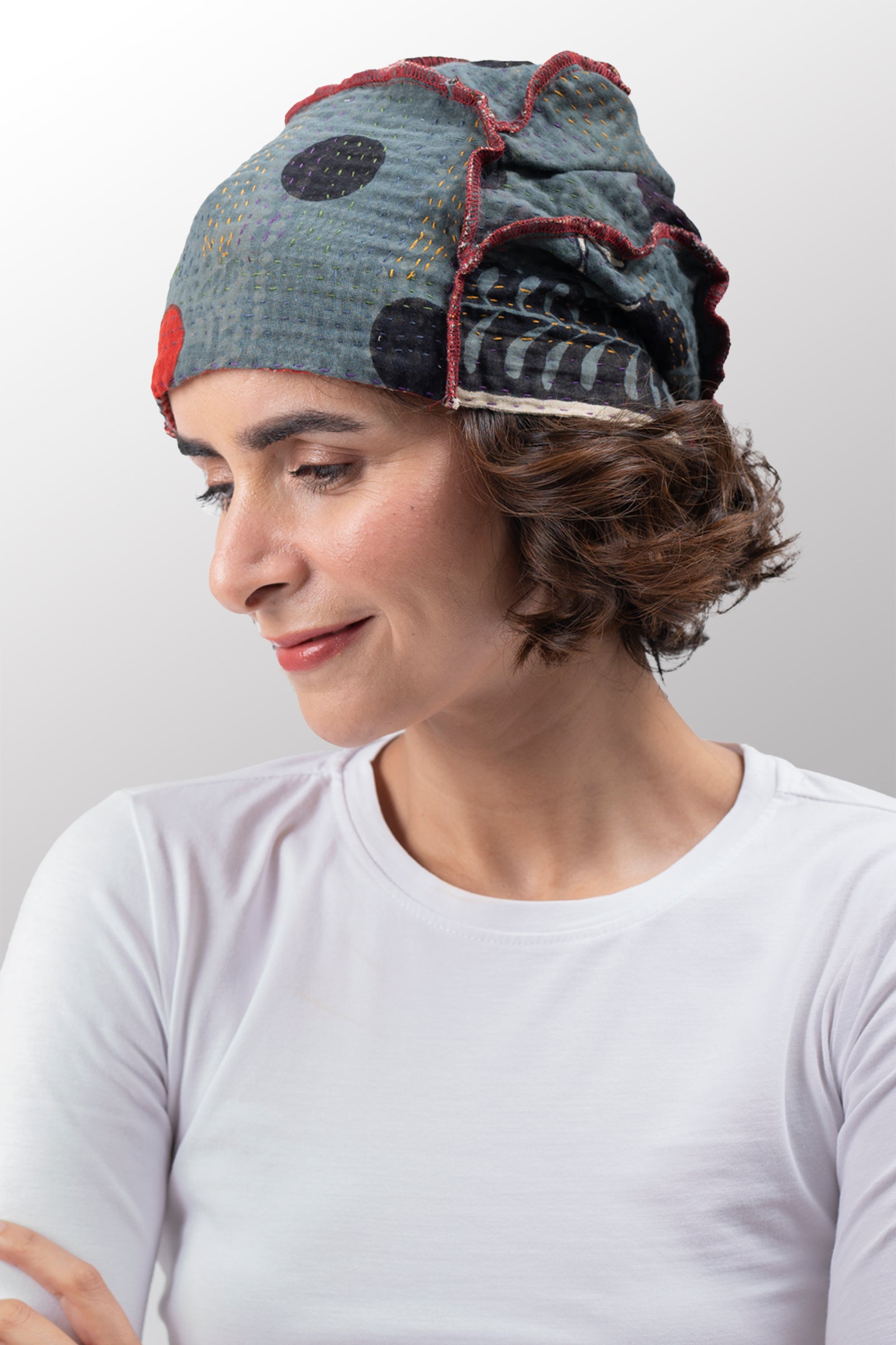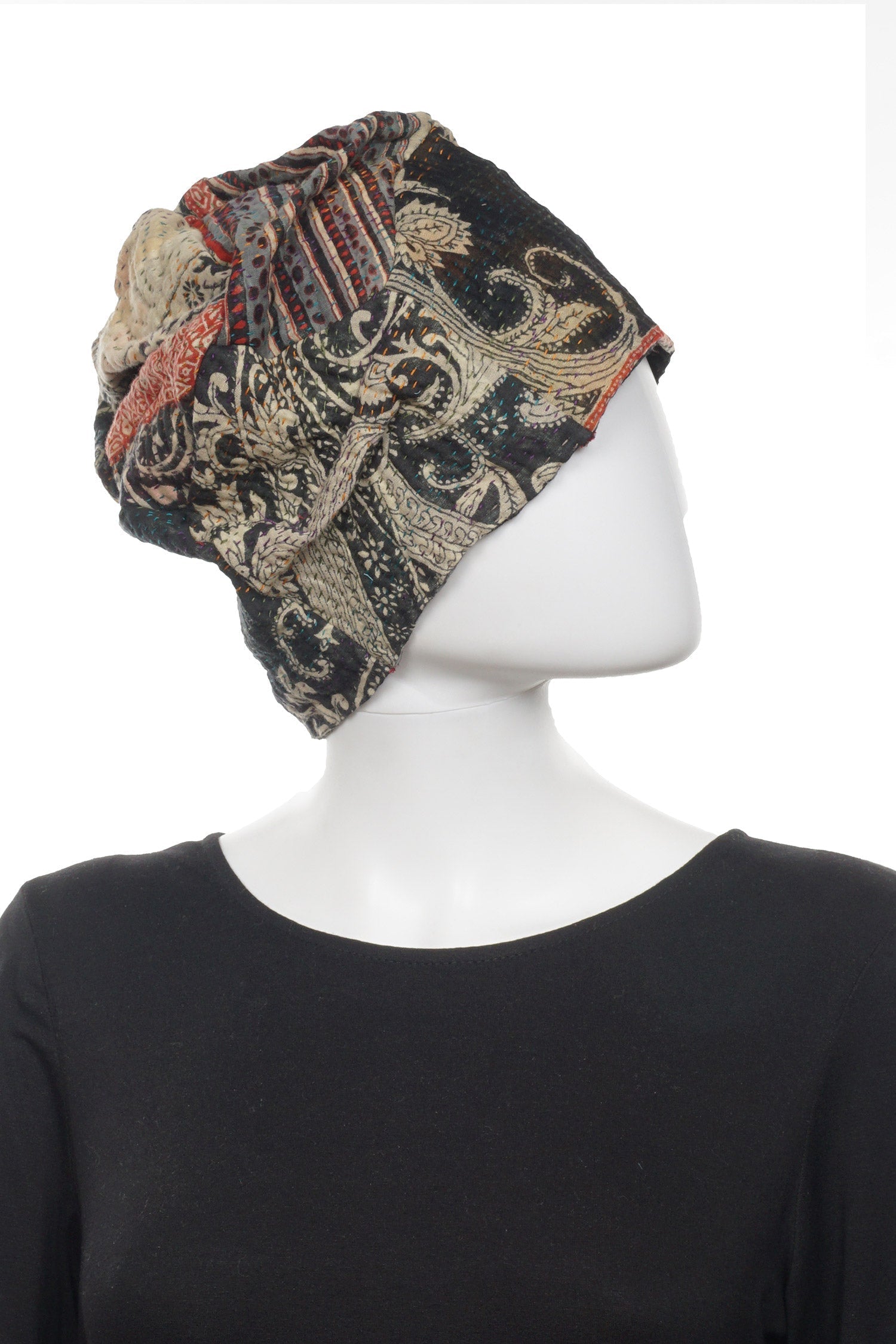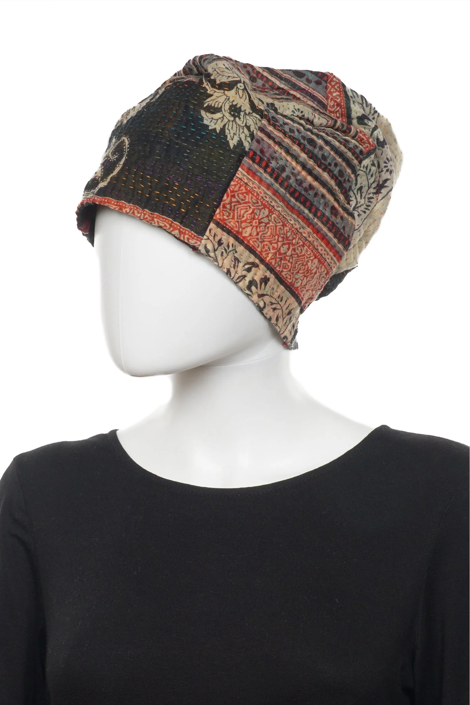DOT & PAISLEY KANTHA PATCHWORK HAT - dp4880-nvy -