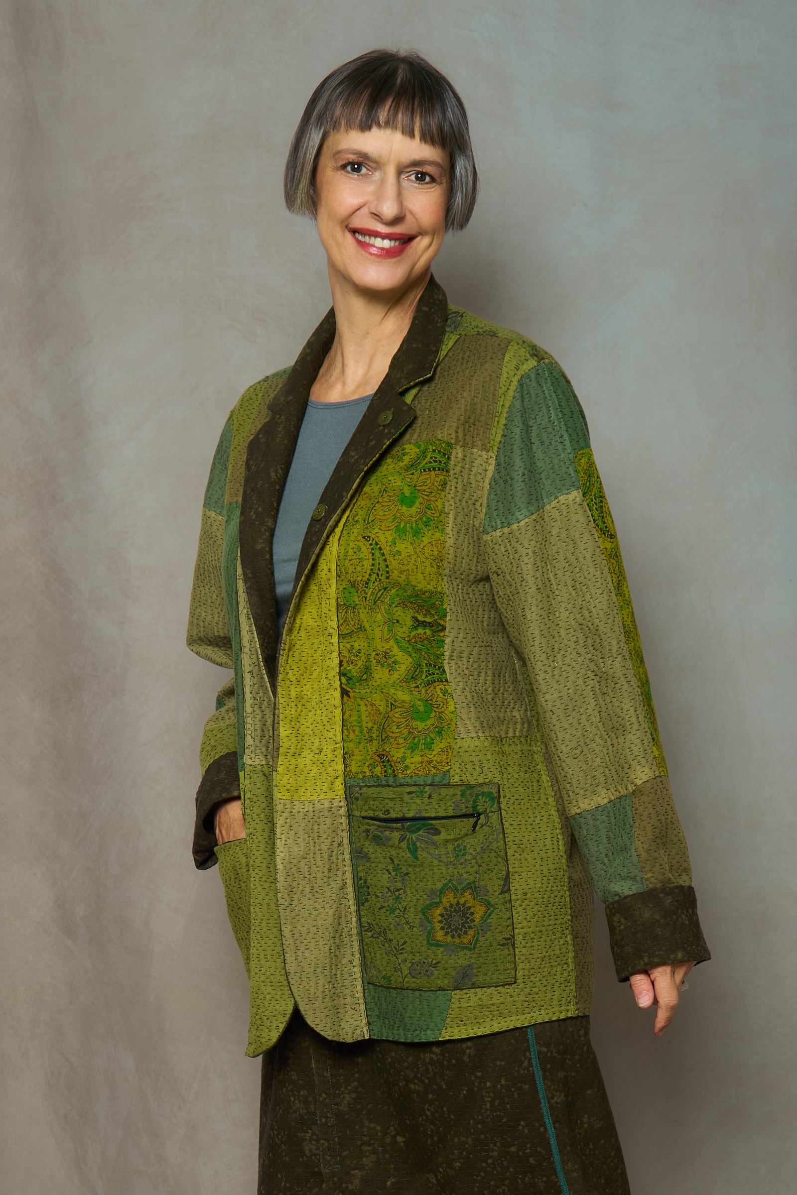 DUCK SUN DYE WITH PATCH KANTHA SIMPLE MEN'S JACKET - us2072-grn -