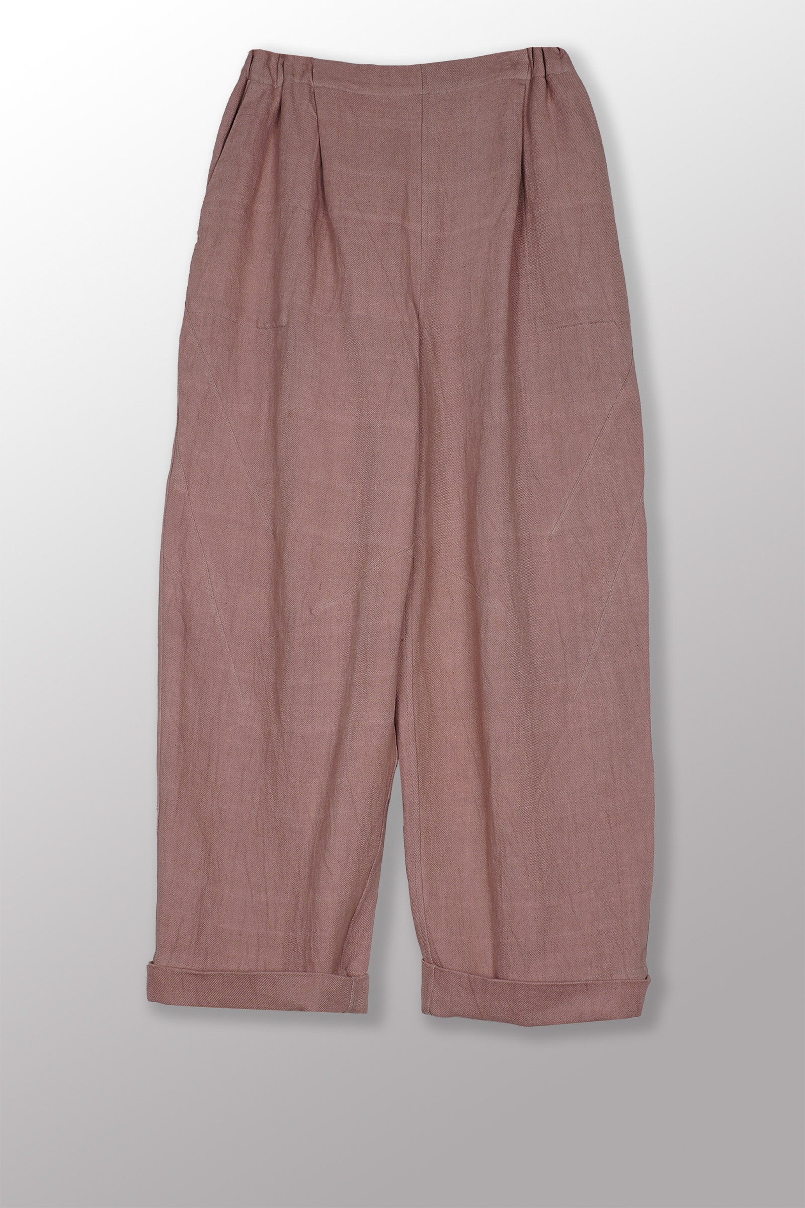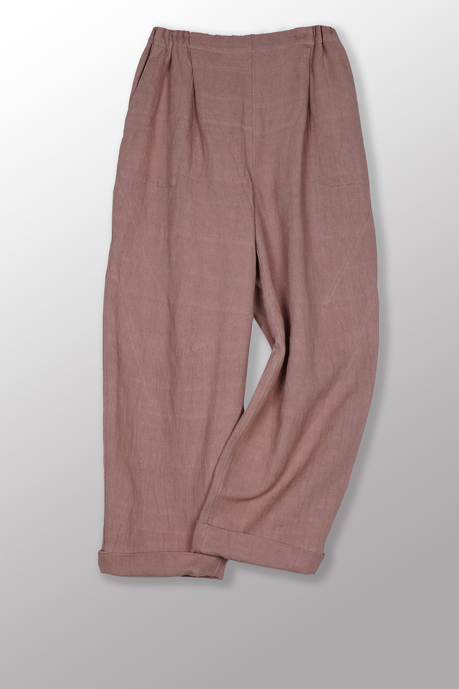 DYED COTTON LINEN TWILL KNEE DARTS PANTS - tl1667-ntl -