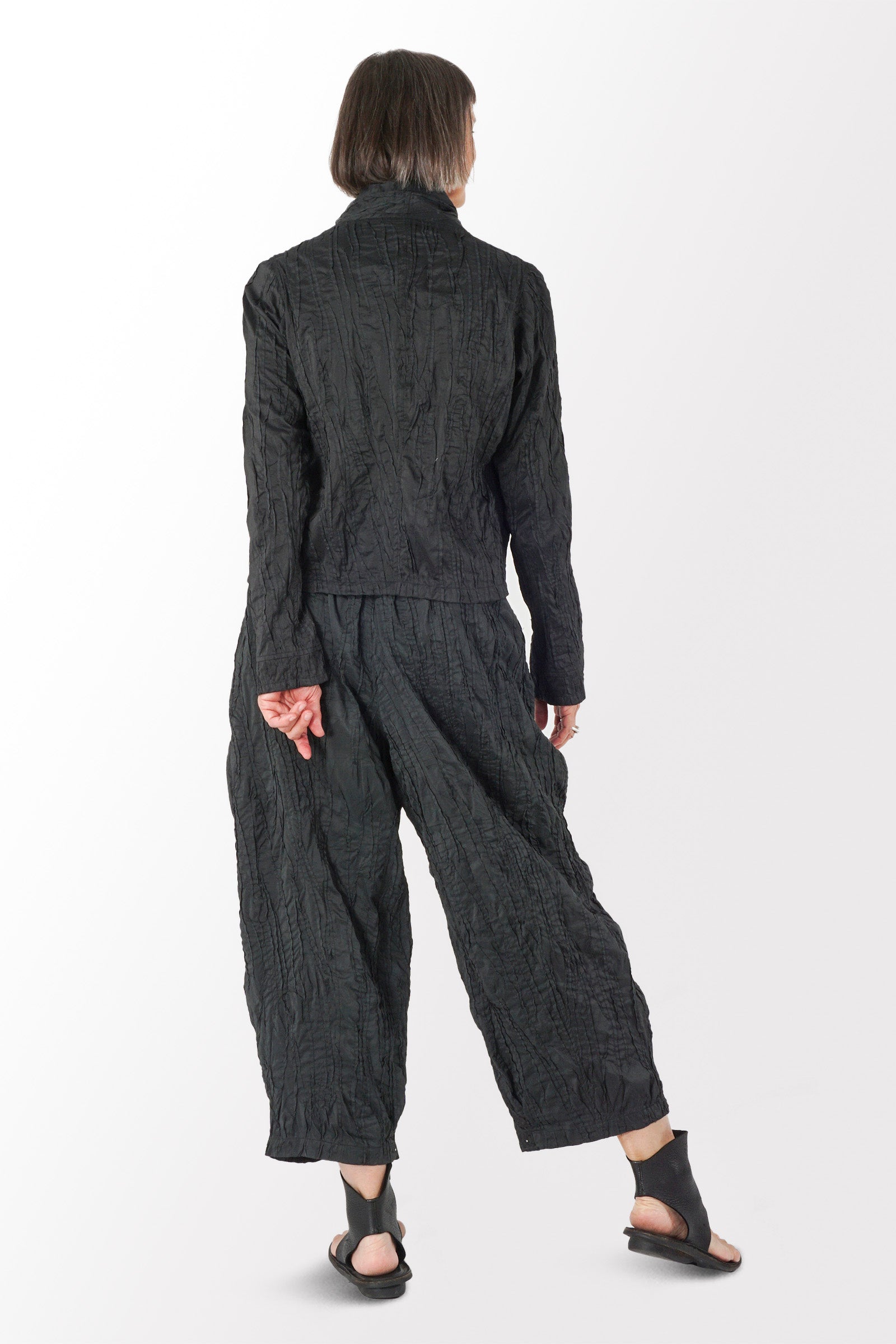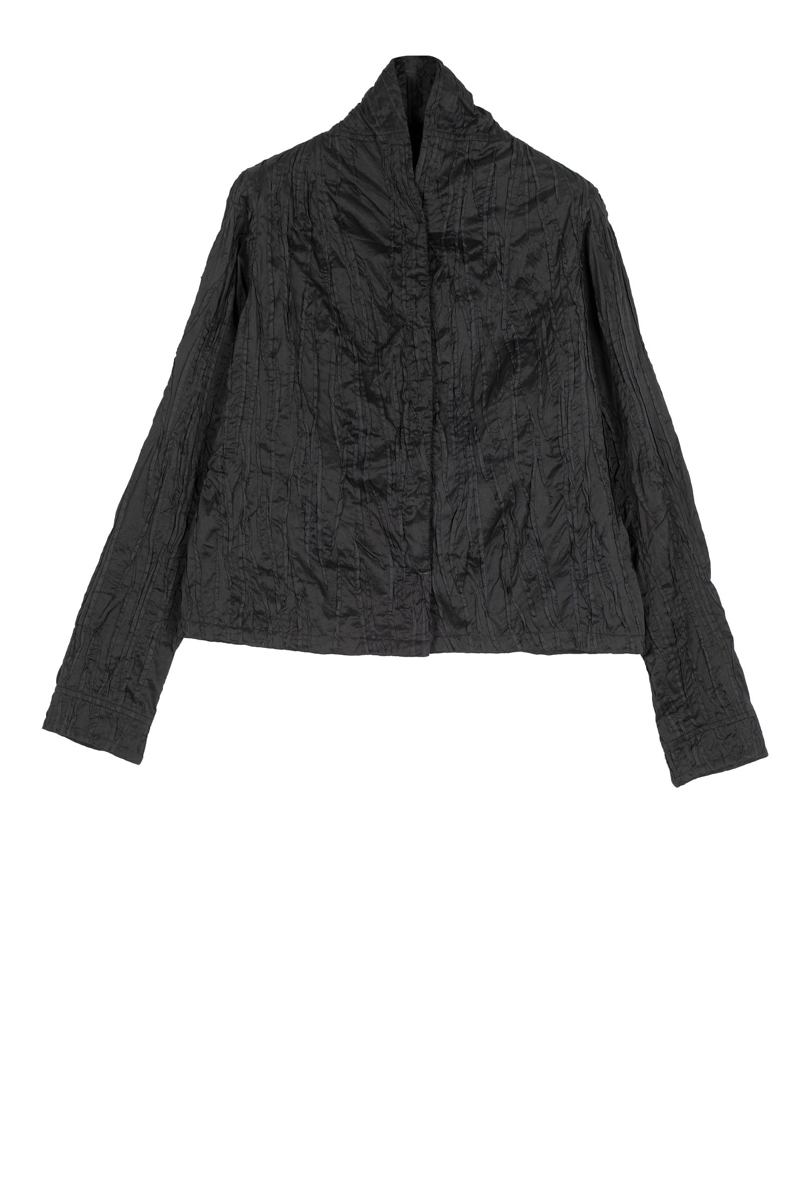 DYED COTTON SILK HEAVY VOILE RANDOM TUCK HIGH-NECK BLOUSE - dr1563-blk -