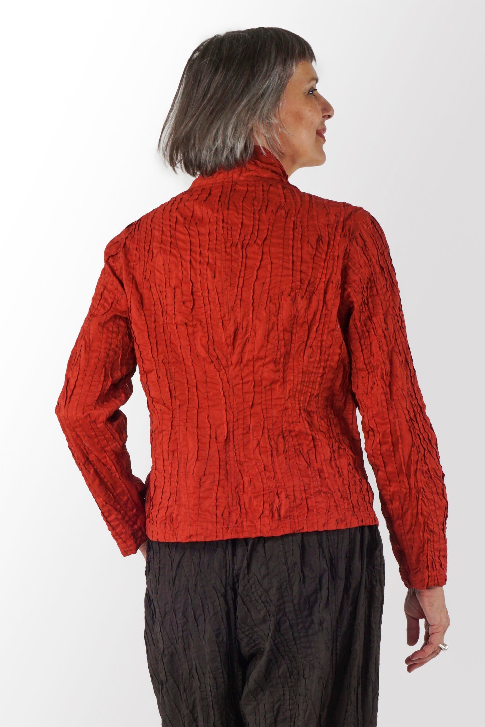 DYED COTTON SILK HEAVY VOILE RANDOM TUCK HIGH-NECK BLOUSE - dr1563-red -