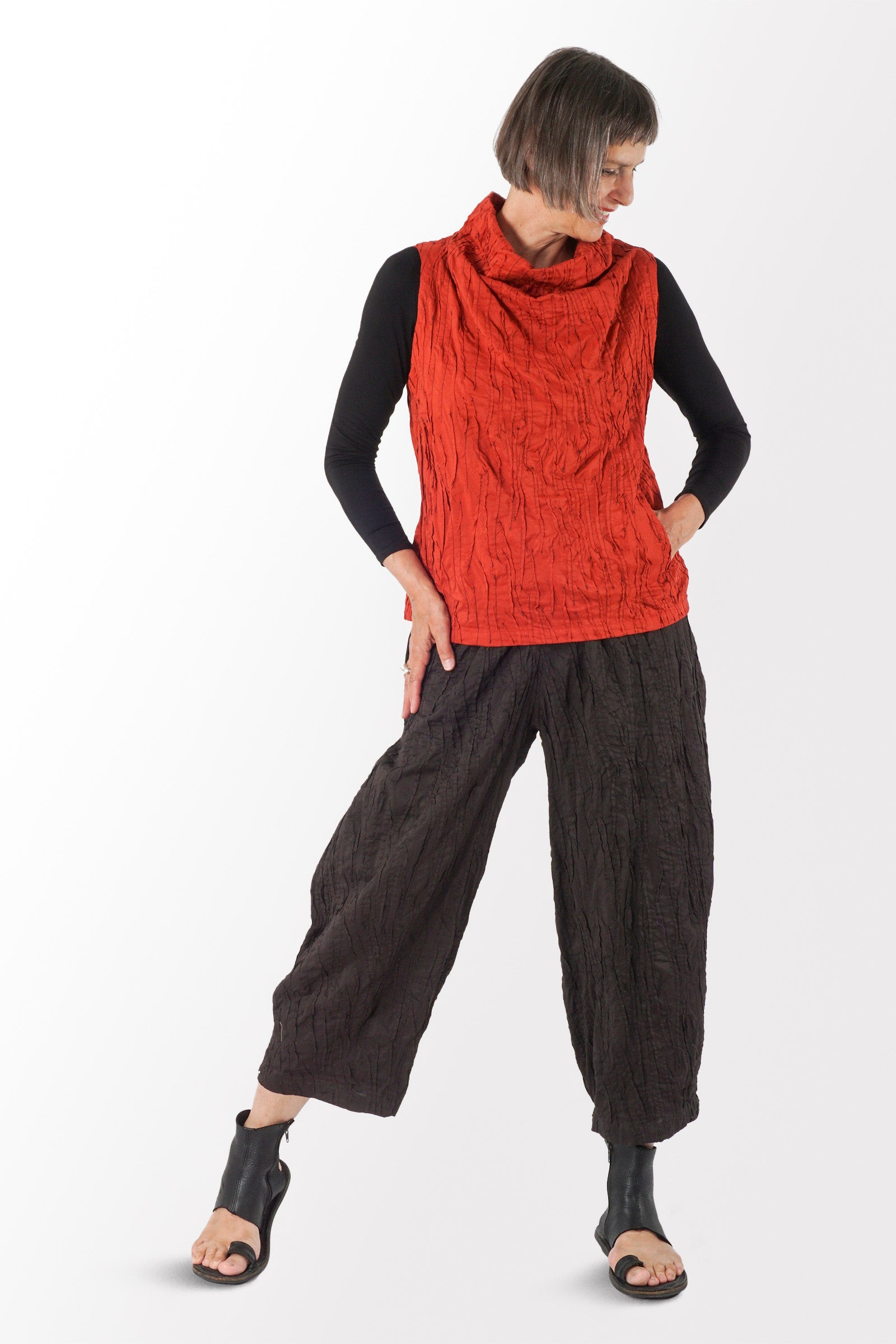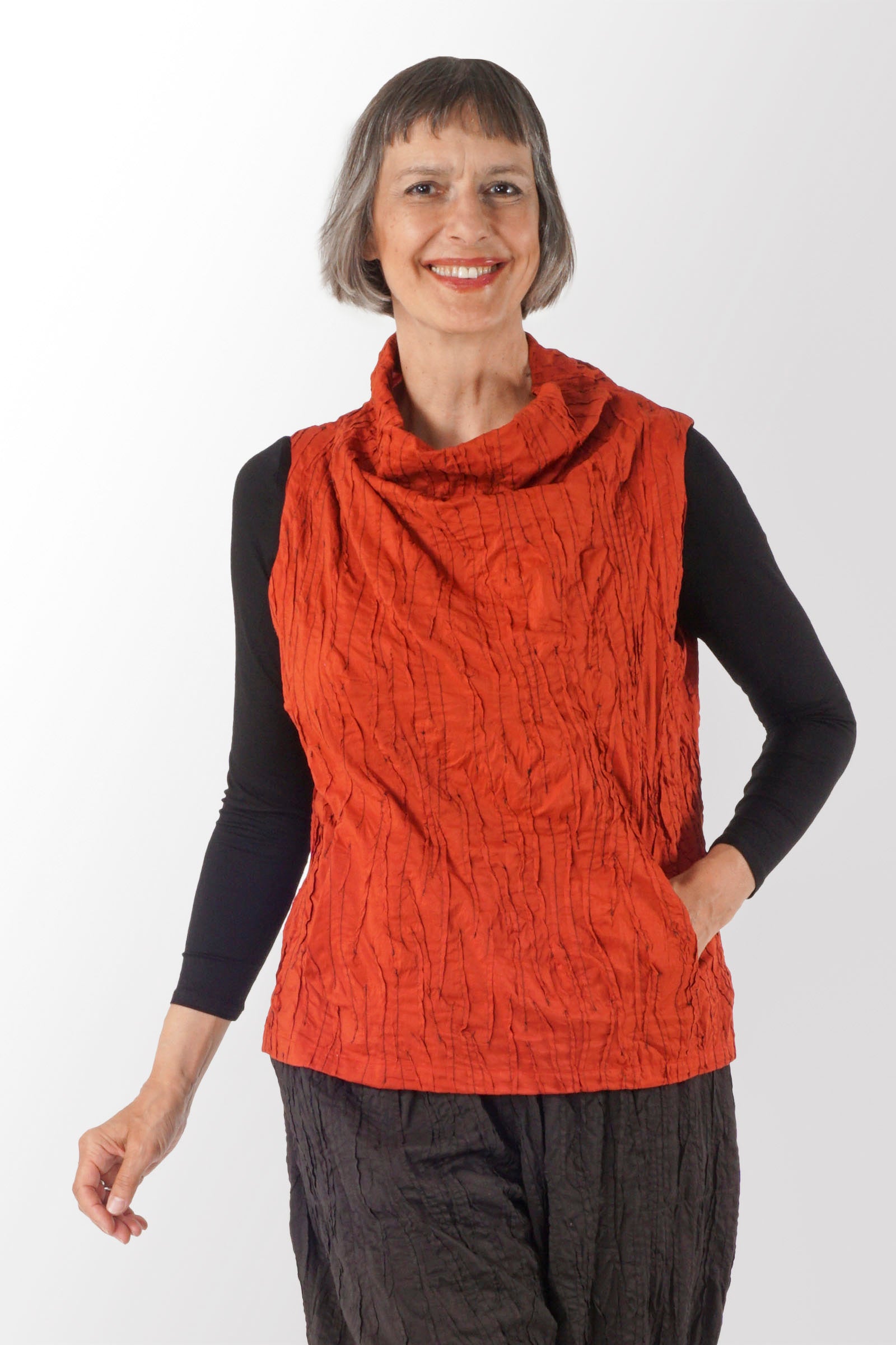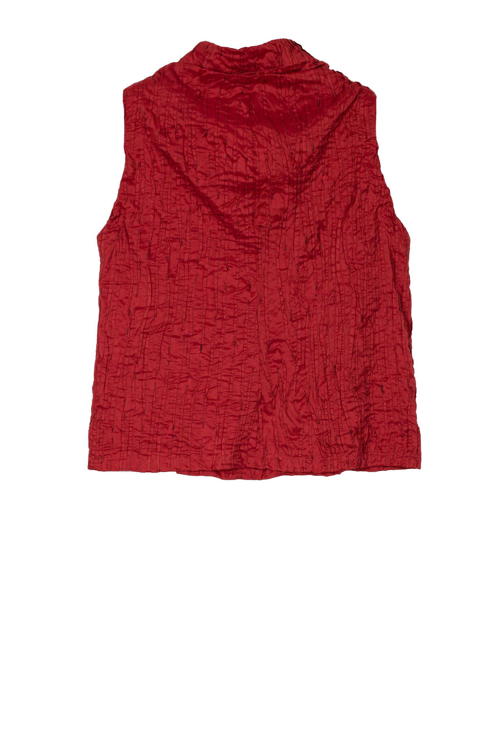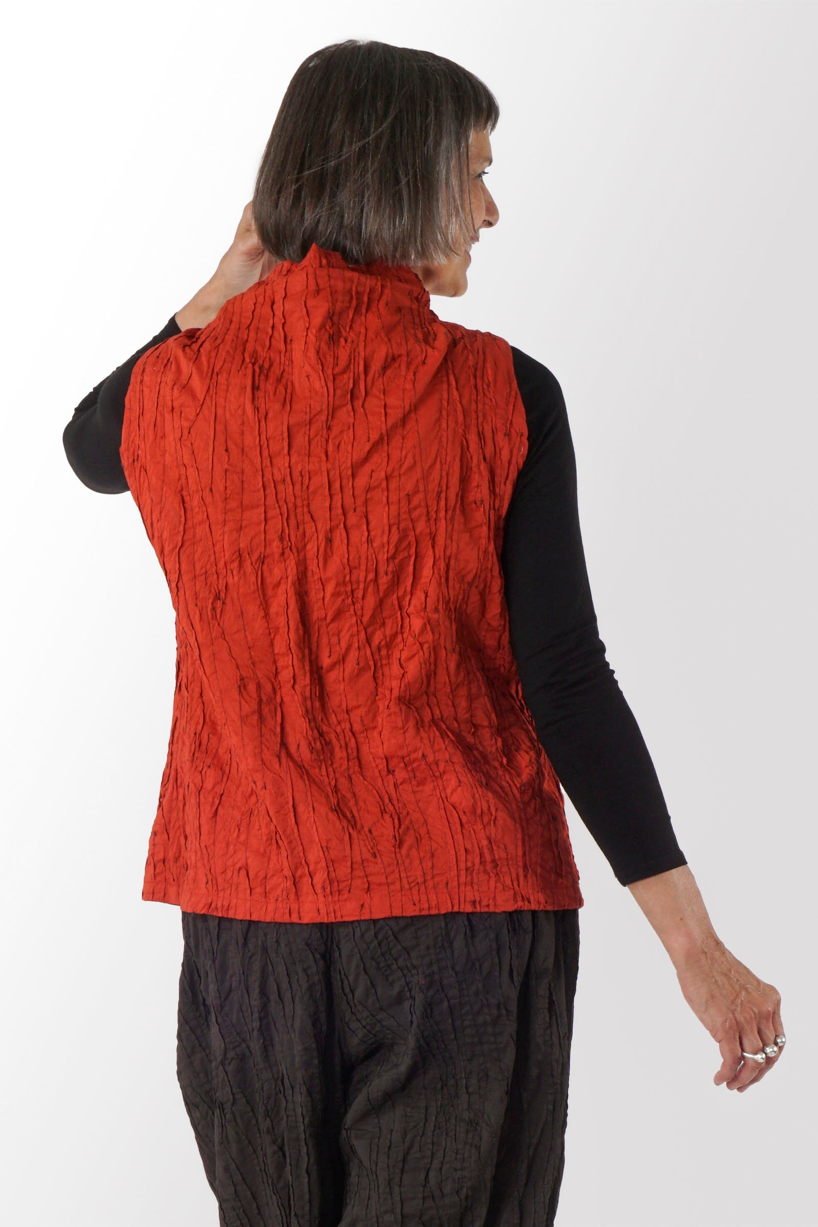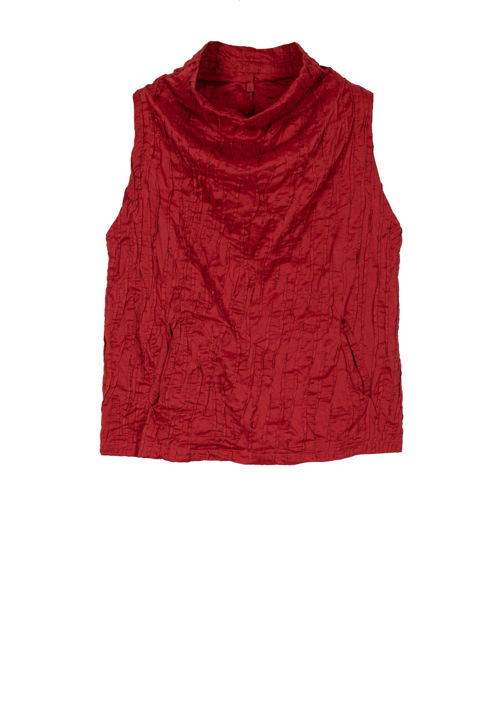 DYED COTTON SILK HEAVY VOILE RANDOM TUCK HIGH-NECK VEST - dr1244-org -