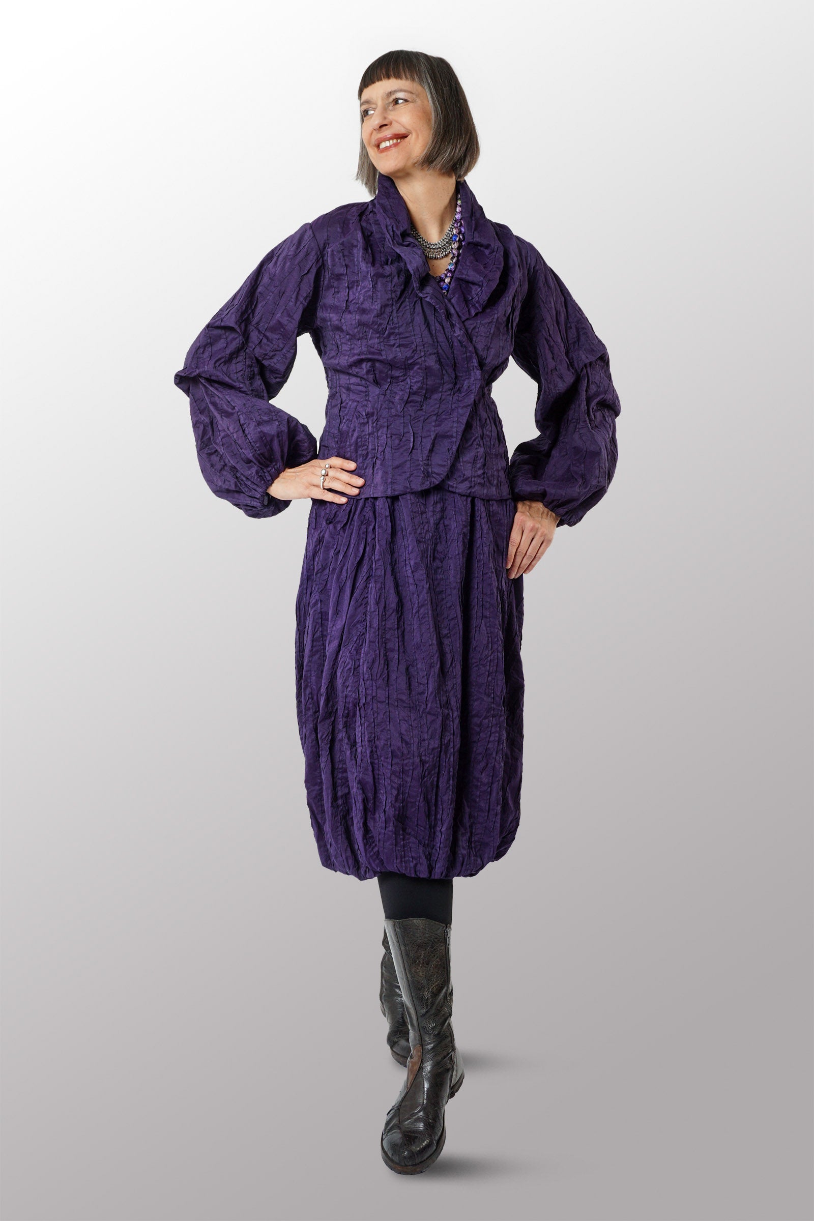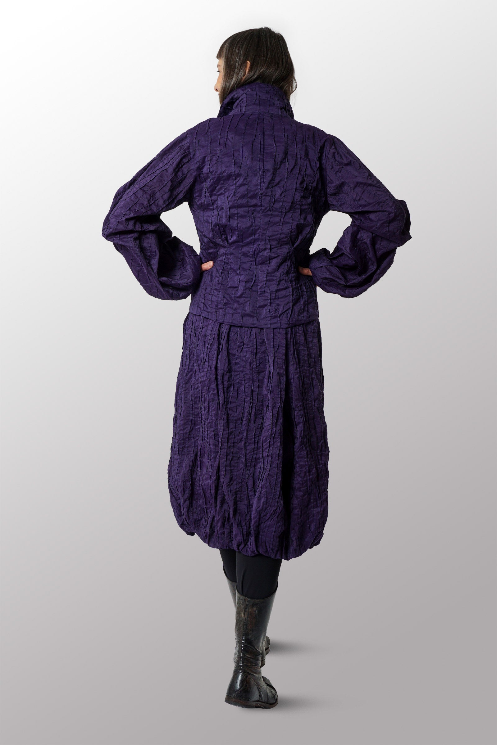 DYED COTTON SILK HEAVY VOILE RANDOM TUCK PUFF SLV. JACKET - dr1077-prp -