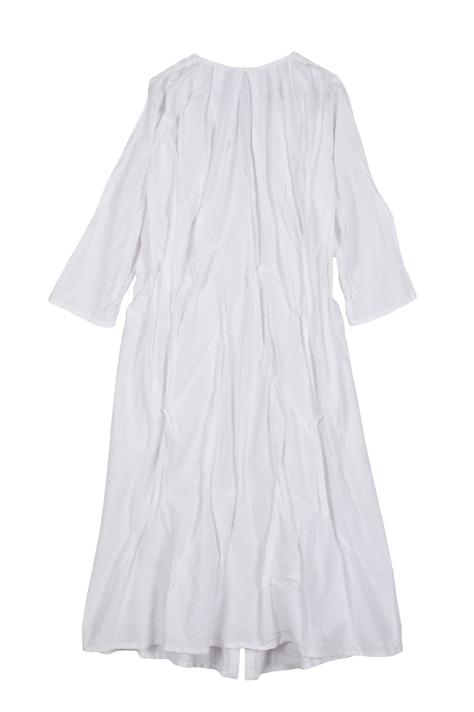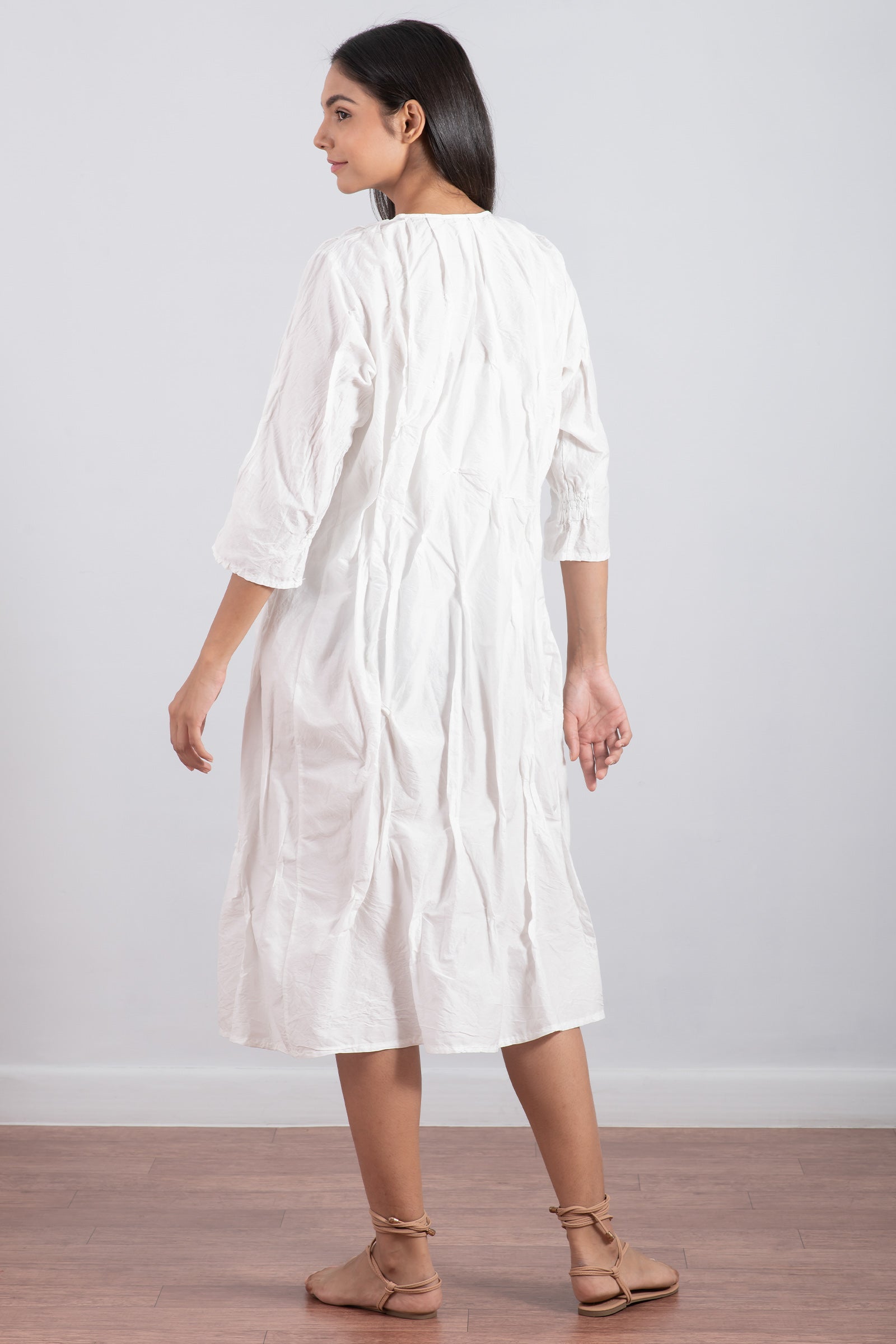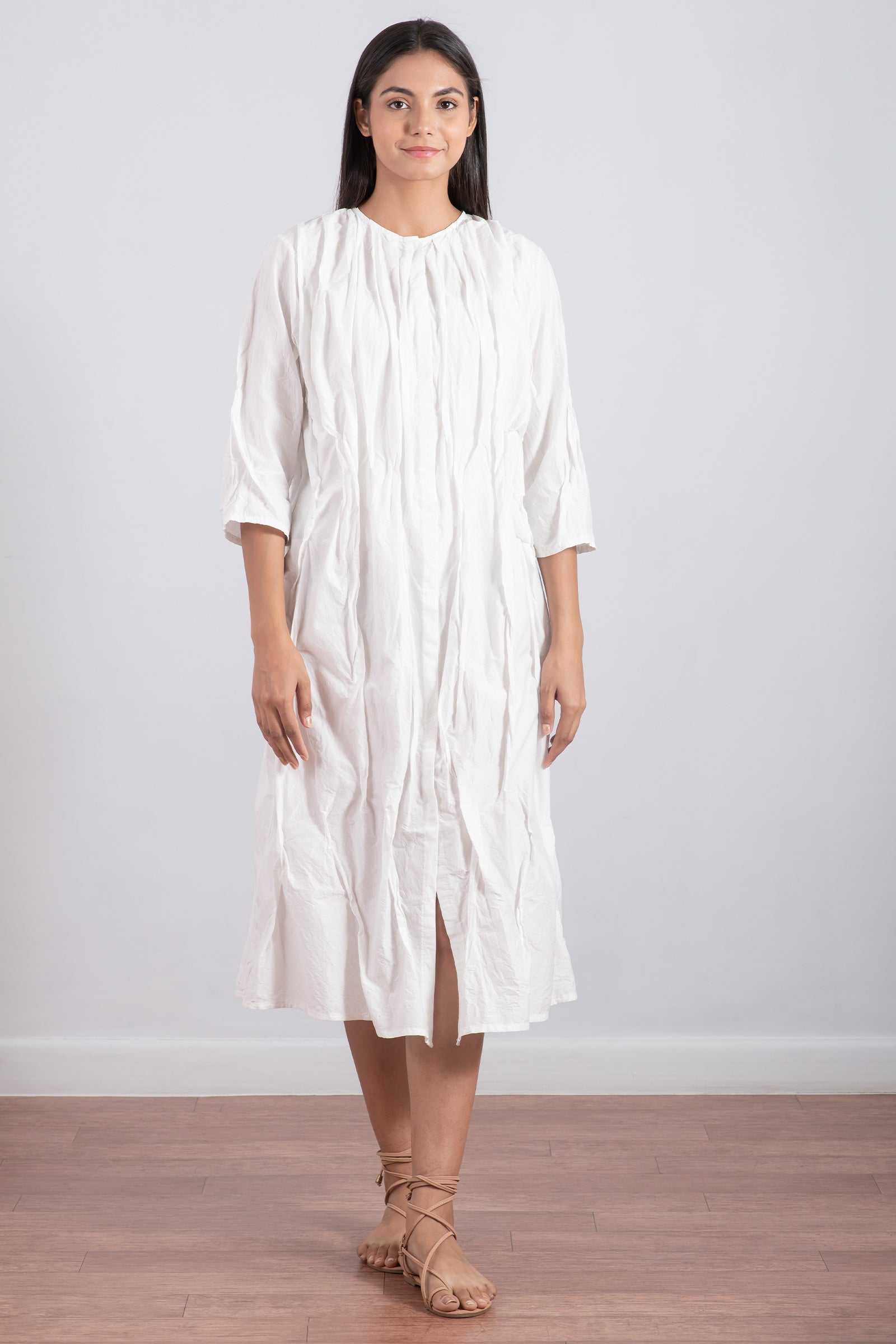 DYED COTTON SILK HEAVY VOILE WAVY TUCK CROPPED SLV. DRESS - dh1434-wht -