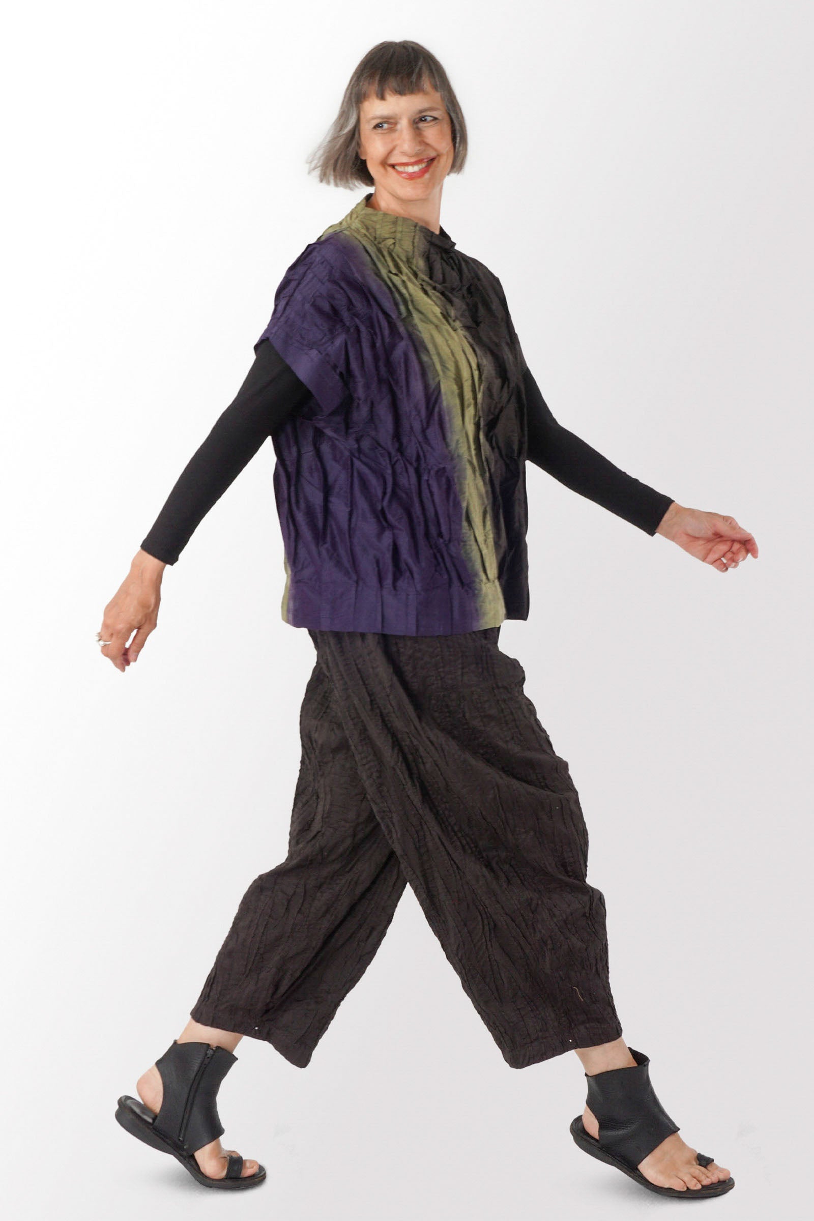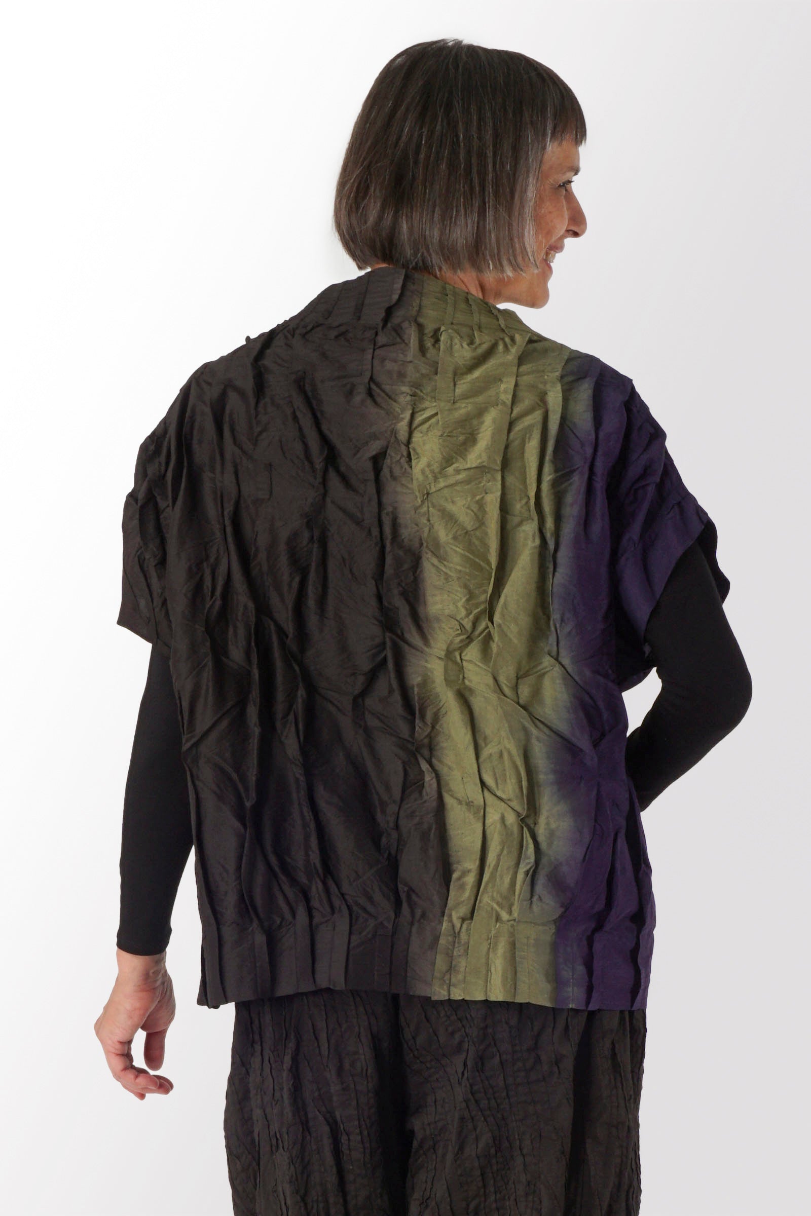 DYED COTTON SILK HEAVY VOILE WAVY TUCK PULLOVER VEST - dh1242-ogr -