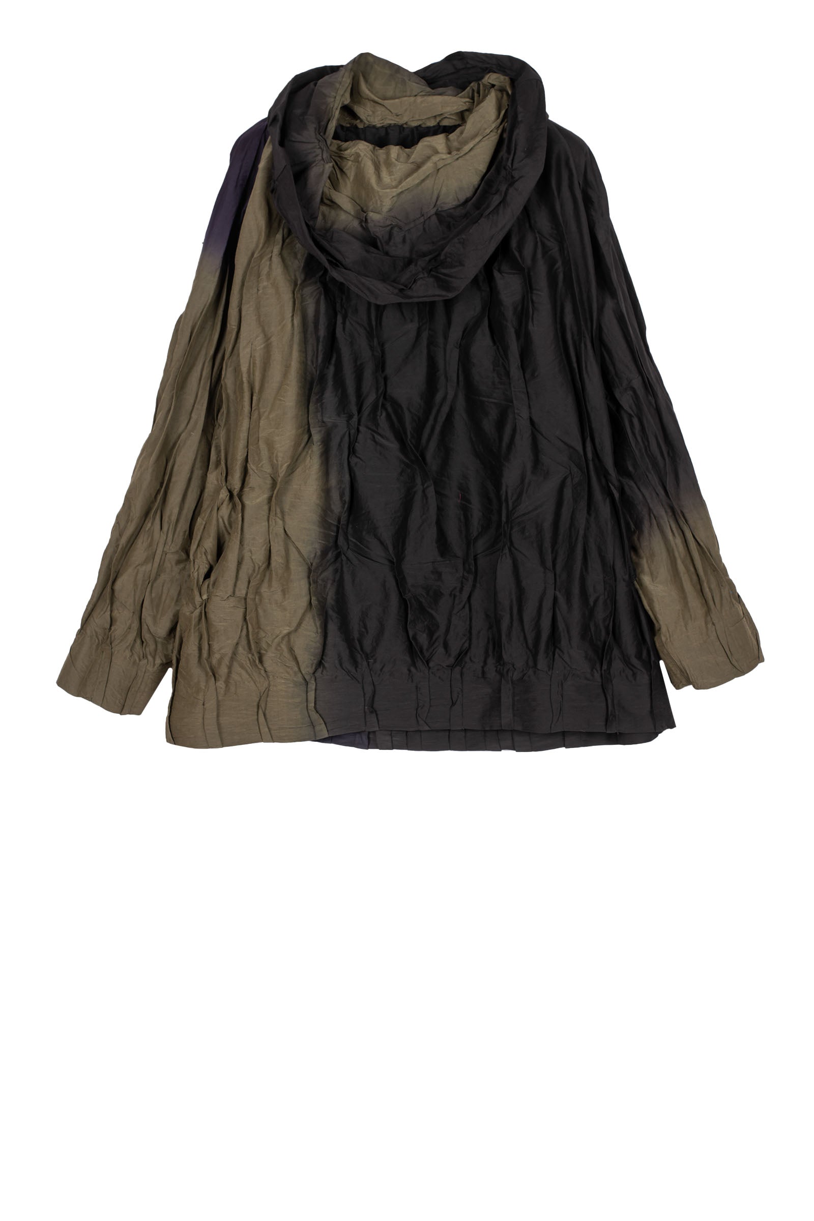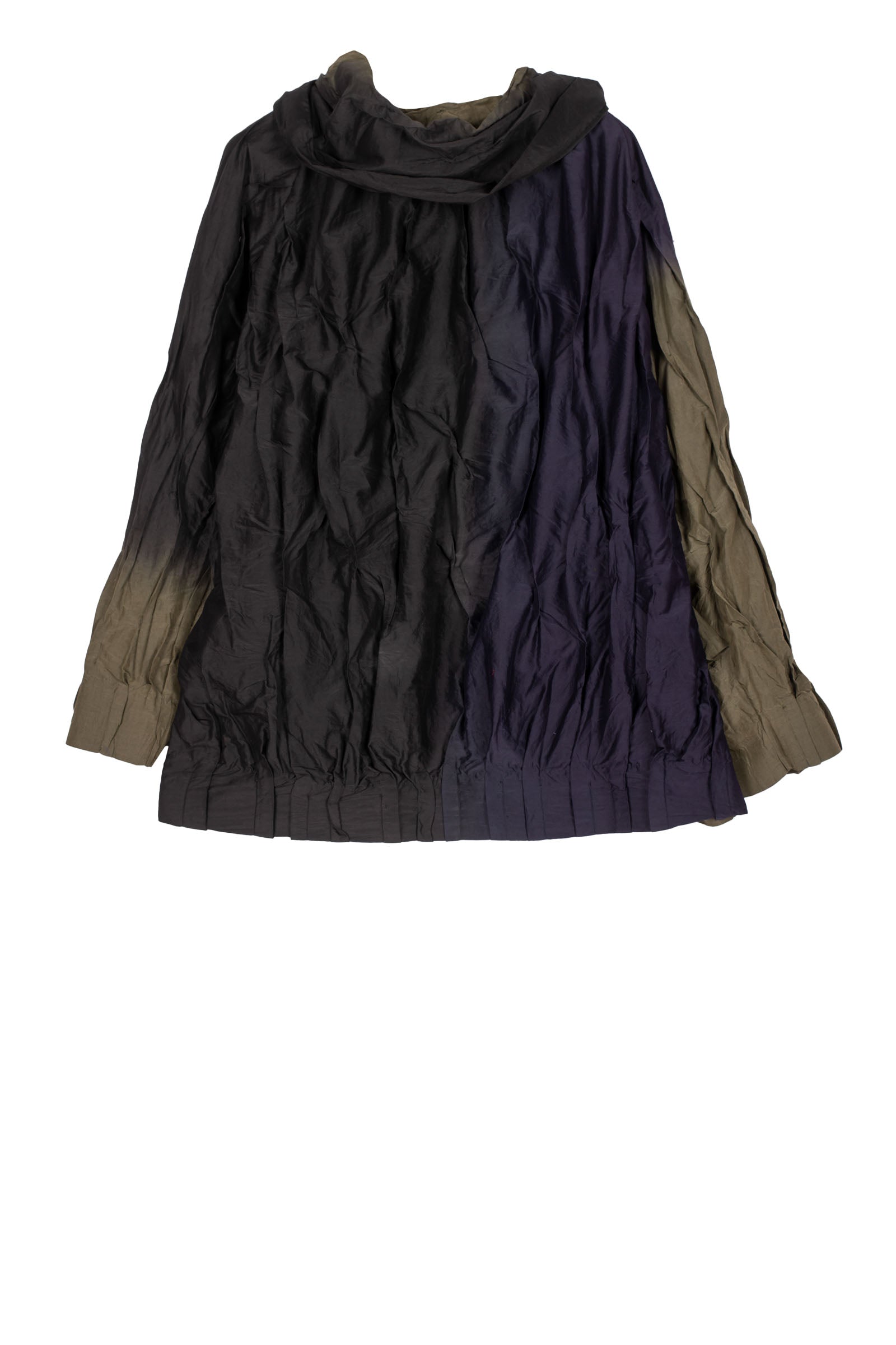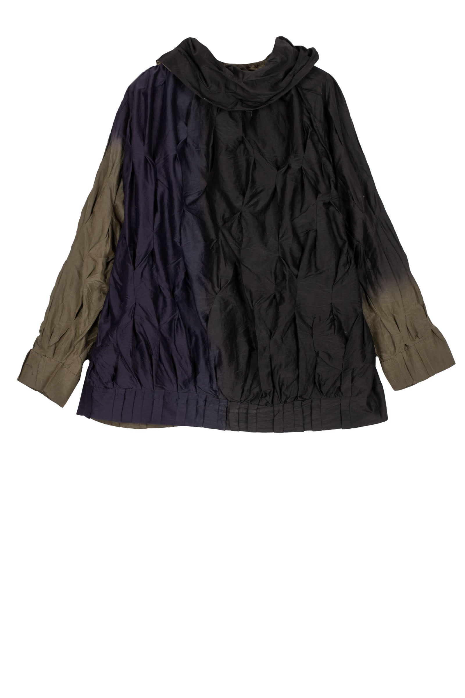 DYED COTTON SILK HEAVY VOILE WAVY TUCK RAGLAN TOP - dh1560-ogr -