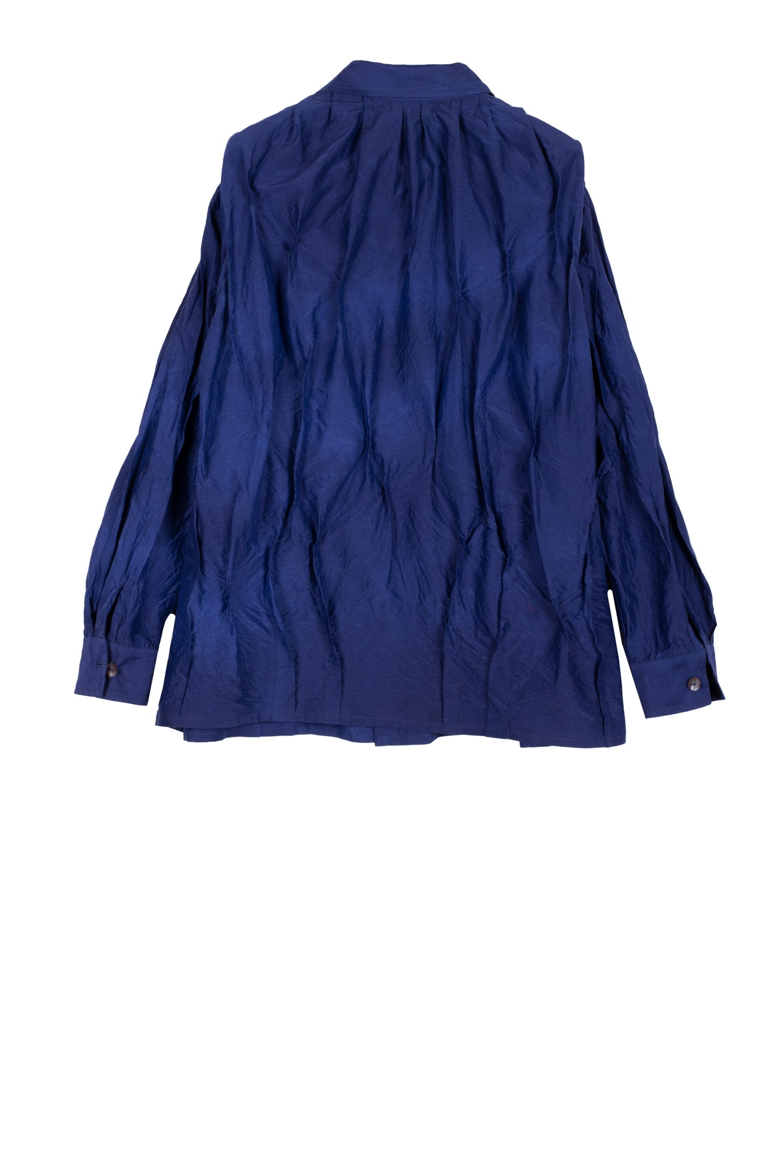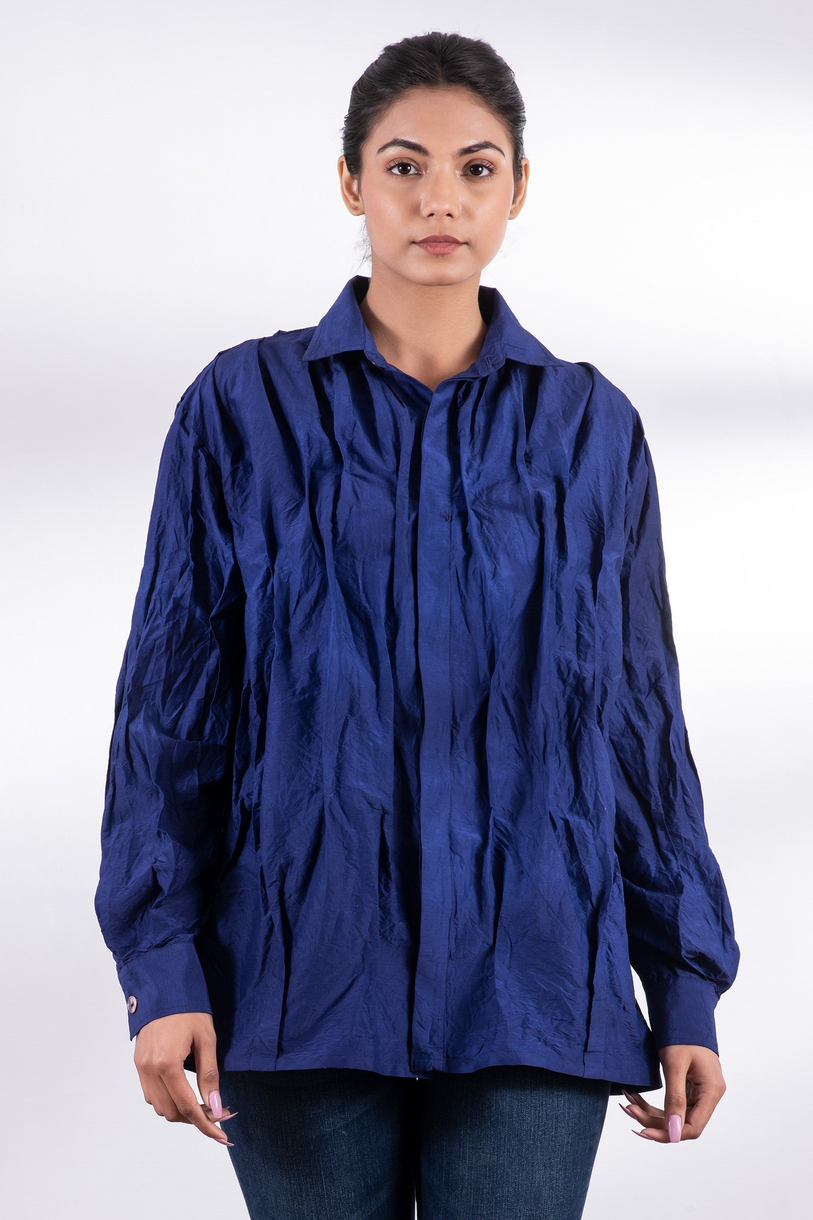 DYED COTTON SILK HEAVY VOILE WAVY TUCKED MEN'S SHIRT - dh1551-blu -