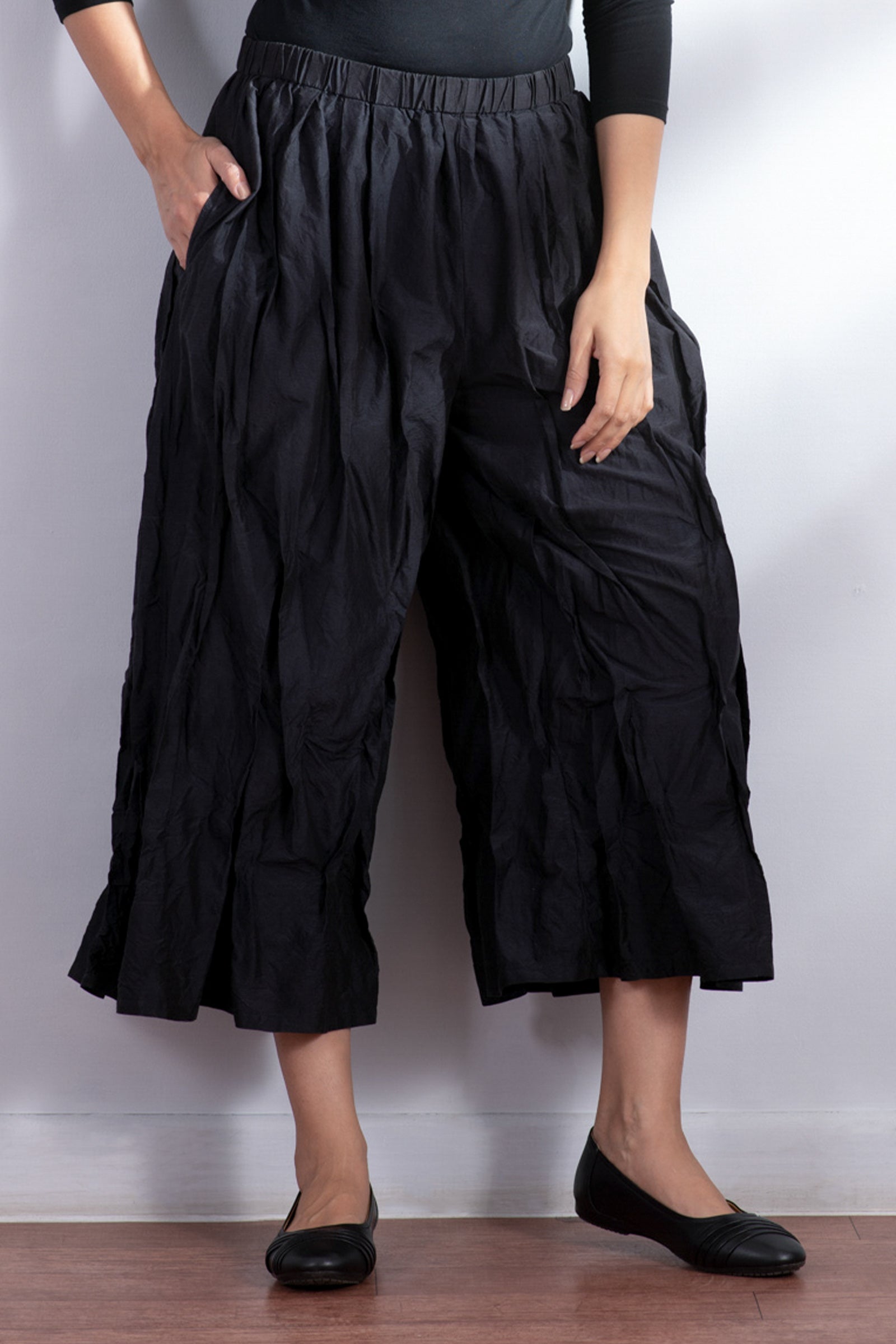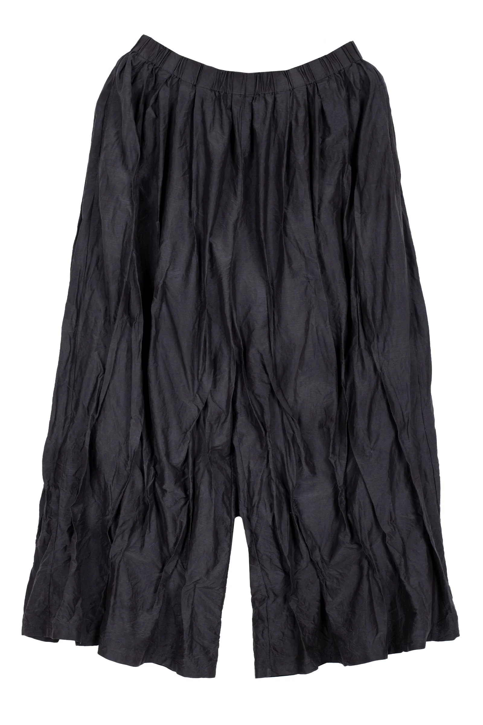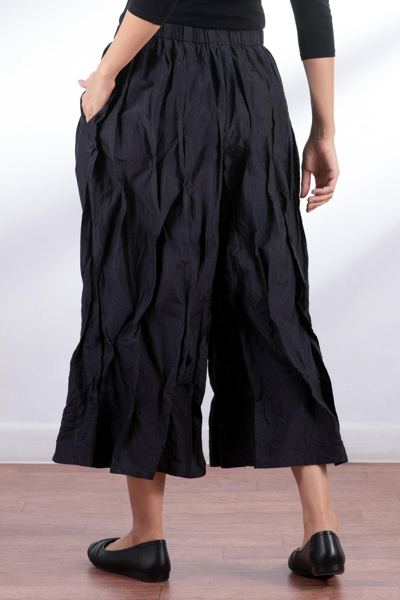 DYED COTTON SILK HEAVY VOILE WAVY TUCKED PANTS - dh1635-blk -