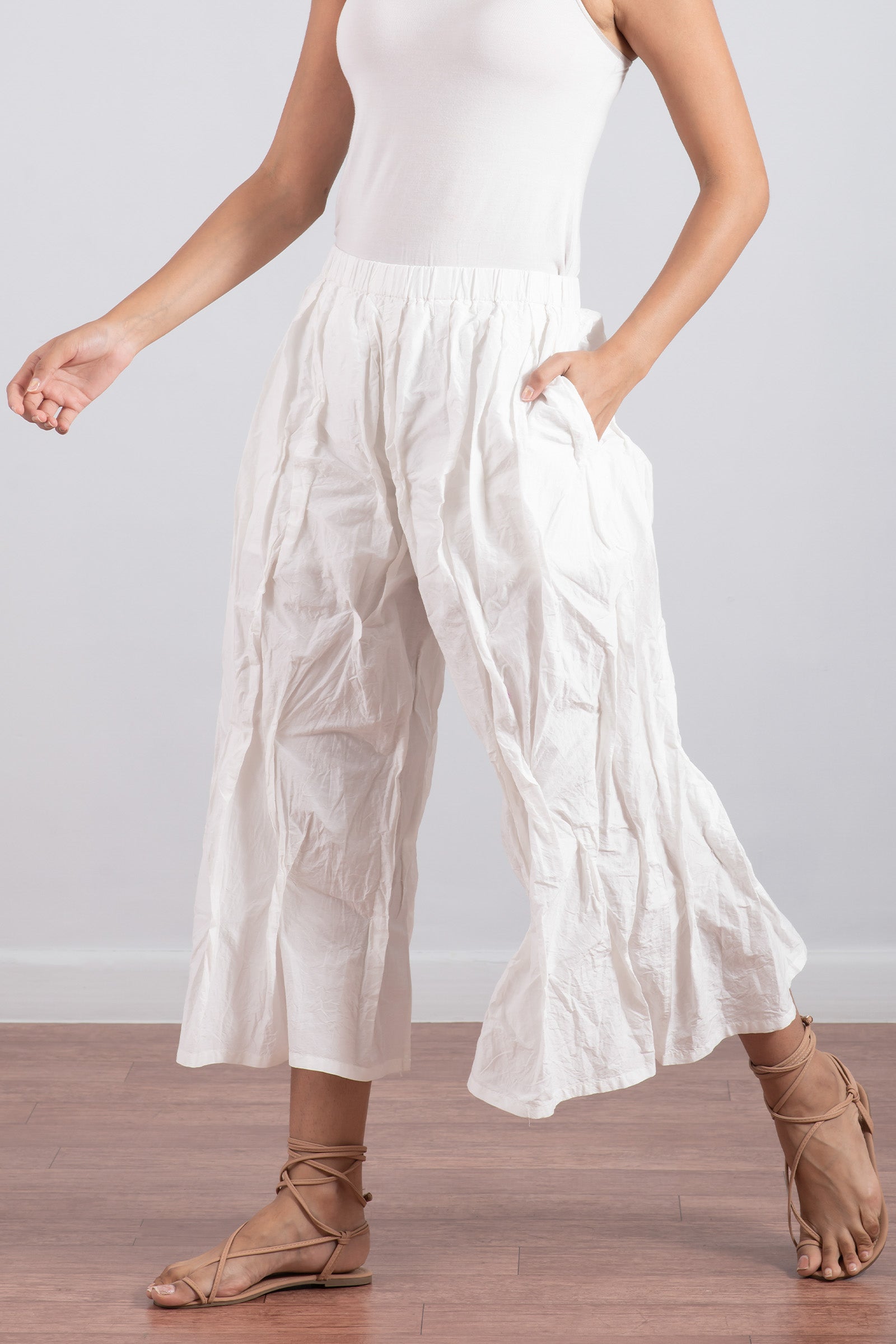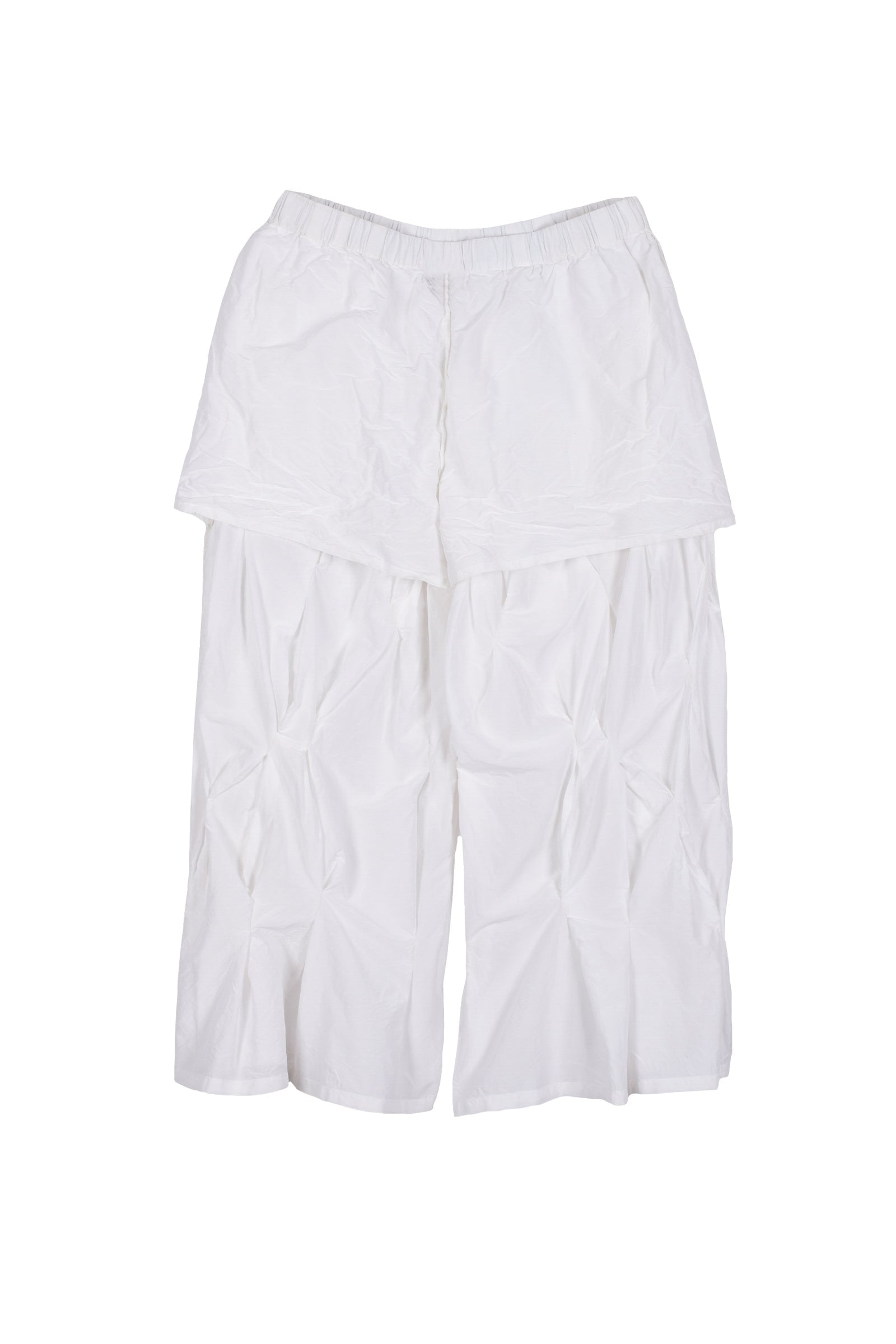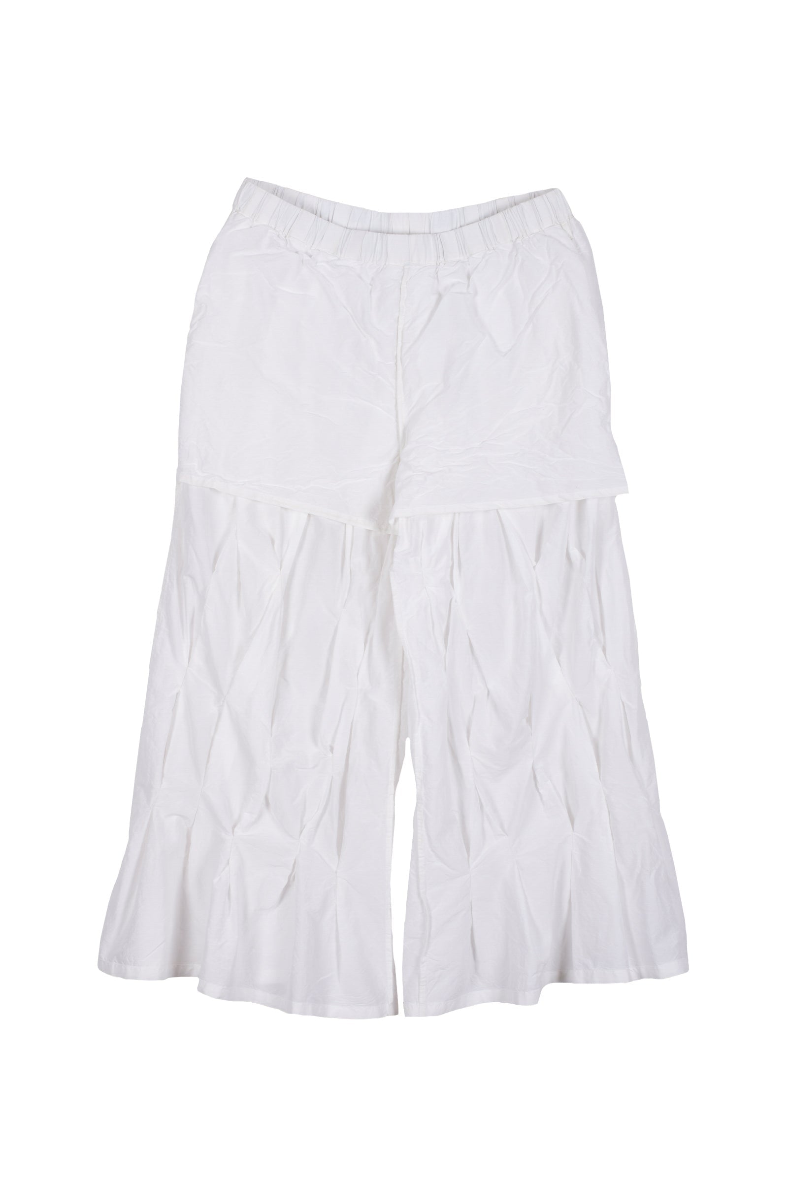 DYED COTTON SILK HEAVY VOILE WAVY TUCKED PANTS - dh1635-wht -