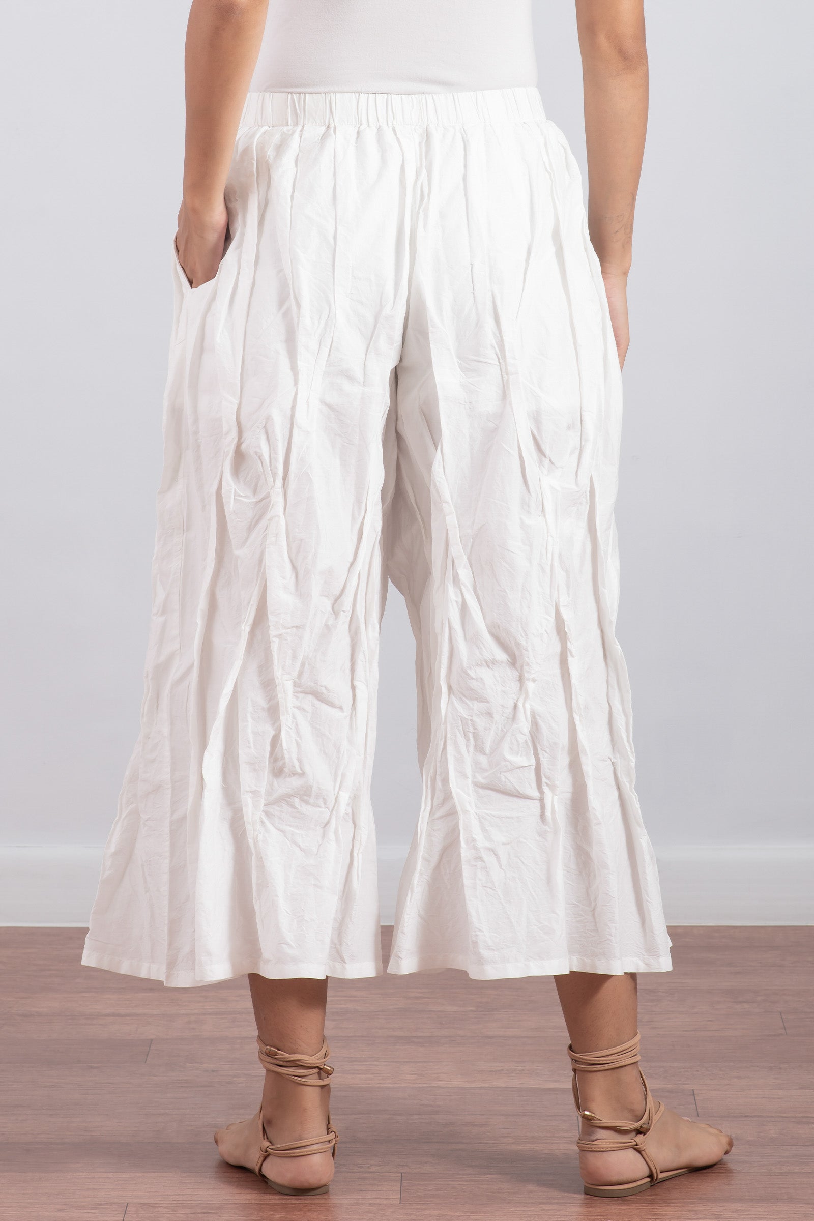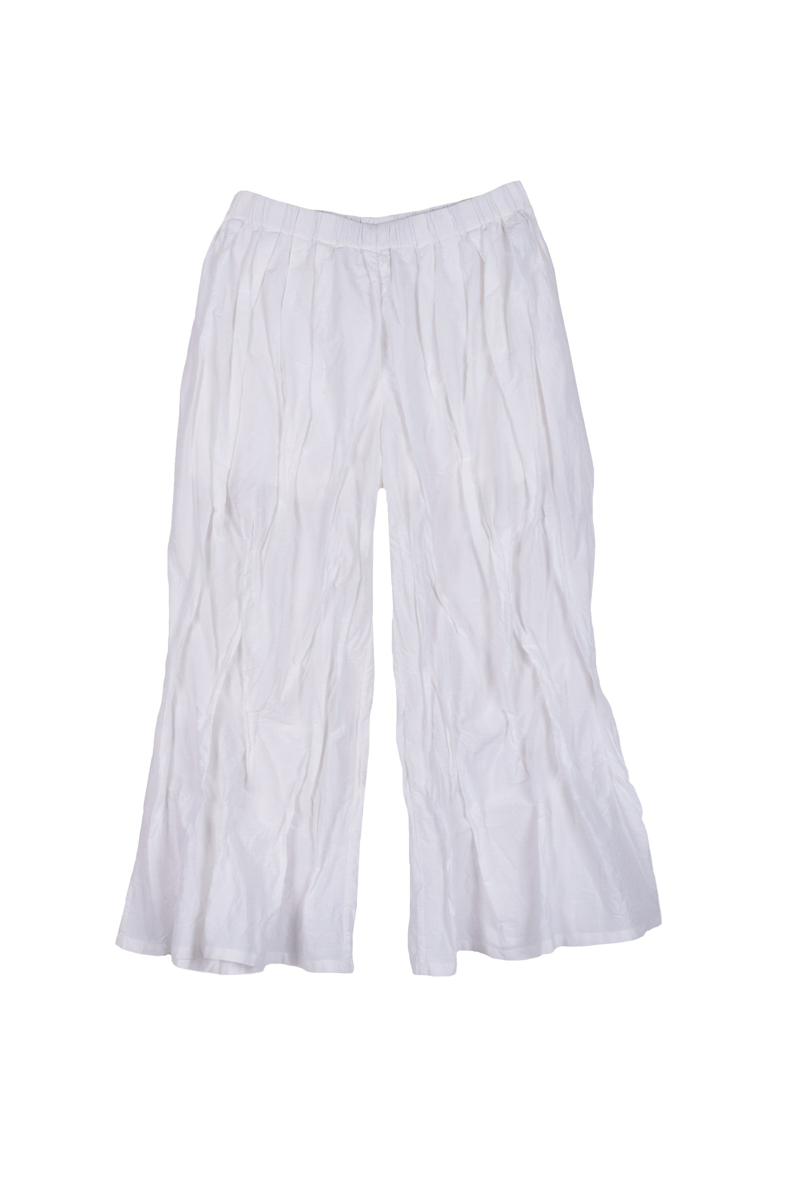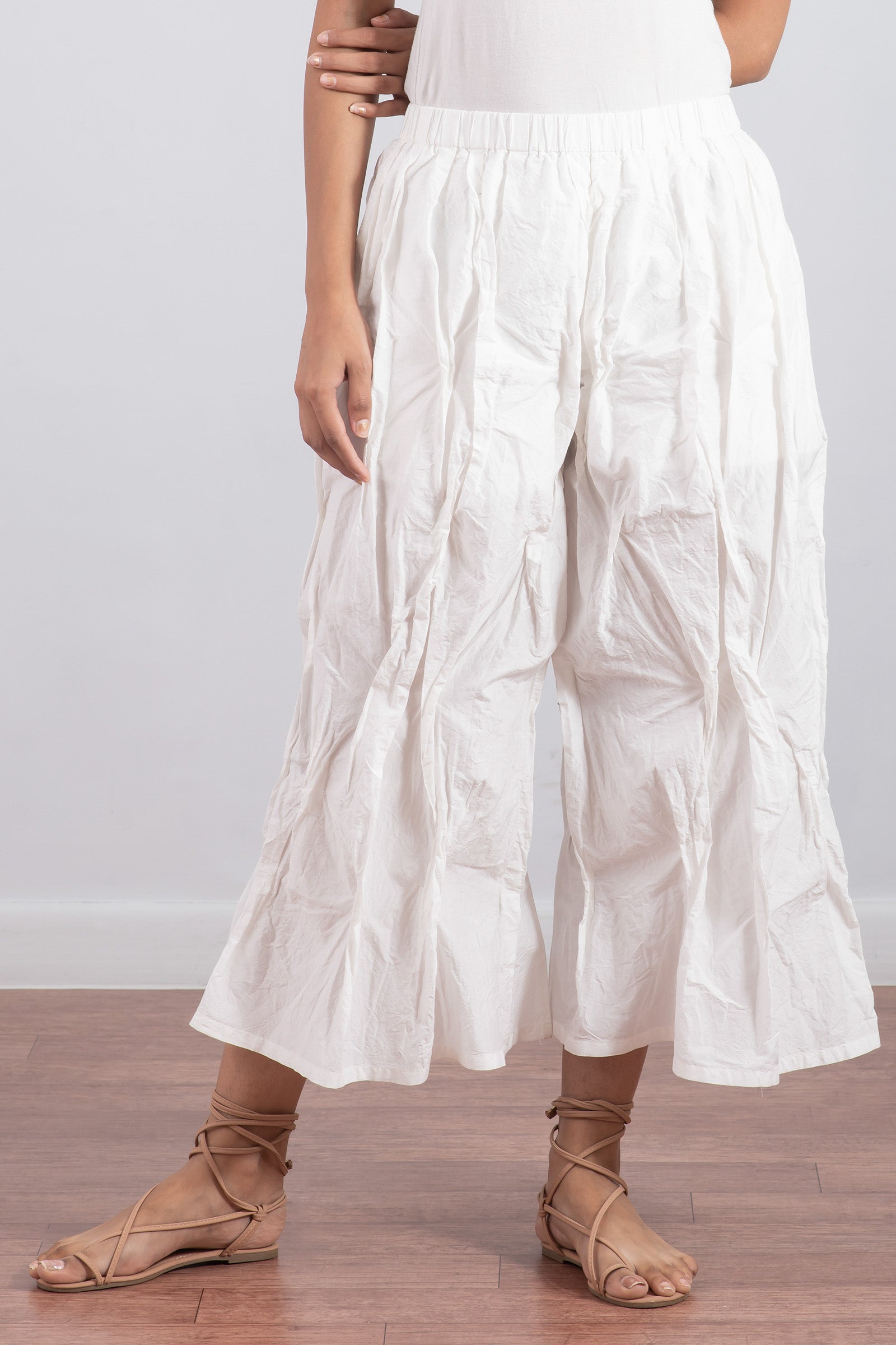 DYED COTTON SILK HEAVY VOILE WAVY TUCKED PANTS - dh1635-wht -