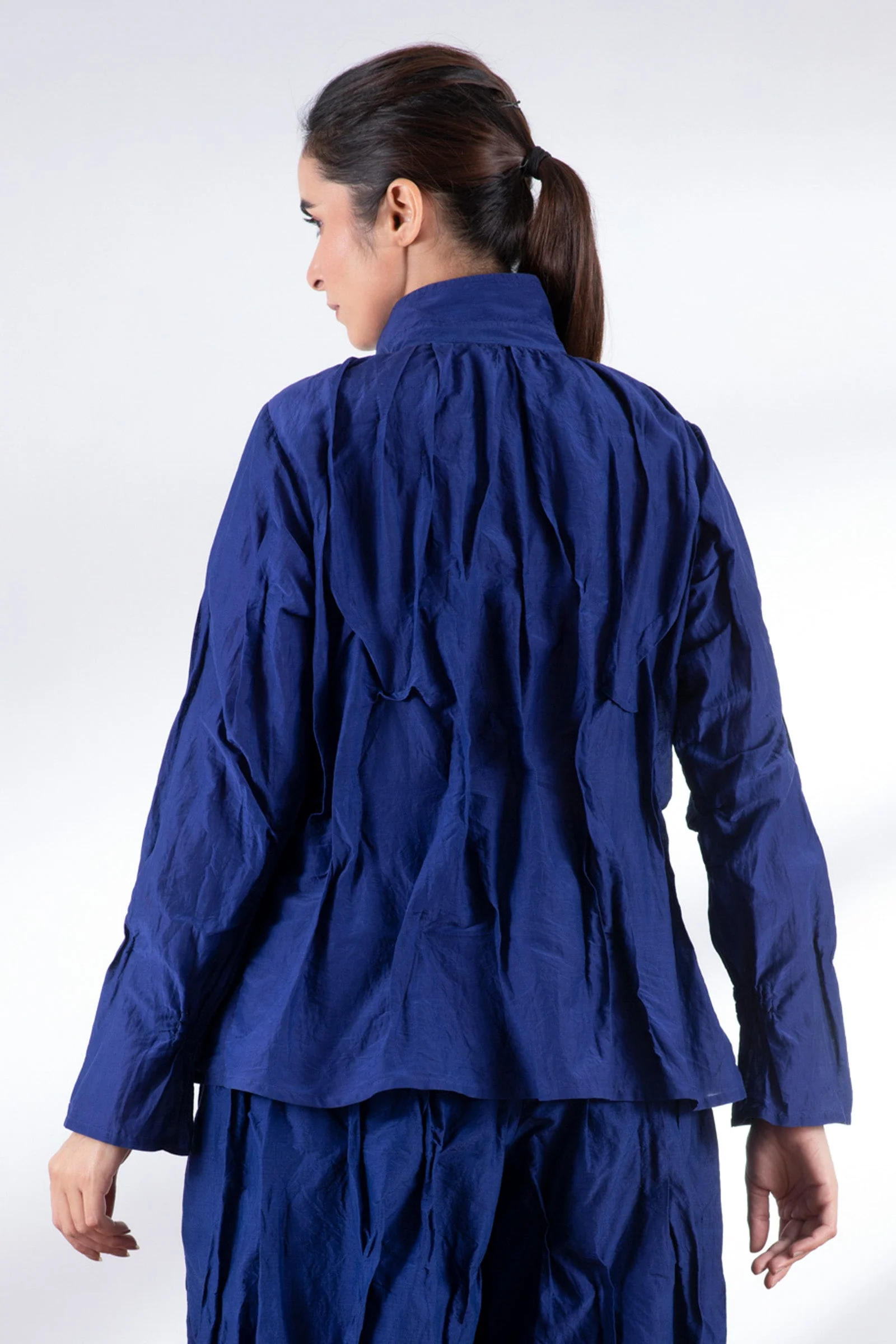 DYED COTTON SILK HEAVY VOILE WAVY TUCKED SHIRT - dh1541-blu -