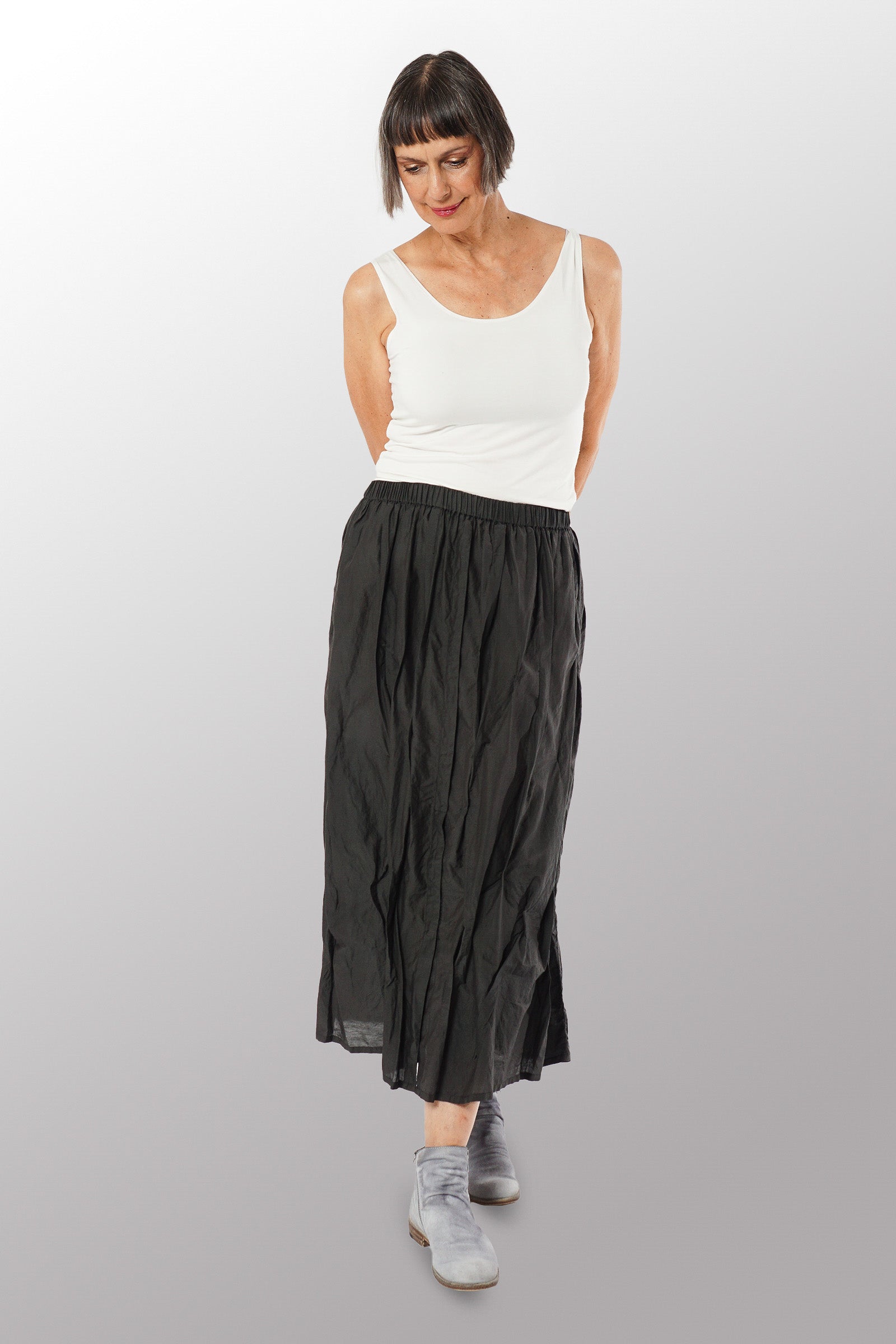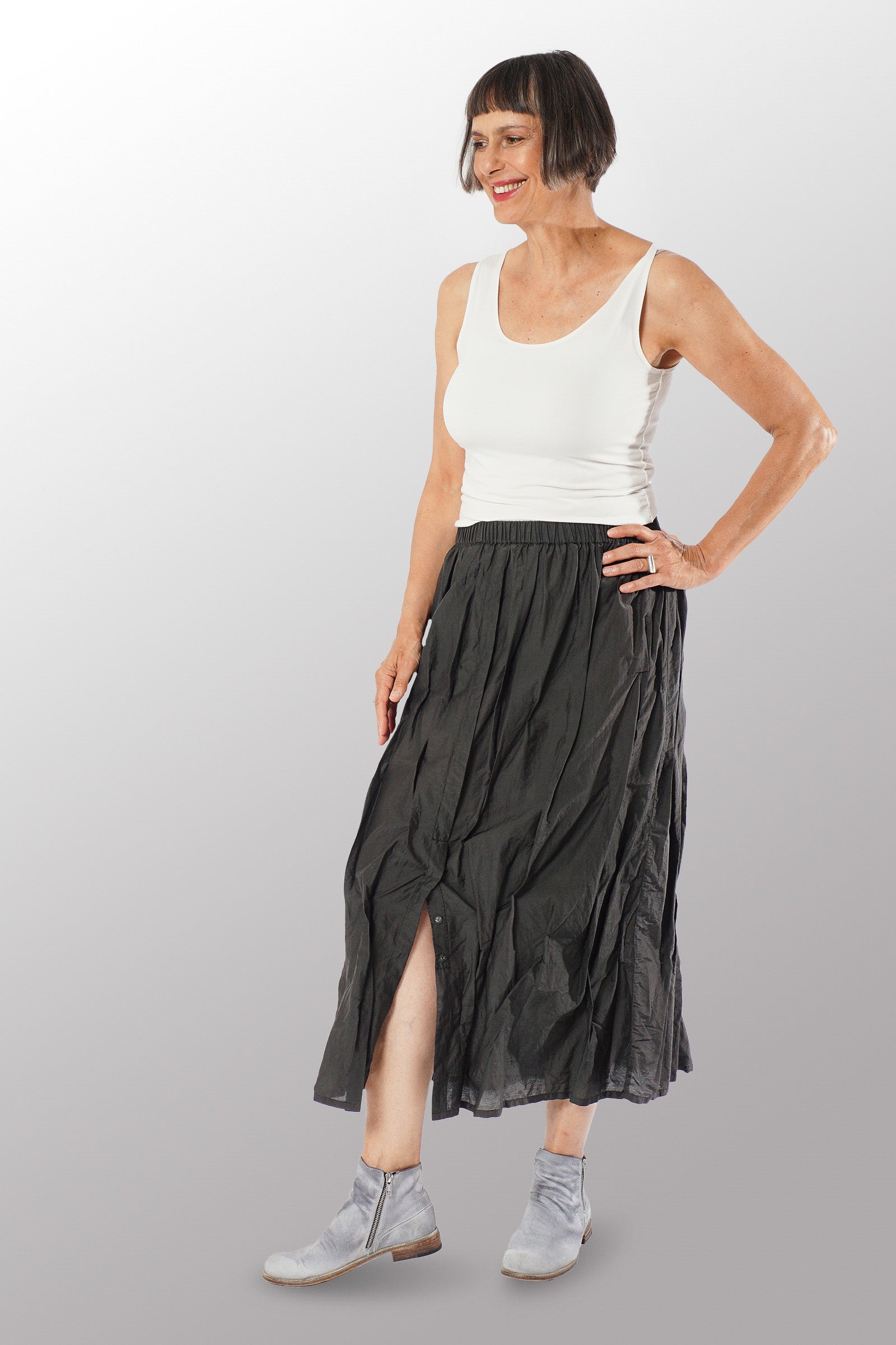 DYED COTTON SILK VOILE WAVY FRONT OPEN LONG SKIRT - dc1660-gry -
