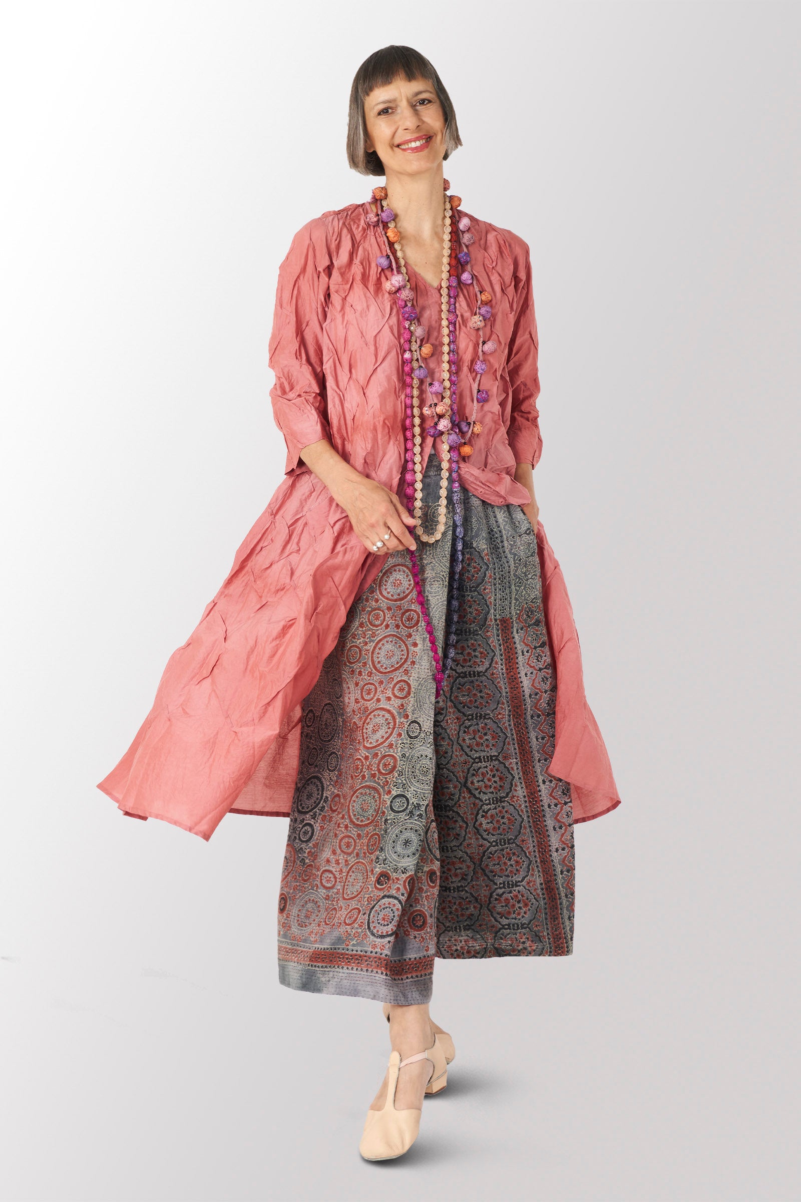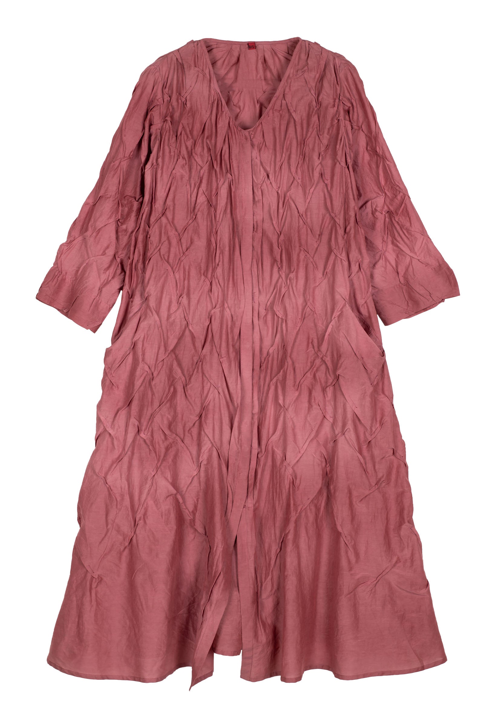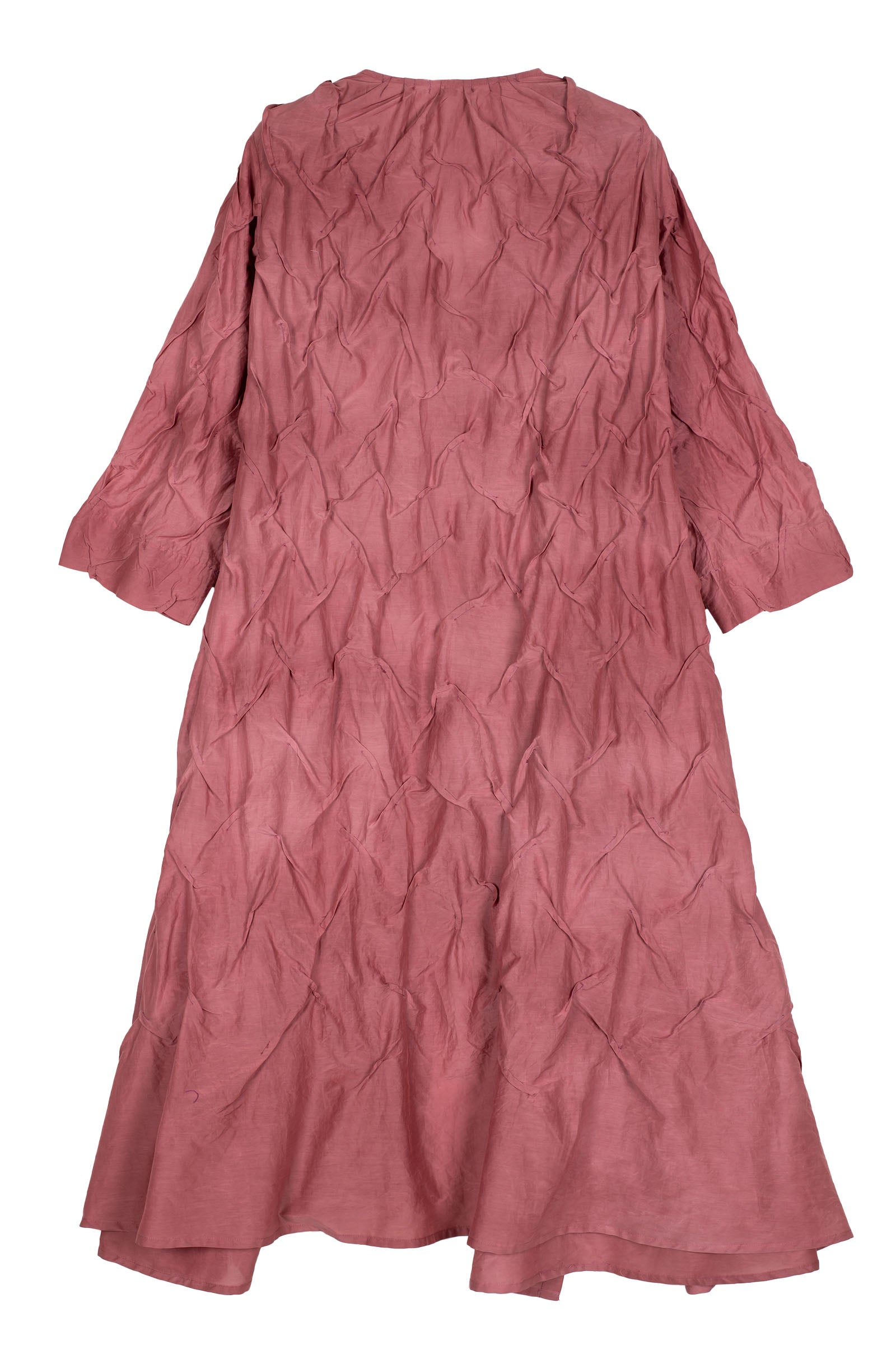 DYED COTTON SILK VOILE WAVY TUCK A-LINE DRESS - dc1453-pik -
