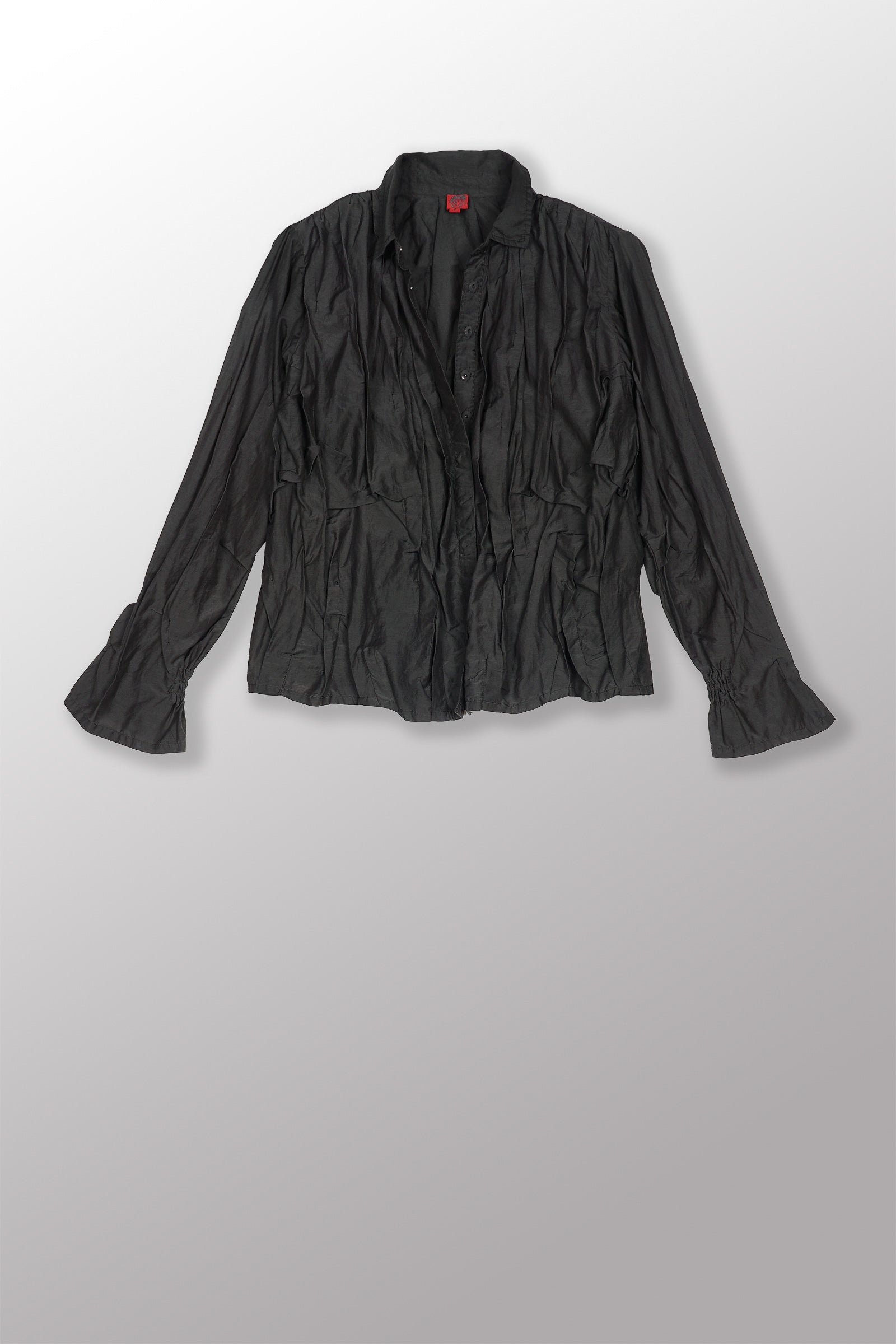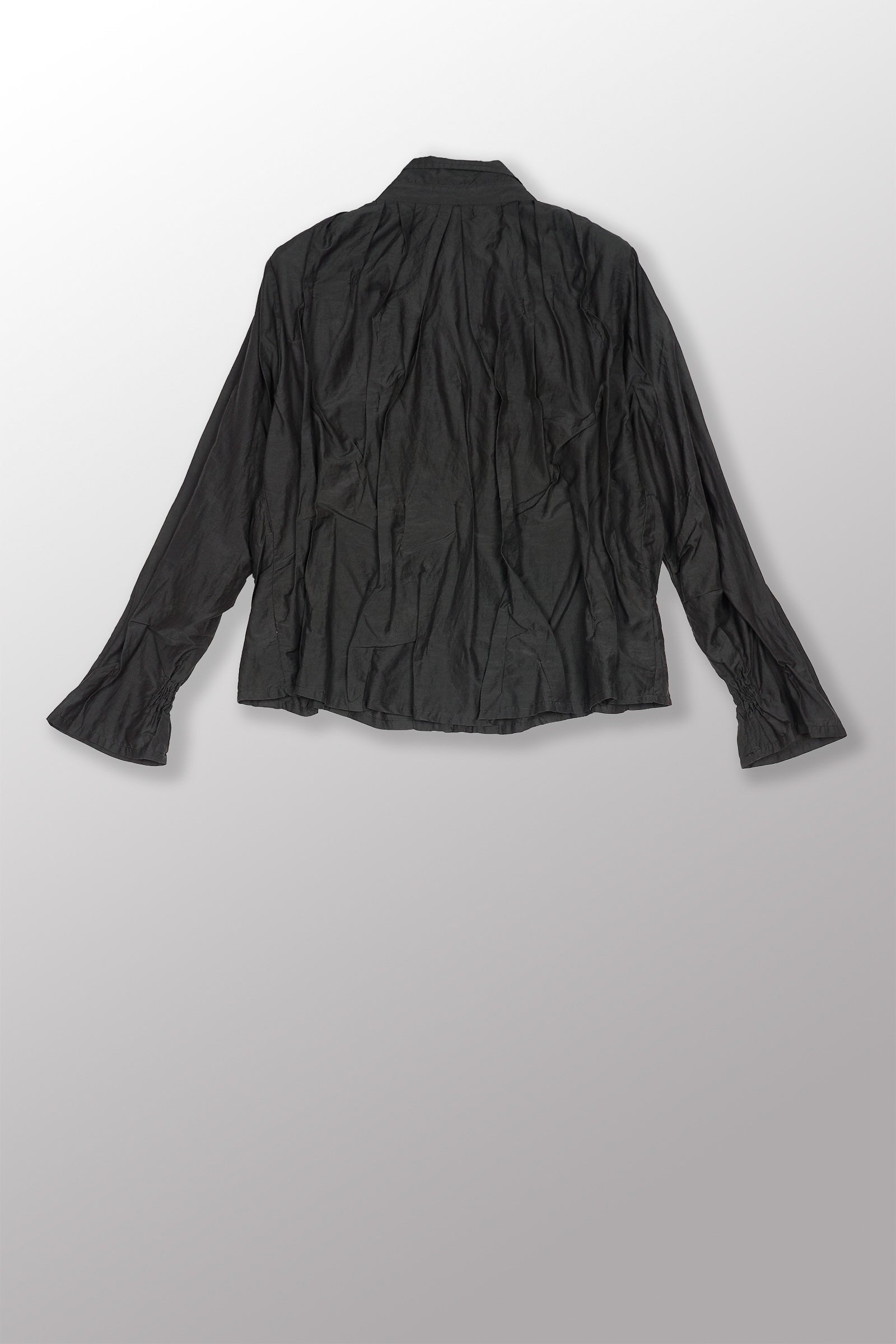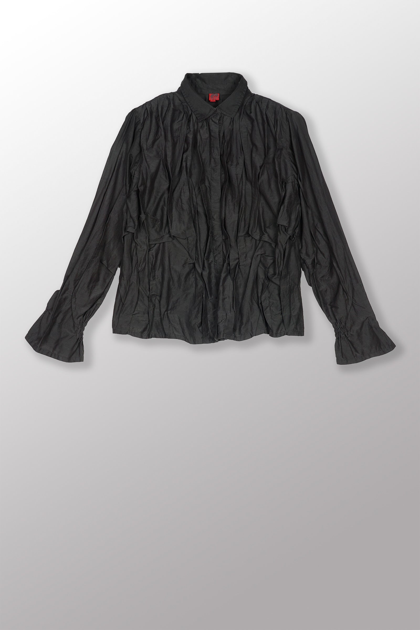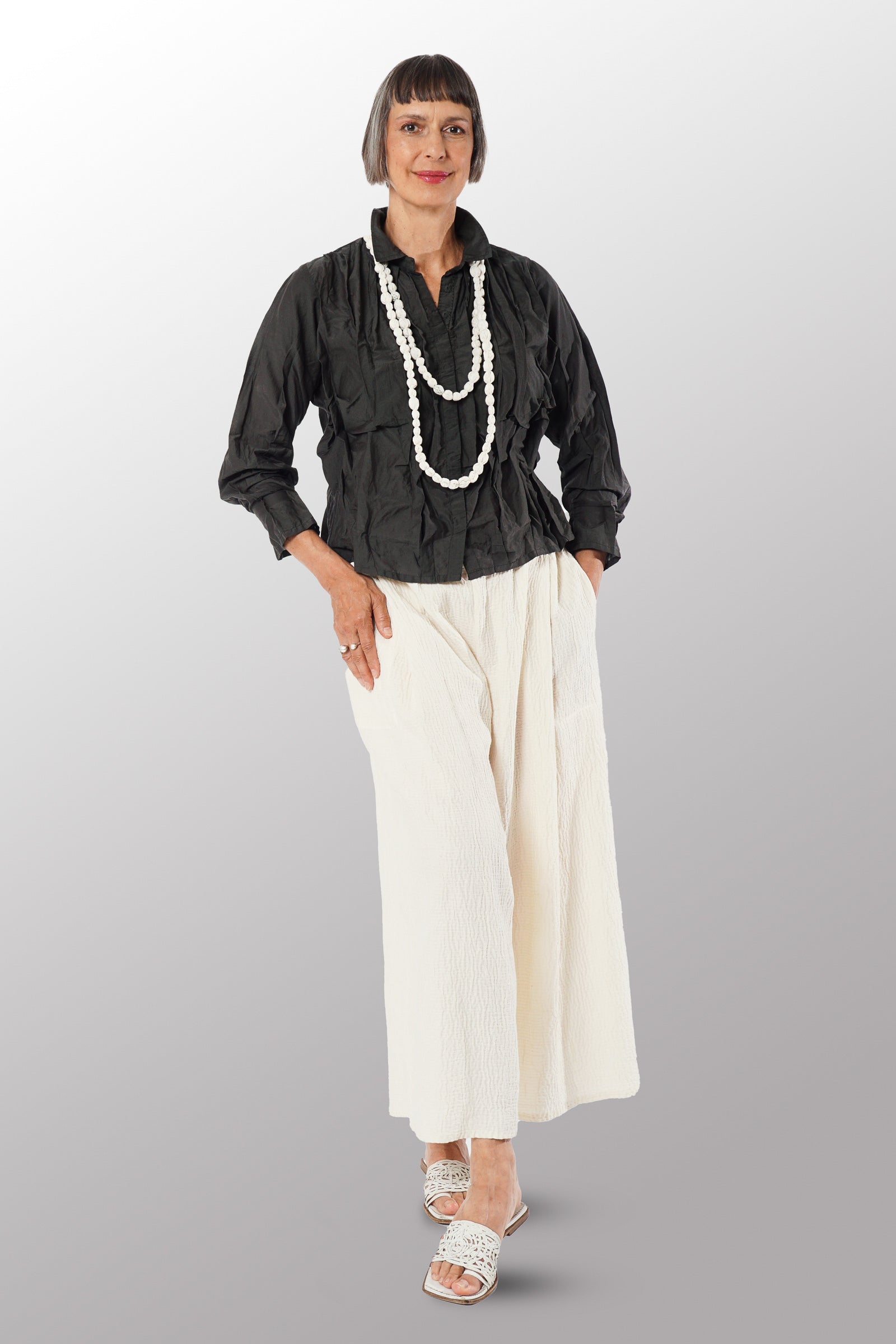 DYED COTTON SILK VOILE WAVY TUCK CROPPED SHIRT - dc1579-gry -