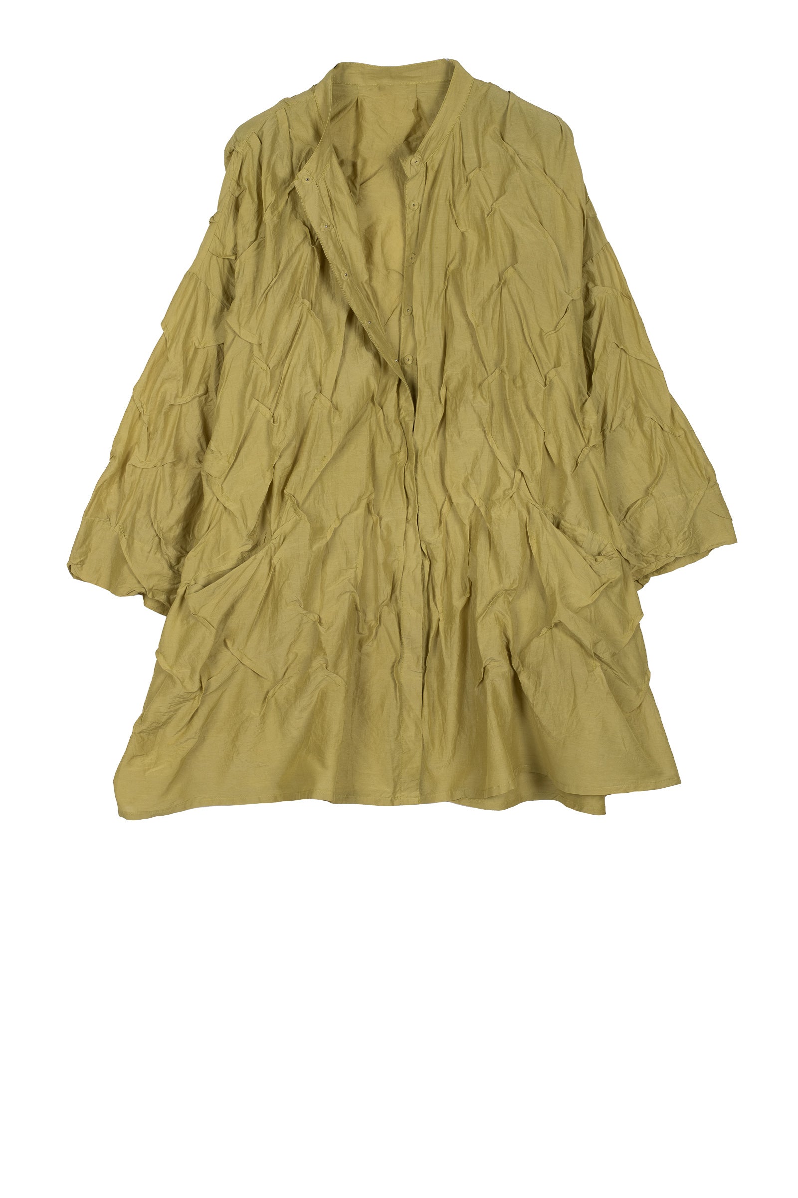 DYED COTTON SILK VOILE WAVY TUCK OVERSIZED SHIRT - dc1555-cha -
